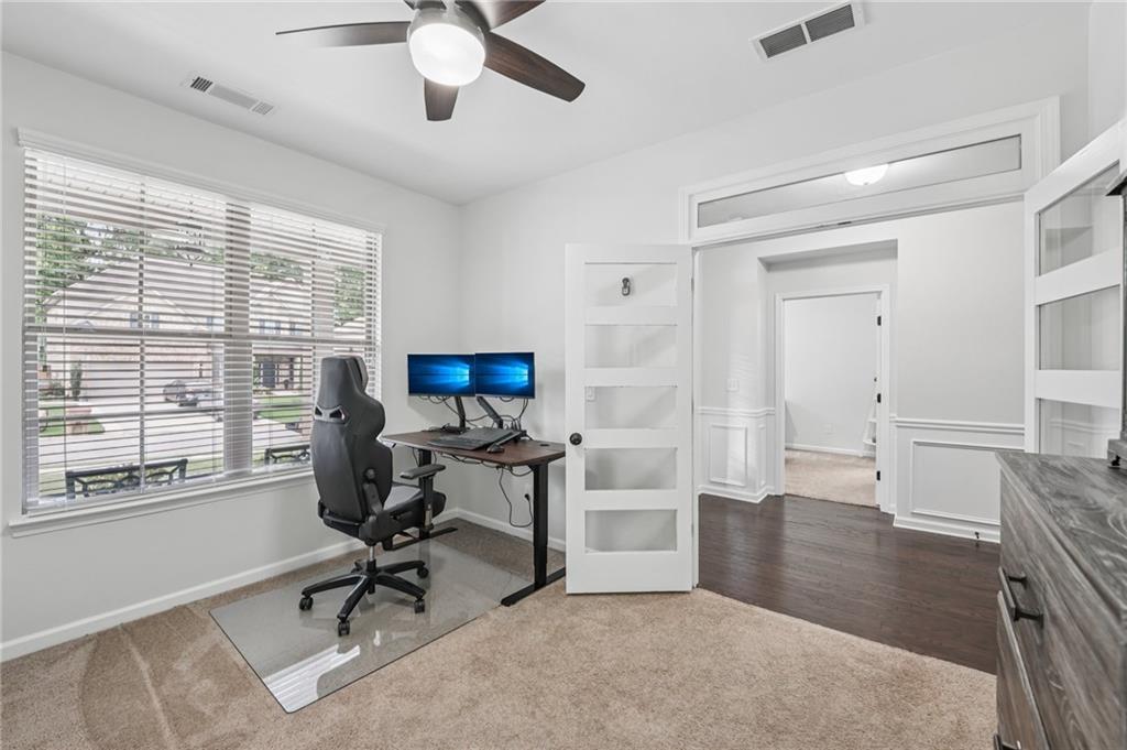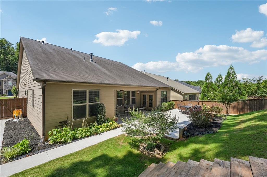 Charming 3 Bed | 2.5 Bath Ranch on Beautifully Landscaped Lot – Prime Location! Welcome to this stunning 3-bedroom, 2.5-bath ranch-style home, perfectly situated on a beautifully landscaped lot in sought-after Whispering Lake. From the moment you arrive, you'll be impressed by the inviting curb appeal and thoughtful layout designed for both comfort and entertaining. Step inside to find an open-concept living space featuring a fireside great room, spacious dining area, and a modern kitchen — all seamlessly connected, perfect for gatherings and everyday living. The dedicated home office with elegant French doors offers the ideal space for remote work or study. Enjoy the outdoors year-round on the expansive covered back patio, complete with ceiling fans and ample room for seating and entertaining. The lush, manicured yard provides a serene backdrop for relaxation. Additional highlights include: Owner’s suite with en-suite bath Two generously sized secondary bedrooms Attached garage Thoughtful upgrades throughout Laundry room complete with sink an cabinetry New A/C, Gas stove, and microwave Location, Location, Location! Just 5 minutes to GA-400, with top-rated schools, multiple parks, scenic walking trails, great restaurants, and shopping all nearby — everything you need is right at your fingertips. Don’t miss this opportunity to own a beautifully maintained home in one of the area’s most convenient and desirable locations!