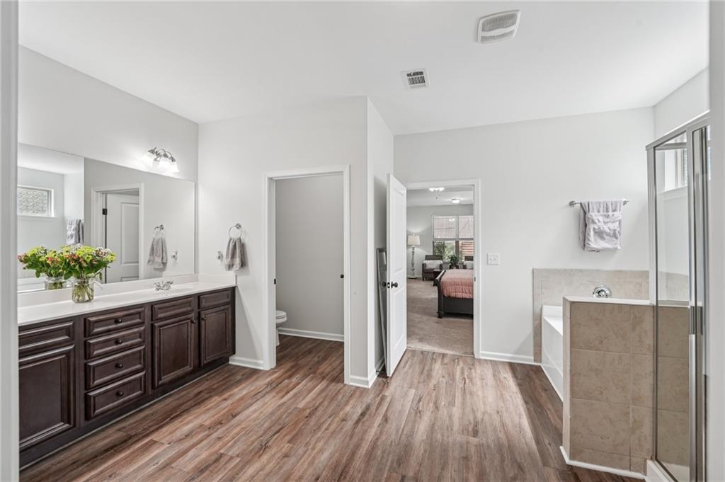 - FeaturesDisappearing Attic Stairs, Double Vanity, Entrance Foyer, High Ceilings 9 ft Main, Tray Ceiling(s), Walk-In Closet(s)