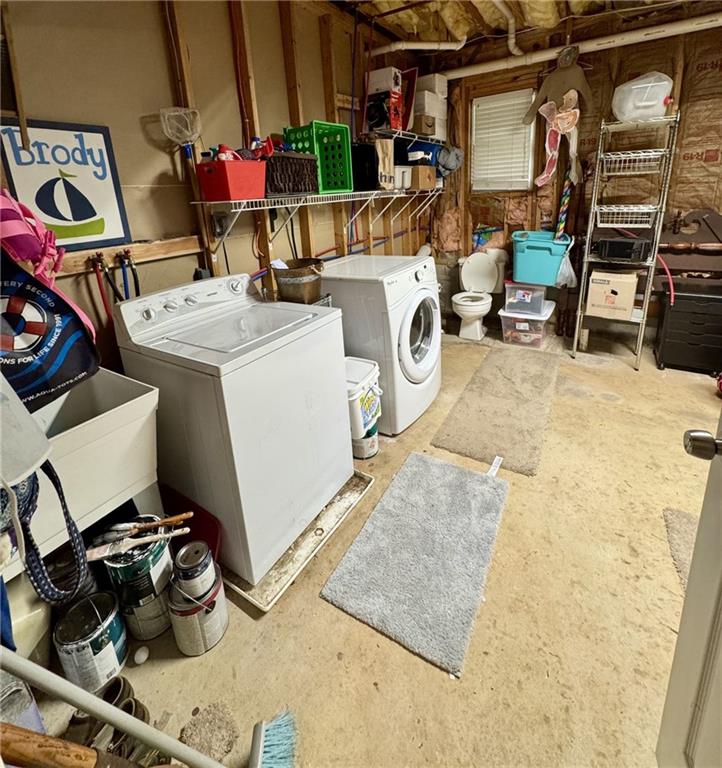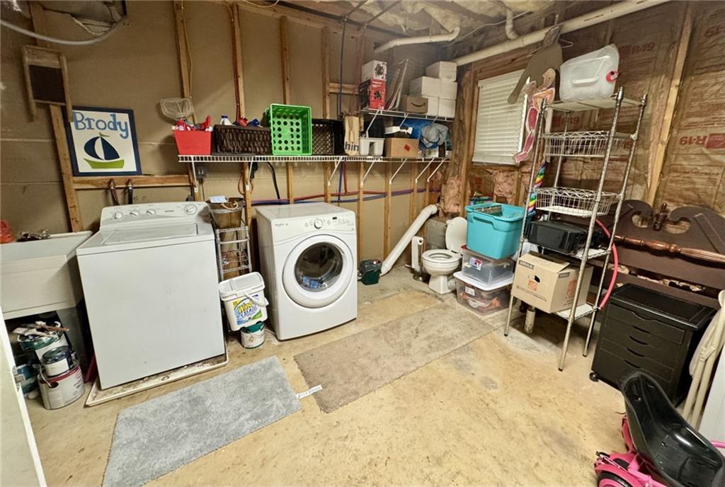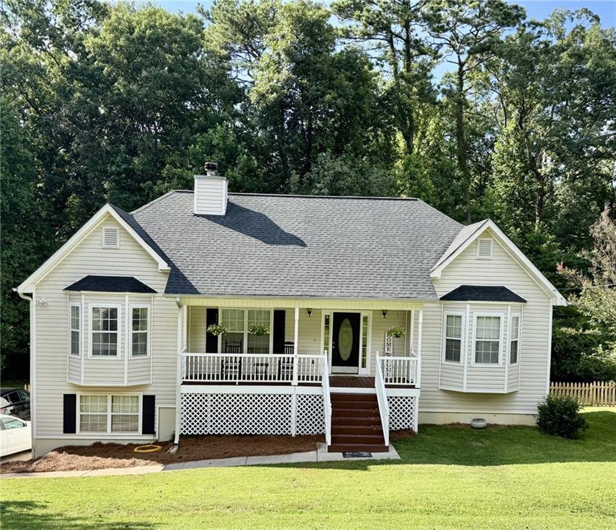 WELCOME HOME to this cute raised ranch with a spacious rocking chair front porch. Step into an open foyer that leads into the upstairs living room and large dining room big enough for a 12 seater dining room table. The kitchen has a pass through window that is perfect for looking into the living room or just to watch tv while cooking. Kitchen has a eat in area and a large pantry that used to be the laundry room and could be easily converted back by removing the shelving unit. Back deck & stairs are new. Primary suite is oversized and could easily accommodate a sitting area. Primary bath has separate tub & shower, double vanity and large walk in closet. Finished basement are has an office area and large room that holds a bonus area, storage and gaming space. Laundry is in its own room, 13' X 14', with a half bath and plenty of storage. Garage offers a workshop area and a man door.