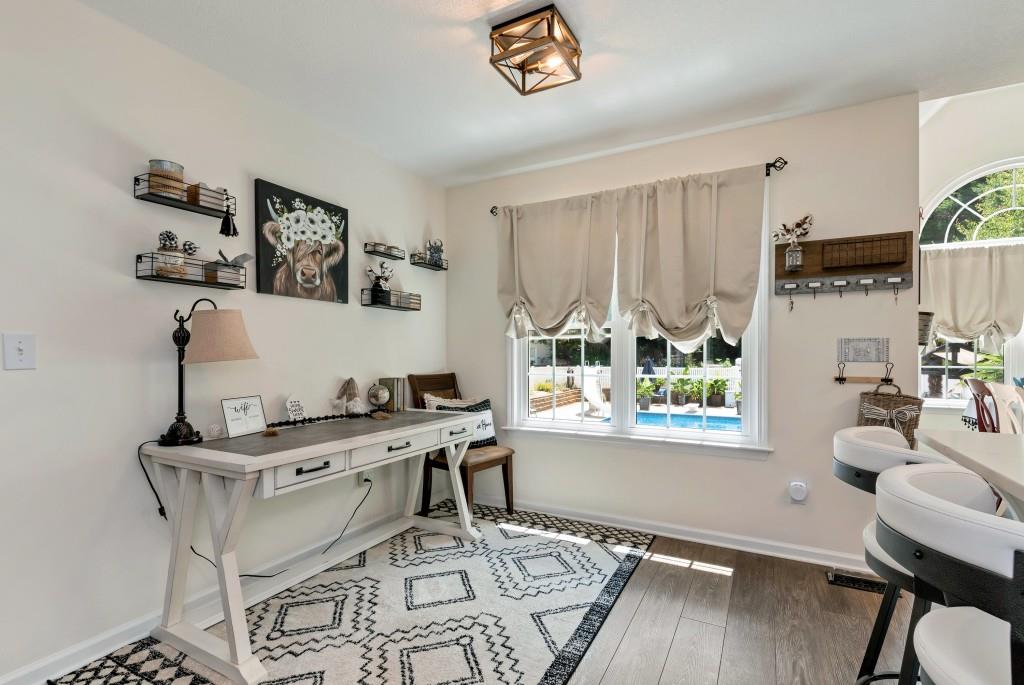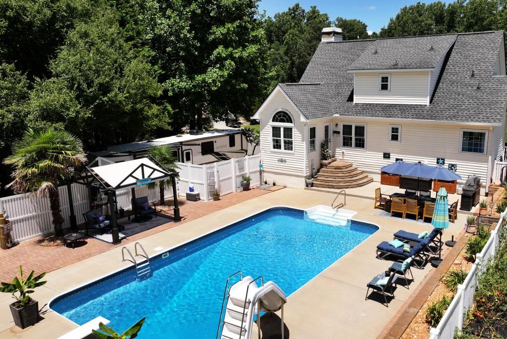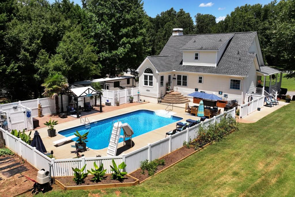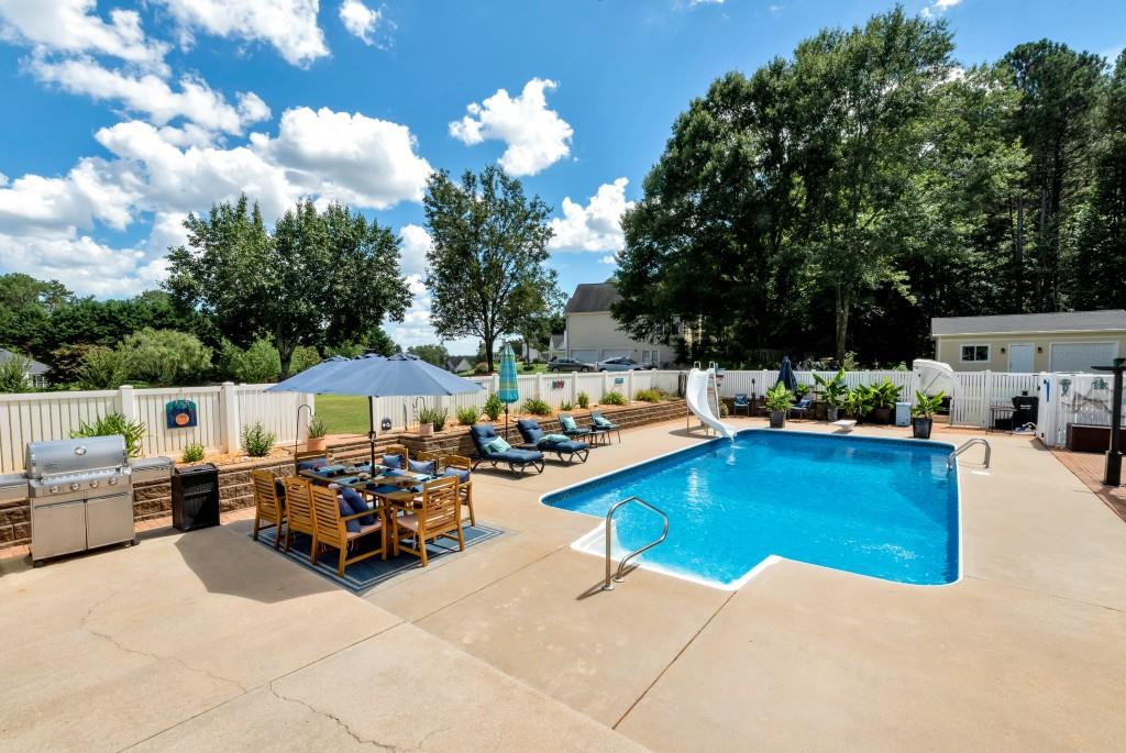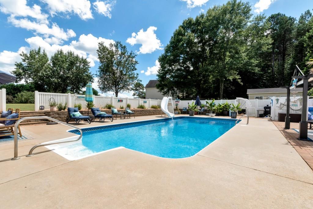 Magnificent Home, Pool & New Workshop on over an acre in one of the finest subdivisions in Dawson County! This meticulously maintained property is truly the envy of the neighborhood, boasting a wealth of recent upgrades that will take considerable time to see and appreciate. The gorgeous Kitchen features an abundance of N.C. Maple Cabinets and a picturesque view to the sizeable inground pool. The home brings forth 3-D Luxurious Vinal Plank flooring, new Fixtures and Ceiling fans throughout, Upgrades in bathrooms, built-in Shelving, and tons of Storage! The Trane (3 ton) HVAC and Water Heater are both less than three years old. There is also a Wi-Fi-enabled thermostat and Ethernet throughout the house, a Media Room in the basement, and an extra space for a fourth bedroom, office, or gym. The finished office, located in the garage area, offers a getaway to your job without ever leaving home. Exterior upgrades include modern Lighting, and lush Landscaping accompanied by thriving Palm Trees! The inviting Pool offers depths from 3 ft to 9.5 ft and sports a recent durable pool liner and pump. The property also includes a sweet garden area w/peach and cherry trees and straight from the vine, tomatoes! Leaf filters are installed on every roof line. The new workshop is a significant asset equipped with TV, Internet, LED lighting, a 12000 BTU Mini-Split/ HVAC, and 100-amp power! You will also find a 30-amp outlet dedicated for your Camper/RV with designated parking on the side of the home. This home offers an exceptional state-of-the-art lifestyle that blends comfort, functionality, and fun! Once you see it, you will not want to leave it. Come on home!