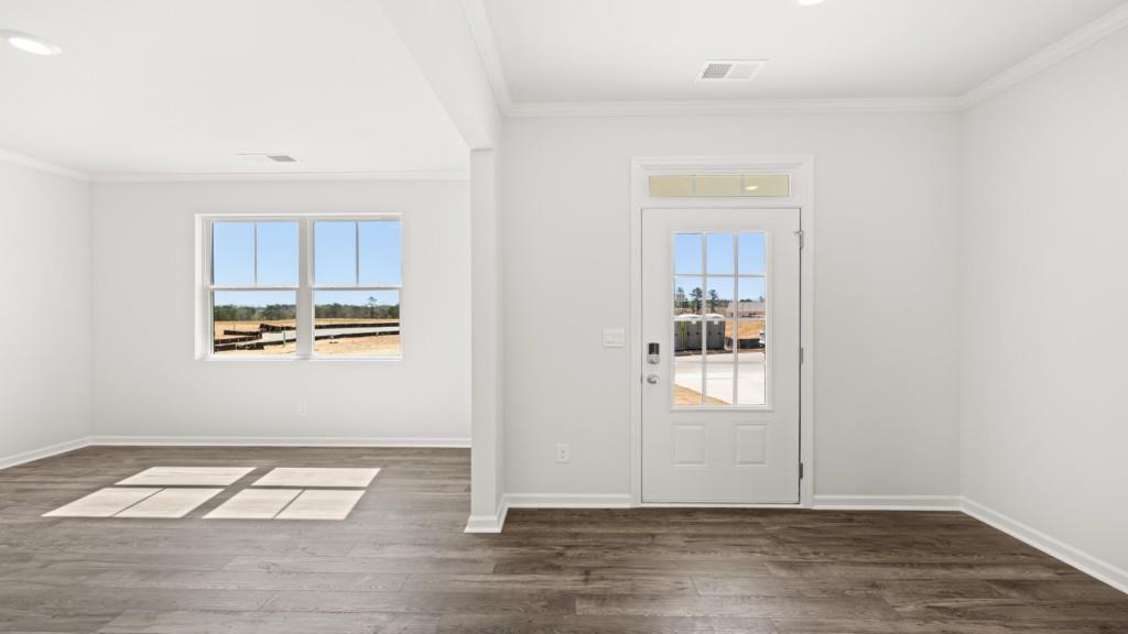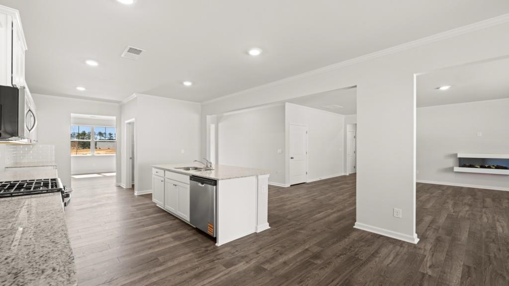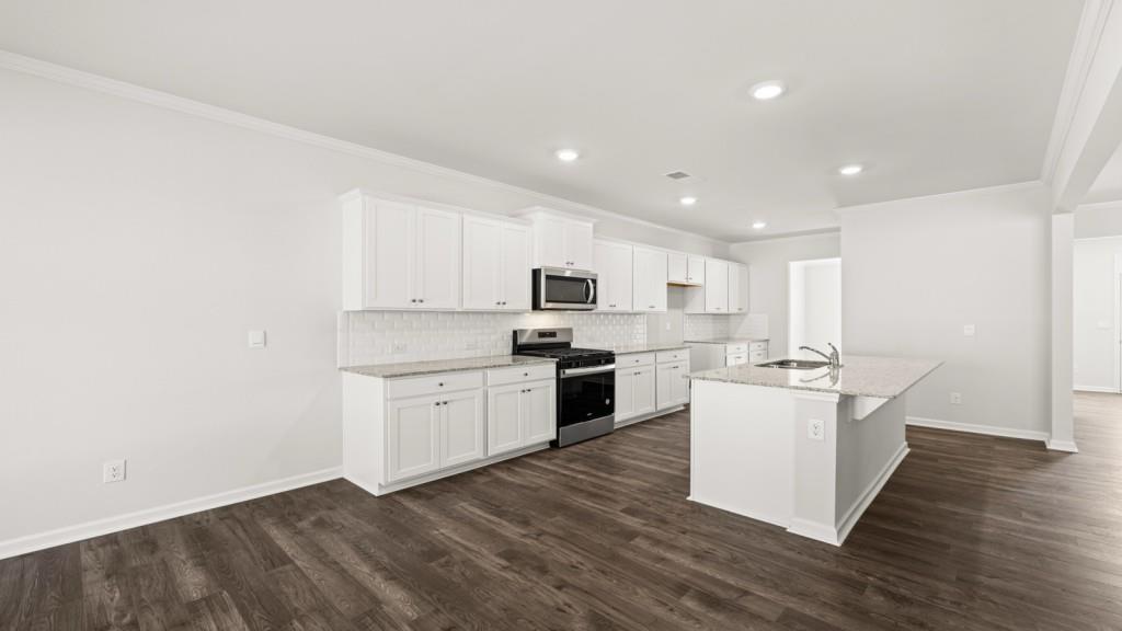 Introducing The Halton at 262 Virgil Street in our Dallas, GA community- Thompson Ridge. The Halton plan boasts 5 bedrooms and 3 bathrooms, including a spectacular primary suite, there's no question why this is one of our best-selling plans. A spacious foyer leads you into the home, with access to the stairs, a hallway leading into the living room, and an entryway into the flex room at the front of the home. Through the flex room you'll enter a butler's pantry that acts as a pass-through - especially beneficial if the flex space is used as a dining room -and also provides access to the roomy walk-in pantry. The large kitchen feels boundless with seamless flow into the attached dining area and adjacent living room. A stainless-steel appliance suite, oversized island, and bountiful counterspace make this kitchen a chef's dream. A bedroom and full bathroom round out the main living area. Upstairs you'll walk directly into an additional living area at the top of the stairs. To one side, you'll find three secondary bedrooms and a bathroom with double vanity and a linen closet. On the other side, the primary suite sprawls from the front of the home to the back, boasting a roomy bedroom with it's own spacious sitting area, two expansive walk-in closets, and a primary bathroom with double vanity, separate soaking tub and shower, and a water closet. An ample laundry room rounds out the second level. Call us at Thompson Ridge to schedule your tour of 262 Virgil Street in Dallas, GA today!
