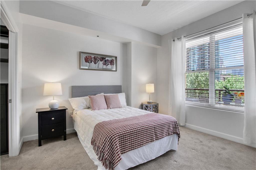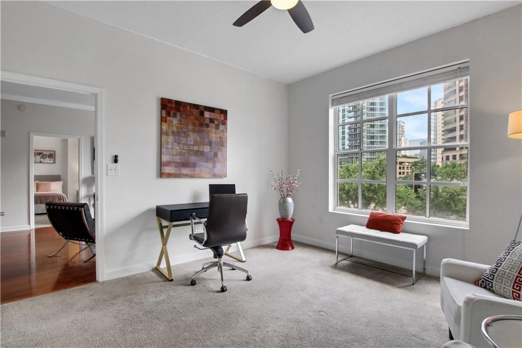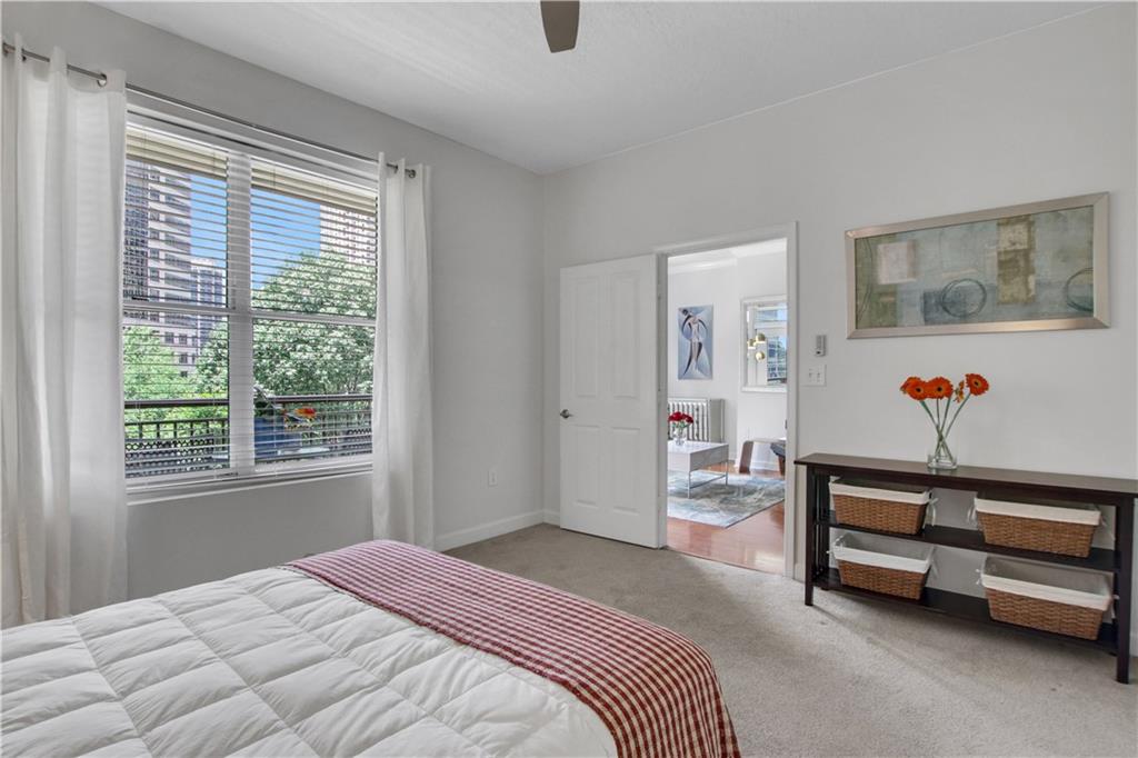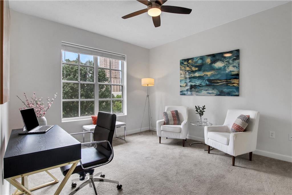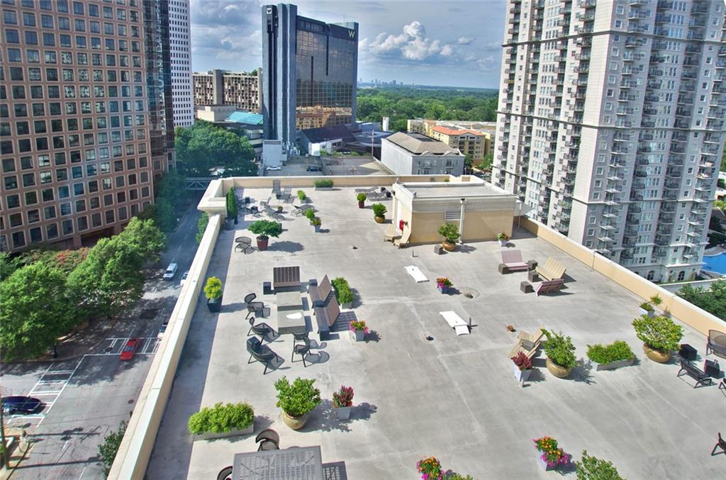 Experience the Excitement, Leisure, and Walkability of Midtown in this Comfortable 2/2 Condo with Beautiful West Facing Views. Inviting Living/Dining Combo with Hardwood Floors and a Well-Equipped Kitchen Featuring Stainless Steel Appliances, Breakfast Bar, and a Large Pantry/Laundry with Washer and Dryer. Spacious Primary Bedroom and Bath with Large Walk-In Closet Featuring a Custom California Closet. Welcoming 2nd Bedroom/Office with Separate Bathroom. Freshly Painted Throughout with Newer Carpet in Both Bedrooms, Newer A/C and Recessed Lighting. Well-Lit with Tons of Natural Light. Walk-Out Patio with Sitting Area Overlooking Midtown, Sunsets, and City Lights. Unit Includes 2 Deeded Parking Spaces with one EV Charger and Conveniently Located Near the Condo and Easy Elevator Access. The Park Central Community Features Amazing Amenities Including a Panoramic Rooftop Terrace, Outdoor Pool, Grilling Area, Club Room, Dog Walk, Google Fiber, and more. Building Has a High-End Fitness Center with Cardio Room, Weight/Machine Room, Yoga/Boxing Studio, Saunas, and Unique Indoor Heated Lap Pool. One Bedroom Guest Suite with Dedicated Parking Spot. Full-Time Onsite Management and 24-hour Concierge Service. Just Steps Away from Piedmont Park, the Woodruff Art Center, Colony Square, Close to Marta Stations, and All of the Dining and Entertainment Options Midtown Has to Offer!