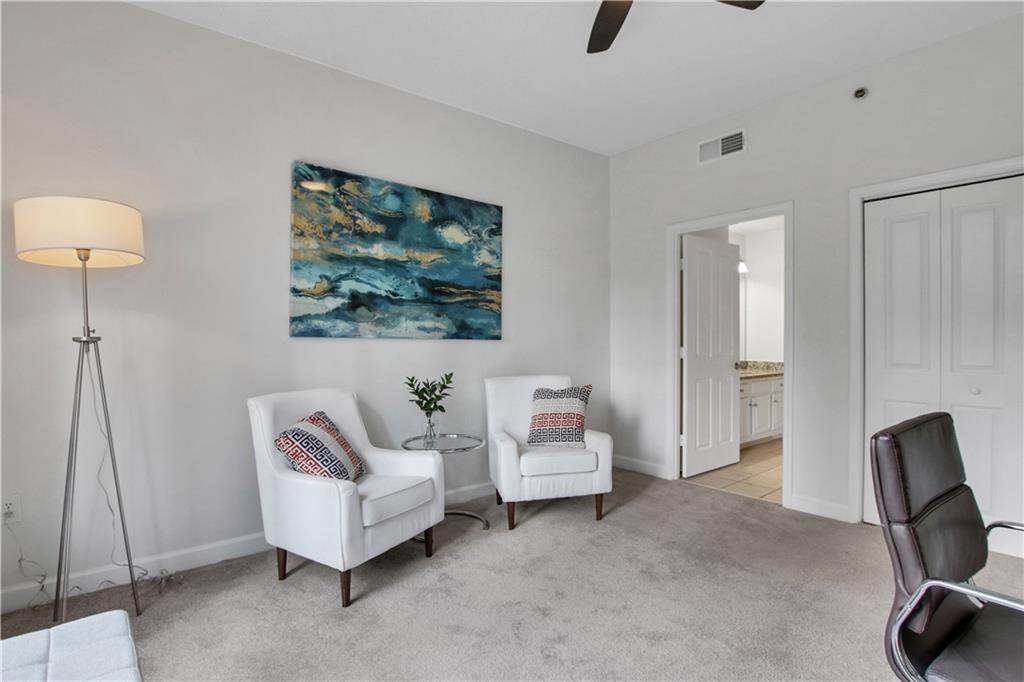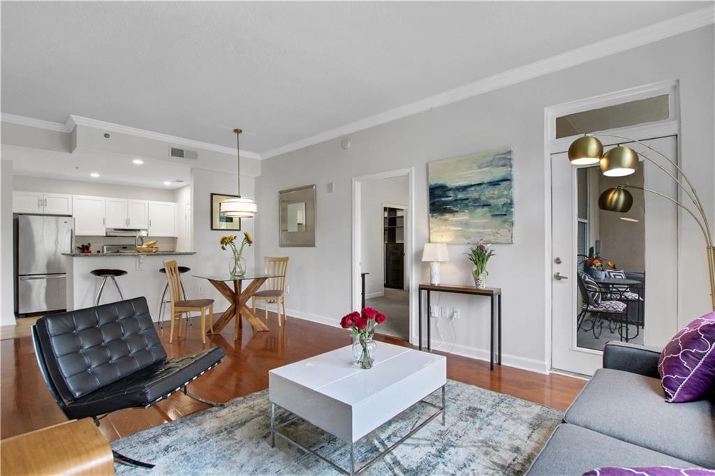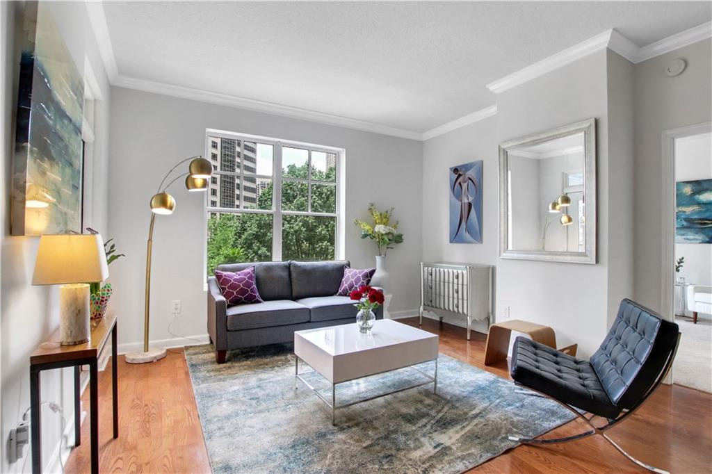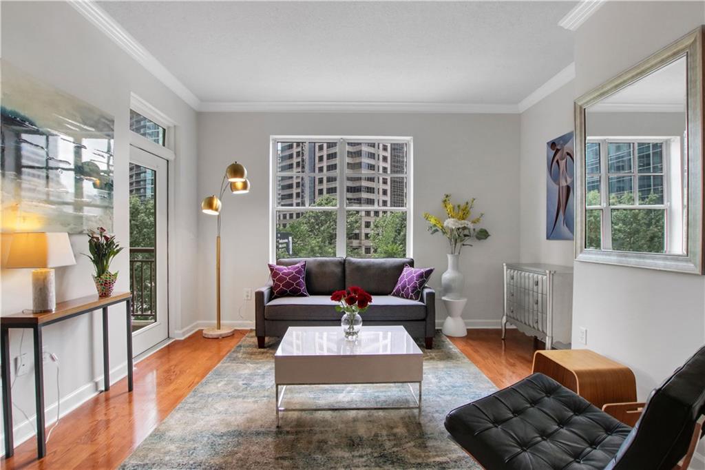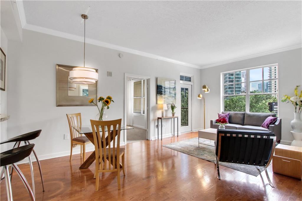 Experience the Excitement, Leisure, and Walkability of Midtown in this Comfortable 2/2 Condo with Beautiful West Facing Views. Inviting Living/Dining Combo with Hardwood Floors and a Well-Equipped Kitchen Featuring Stainless Steel Appliances, Breakfast Bar, and a Large Pantry/Laundry with Washer and Dryer. Spacious Primary Bedroom and Bath with Large Walk-In Closet Featuring a Custom California Closet. Welcoming 2nd Bedroom/Office with Separate Bathroom. Freshly Painted Throughout with Newer Carpet in Both Bedrooms, Newer A/C and Recessed Lighting. Well-Lit with Tons of Natural Light. Walk-Out Patio with Sitting Area Overlooking Midtown, Sunsets, and City Lights. Unit Includes 2 Deeded Parking Spaces with one EV Charger and Conveniently Located Near the Condo and Easy Elevator Access. The Park Central Community Features Amazing Amenities Including a Panoramic Rooftop Terrace, Outdoor Pool, Grilling Area, Club Room, Dog Walk, Google Fiber, and more. Building Has a High-End Fitness Center with Cardio Room, Weight/Machine Room, Yoga/Boxing Studio, Saunas, and Unique Indoor Heated Lap Pool. One Bedroom Guest Suite with Dedicated Parking Spot. Full-Time Onsite Management and 24-hour Concierge Service. Just Steps Away from Piedmont Park, the Woodruff Art Center, Colony Square, Close to Marta Stations, and All of the Dining and Entertainment Options Midtown Has to Offer!