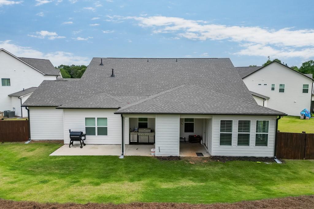 Beautifully upgraded and move-in ready, this Rosewood Lake home offers a highly functional layout with a main-level primary suite and thoughtful design throughout. Inside, you’ll find stylish vinyl plank flooring with no carpet, designer lighting, an upgraded hardware package, and custom plantation shutters that add both charm and convenience. The open-concept kitchen features stainless steel appliances, a tile backsplash, and an oversized walk-in pantry — perfect for everyday living and entertaining. The main-level primary suite boasts a luxurious bath and a spacious closet with direct access to the laundry room — a detail that makes daily routines seamless. Upstairs, enjoy a generous loft space and a private guest suite with a full bath. Outdoor living is just as impressive with a patio extension and outdoor fireplace, overlooking a fully fenced yard for added privacy. Sitting on one of the largest cul-de-sac lots in the neighborhood, the property also includes a rare third-car garage — an upgrade that sets this home apart. Unlike nearby new construction options that often come on smaller lots with limited upgrades, this home delivers space, privacy, and premium features already in place — no need to wait or pay extra for upgrades.