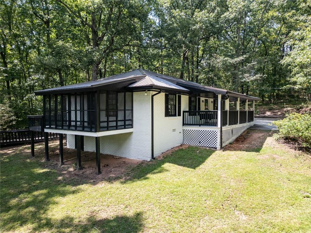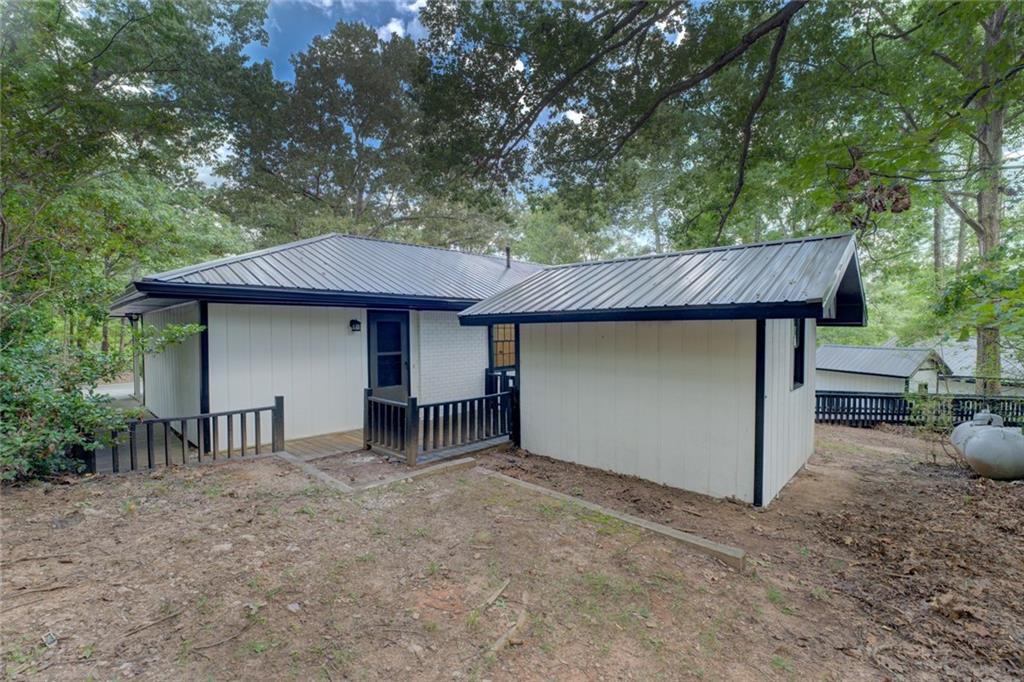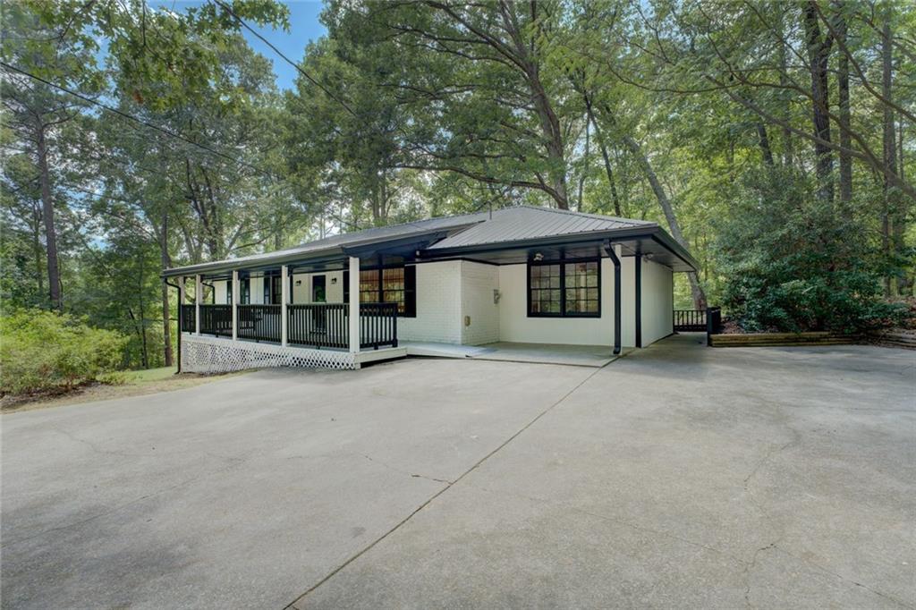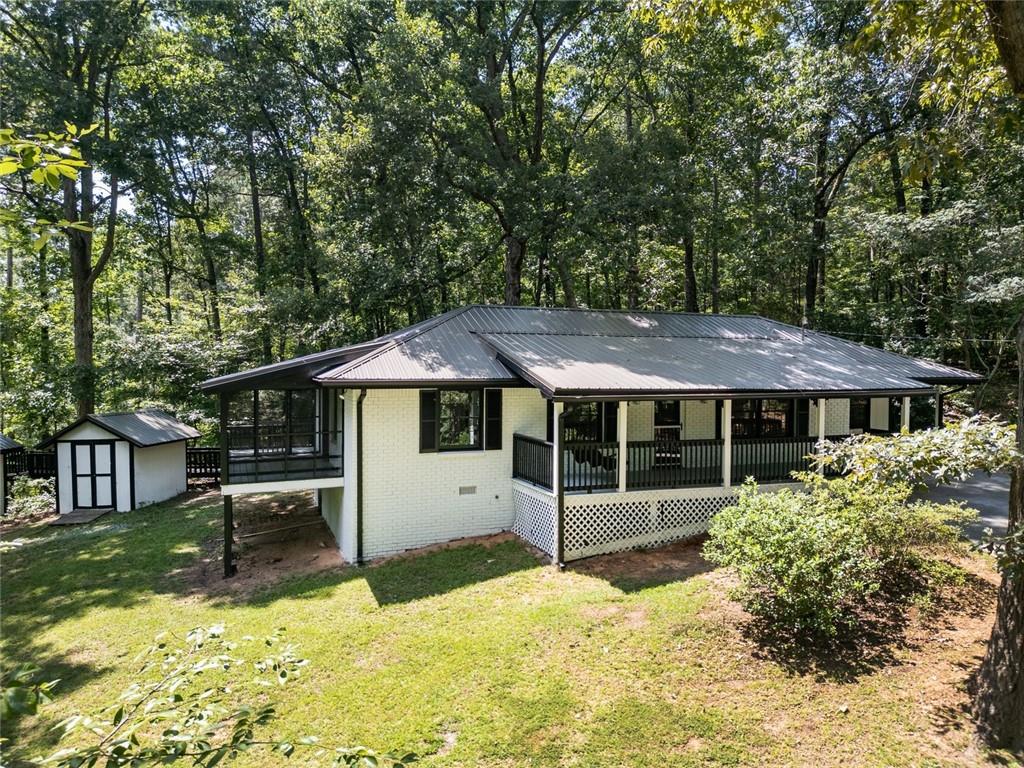 Rustic, upgraded, private and comfortable 3-bedroom & 2.5-bathroom ranch home resting on 1.56 +/- acres. Also included is a large, detached garage/workshop with a 1-bedroom & 1-bathroom apartment over the garage for potential rental income. This move-in ready home features a brand-new metal roof, new gutters, new paint inside & out, new waterproof LVP flooring, new kitchen appliances, new fixtures, large primary bathroom, large covered front porch, screened in porch off the primary bedroom, large parking pad, second entrance to the property, and 2 sheds for extra storage. The garage apartment features a new metal roof, new paint inside and out, new flooring and includes a small kitchen. The Garage apartment has decking from the house. The decking has been freshly painted since the photos have been taken. There is No HOA and the property is located close to shopping and schools!