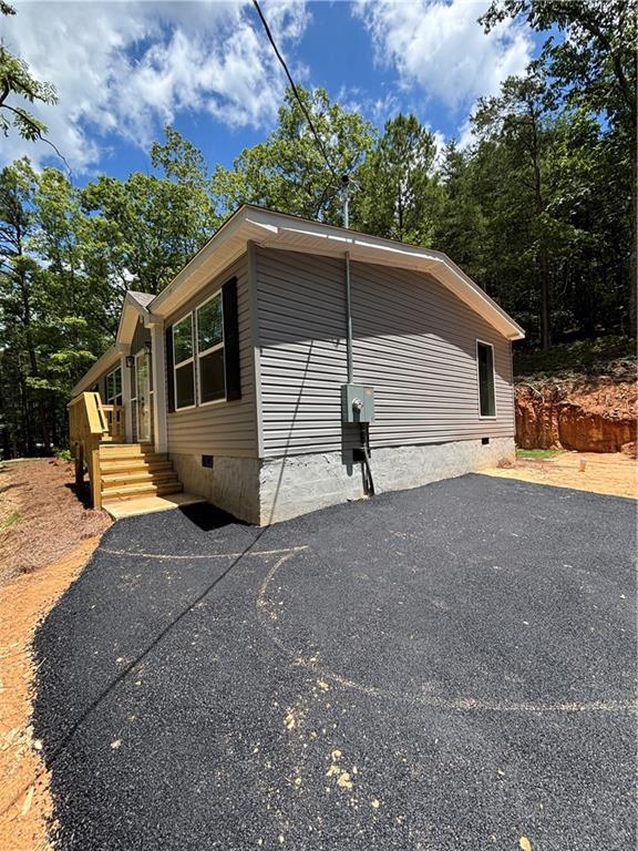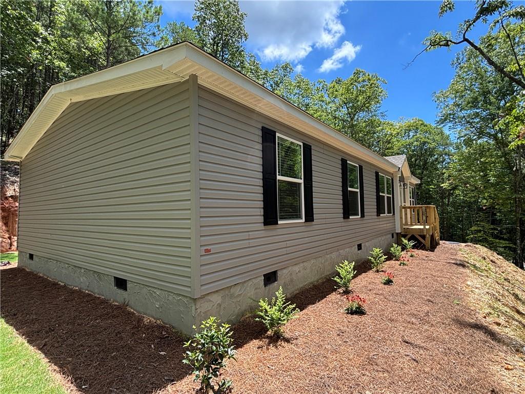 Brand new manufactured home on permanent foundation. Brand new private well, new septic tank. Landscaped yard with sod. Brand new asphalt driveway. You cannot beat the privacy from this home. Such quiet and peaceful property. 3 bedrooms, 2 full bathrooms, 2 separate living room areas, built in shelving. Master bath with tiled shower. Home comes with 1 year warranty. Agent is owner.