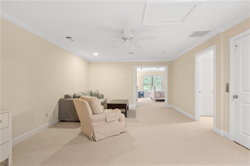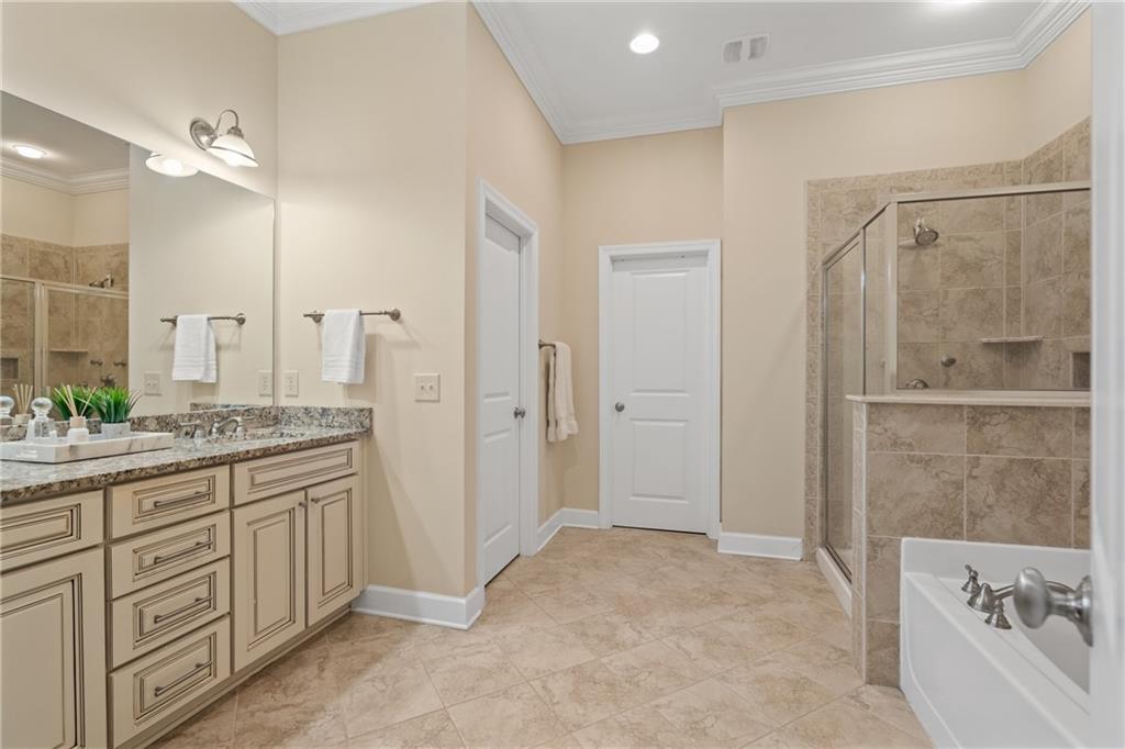 Stunning Brick Townhome with Elevator in Gated Myers Park – Prime Johns Creek Location! Welcome to this luxury 3 bed / 3.5 bath townhome nestled in the highly desirable gated community of Myers Park. Boasting elegant brick curb appeal and a thoughtfully designed open floorplan, this home is filled with high-end upgrades and modern conveniences, including a private elevator. Step inside to soaring 10-foot coffered ceilings, plantation shutters, rich custom trim work, and built-in cabinetry that add timeless sophistication. The main level features a cozy library or sitting area, an expansive family room, formal dining area, and a chef’s kitchen with an oversized island, walk-in pantry, extra cabinetry, and a wine cooler, perfect for entertaining. The second floor offers a versatile loft area ideal as a secondary family room, media space, or home office. Retreat to the spacious primary suite with a private sitting area and luxurious en-suite bath. An additional bedroom and full bath complete this level. The third floor is perfect for a private teen or in-law suite, offering a huge bonus room, bedroom, and full bath. Enjoy the fenced-in brick patio, a serene and private outdoor space. Ideally located near the back of the neighborhood, this home is just steps from a dog-walking trail and within walking distance to top-ranked schools. Low-maintenance living with low HOA fees that cover landscaping, termite, trash, pool, fitness center, and clubhouse amenities. Don’t miss this rare opportunity for elegance, space, and convenience in one of Johns Creek’s most sought-after communities!