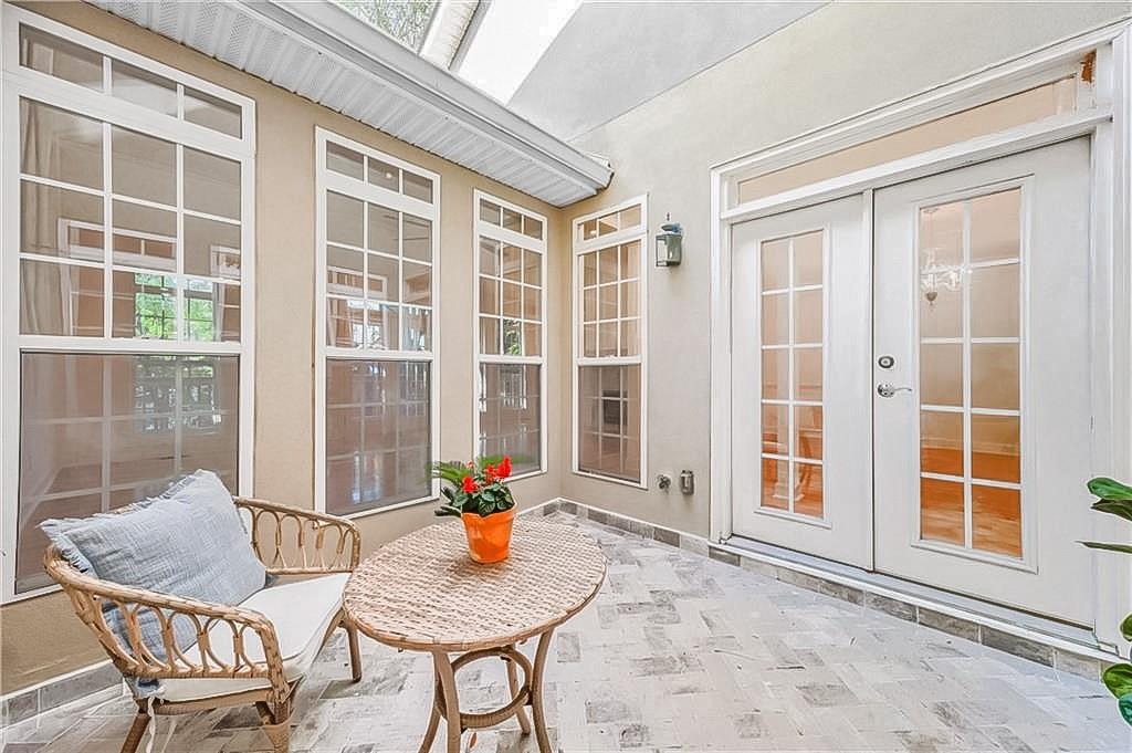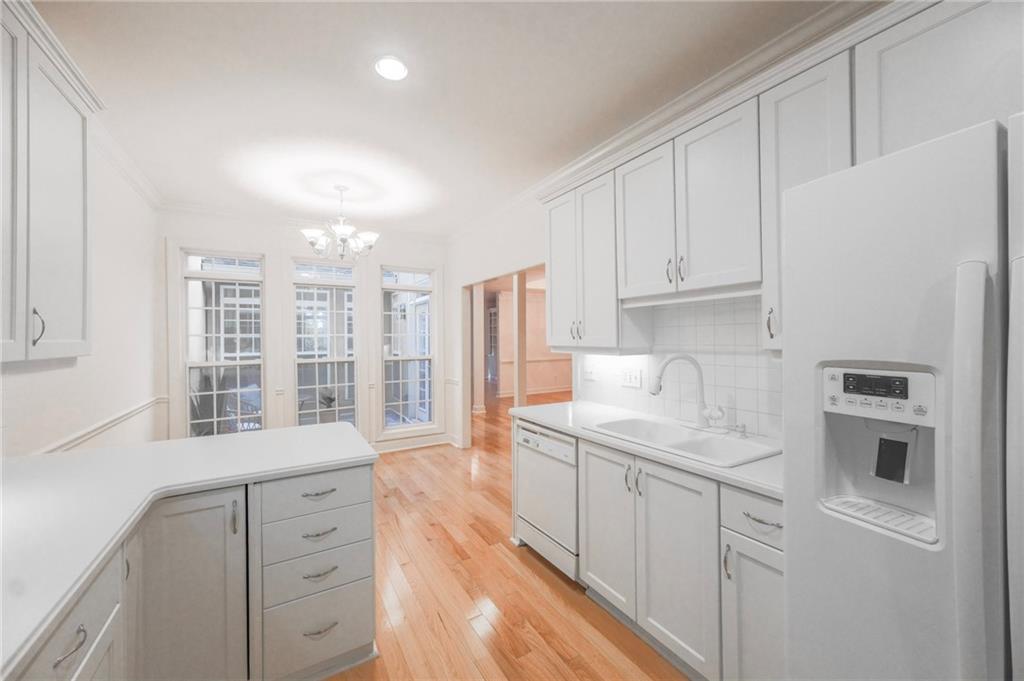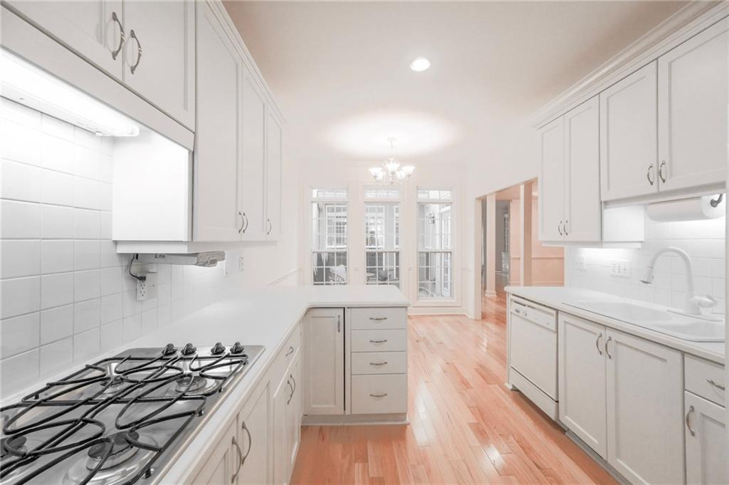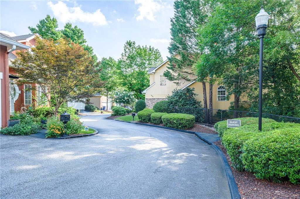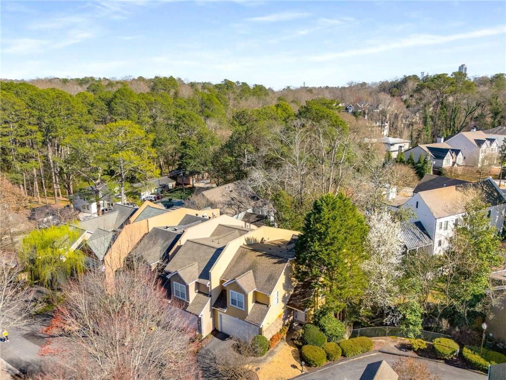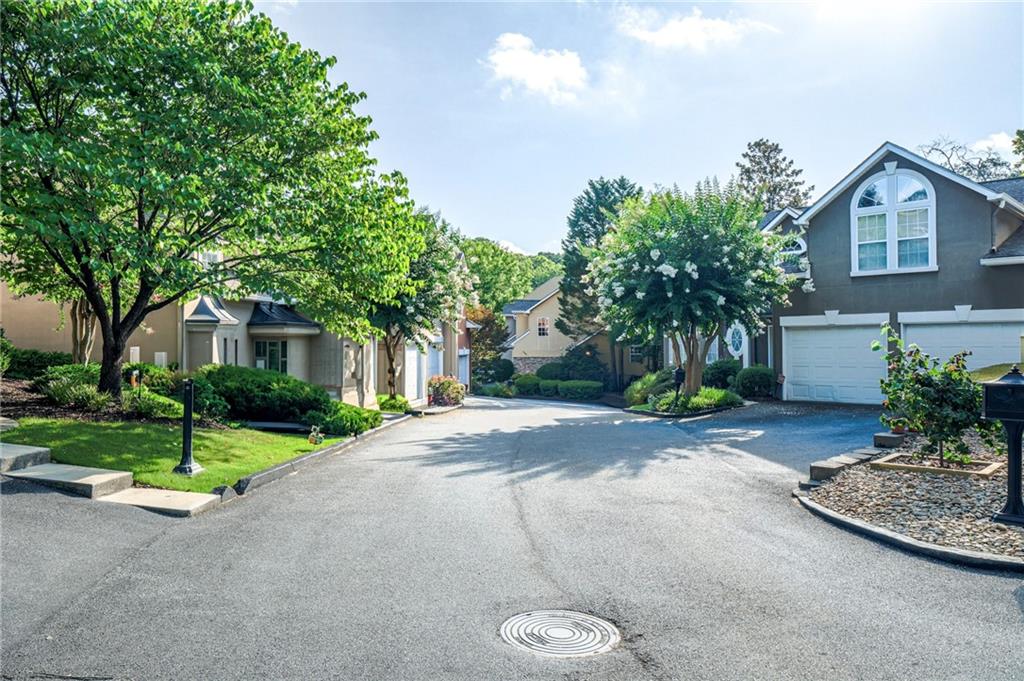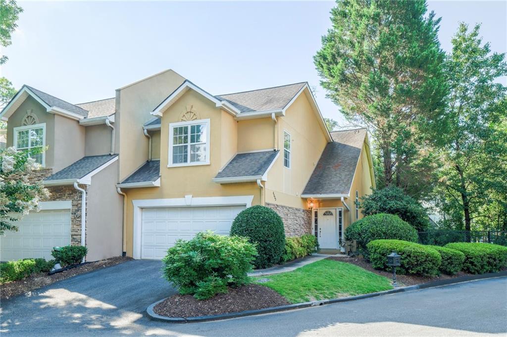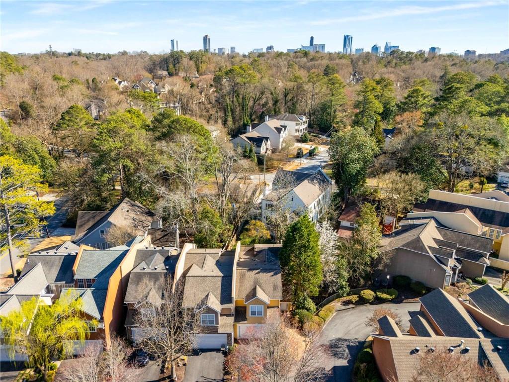 Primo Location. This hidden gem in the heart of North Buckhead lives like a large single family home. Tucked away in a quiet enclave of 18 homes, this rare 4-bedroom, 3.5-bath end-unit townhome offers an unbeatable combination of space, architectural elements, natural light, and location. A gated entrance leads you into a beautifully maintained home with a large house-like footprint spanning three spacious levels. Soaring ceilings, a dramatic two-story foyer, a wall of windows, and a unique atrium/patio flood the main level with natural light. The stunning 2-story living room features built-in bookshelves and a cozy fireplace, while the white eat-in kitchen offers ample storage and functionality. The oversized primary suite serves as a private retreat, thoughtfully separated from two additional guest bedrooms and a full bath down a sunlit hallway. The fully finished terrace level includes an additional bedroom and bath—perfect for an in-law suite or home office—along with generous storage space. Additional highlights include a main level two-car garage, plenty of guest parking, sky-high ceilings in the main living area, FEE SIMPLE ownership, low HOA dues (which include weekly yard blowing), and true lock-and-leave convenience. Located just minutes from Chastain Park and Blue Heron Nature Preserve and within walking distance to Publix, Fresh Market, Trader Joe’s, and neighborhood favorites like Fellini’s and La Fonda, this home offers easy living, top-rated schools, great neighbors, and proximity to some of Atlanta’s best parks, shops, and dining. The square footage (which includes terrace level) for the price in the area is unmatched. These townhomes rarely hit the market - do not miss it. Lock & Leave/Easy Living.
