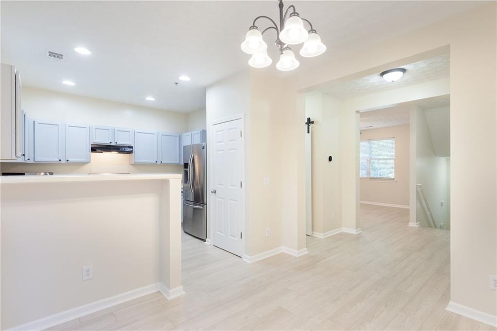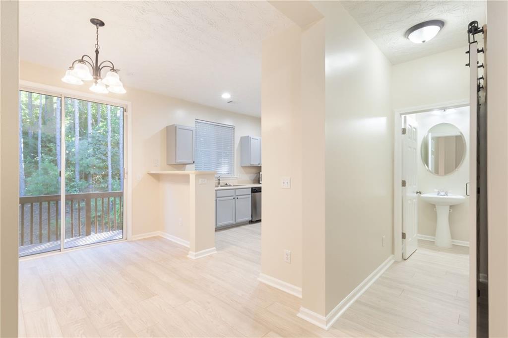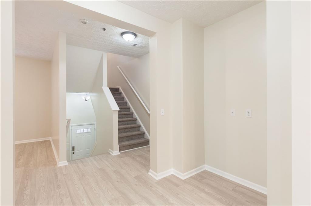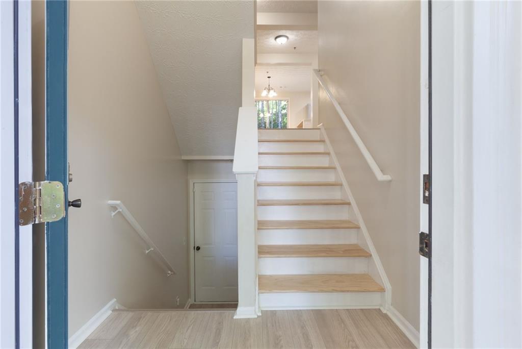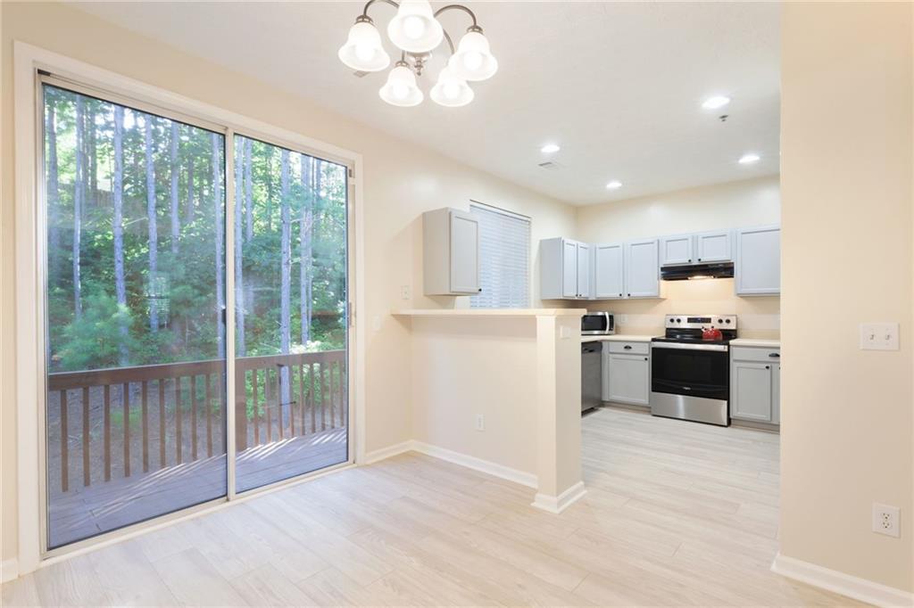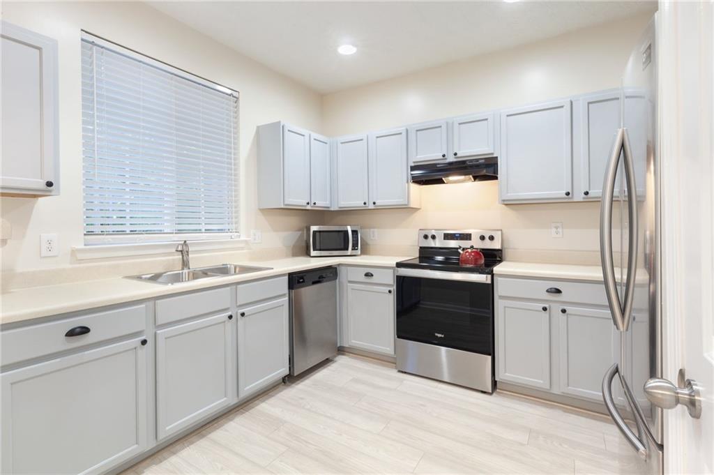 Welcome home to this beautifully updated 2-bedroom, 2.5-bath townhome nestled in a quiet, wooded community in vibrant Woodstock! From the moment you step inside, you'll appreciate the fresh paint and brand-new flooring that flows throughout the entire home, creating a clean, modern feel. The spacious kitchen features sleek stainless steel appliances, including a brand-new stove and dishwasher, along with updated lighting and fixtures that add a touch of style. Enjoy peace of mind with a new water heater, new garbage disposal, and newer HVAC system for year-round comfort. The home also includes programmable thermostats and a security alarm system for added convenience and safety. Master bath features updated lighting and paint. Both bedrooms offer generous closet space, while the wooded backyard view provides a serene setting perfect for morning coffee or evening relaxation. Located just minutes from downtown Woodstock’s shopping, dining, and entertainment, this move-in-ready townhome offers the perfect blend of comfort, convenience, and community.