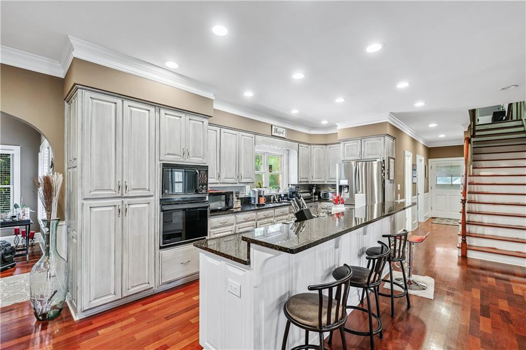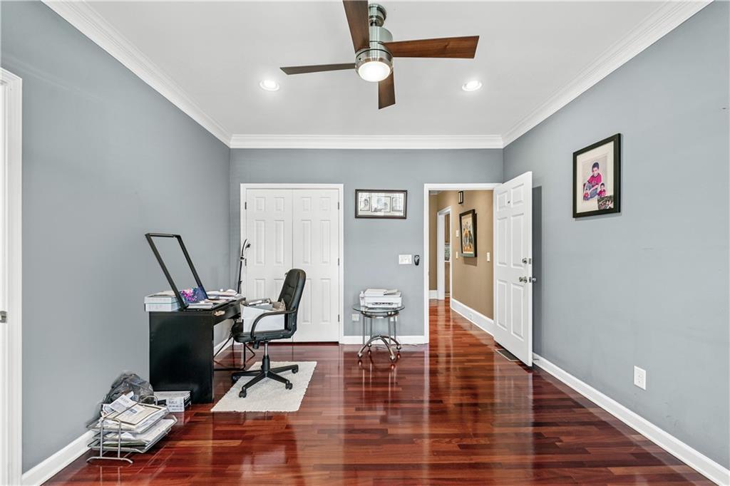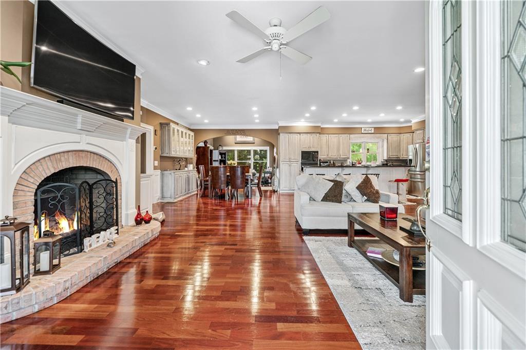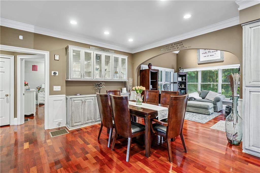 YOU CAN GET RENTAL INCOME FROM THE THREE IN-LAW UNITS AT THE BASEMENT WHILE YOU ARE LIVING IN THE HOUSE. THE THREE UNITS HAVE A SEPARATE ENTRANCE FROM THE MAIN HOUSE. INVESTORS, THIS COMMUNITY DOESN'T HAVE RENTAL RESTRICTIONS. UNIQUE BEAUTY ON A HILL This stunning 4-sided brick ranch is full of upgrades and perfectly designed for comfort, style, and everyday living. Inside, you'll find gorgeous Brazilian cherry hardwood floors, an open floor plan, and a spacious primary suite on the main level with a built-in safe and master bathroom with a warming feature. Two secondary bedrooms on the main floor and the 4th bedroom upstairs. All bedrooms include en-suite bathrooms, offering privacy for every occupant. The plantation shutters, custom trim, and built-ins throughout give the home a classic. Enjoy the bright sunroom/keeping room, cozy gas fireplaces, and a kitchen with granite countertops—perfect for cooking and entertaining. Downstairs, the finished basement features a game room, exercise room, workshop, office, or extra bedroom with its private entrance. This home offers rare flexibility with three separate in-law suites in the basement, each featuring its full bathroom and kitchenette. Whether you're accommodating extended family, multi-generational living, or looking for income-producing rental potential, this setup makes it easy and convenient. All appliances stay with the house for your convenience. With 3 garage spaces, a large fenced backyard, and a huge expandable attic, this home truly has it all. Located in a highly desirable area of Buford, this property is move-in ready and built to impress. See this one-of-a-kind home today before it's gone!
