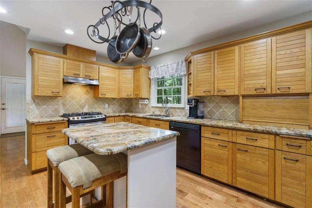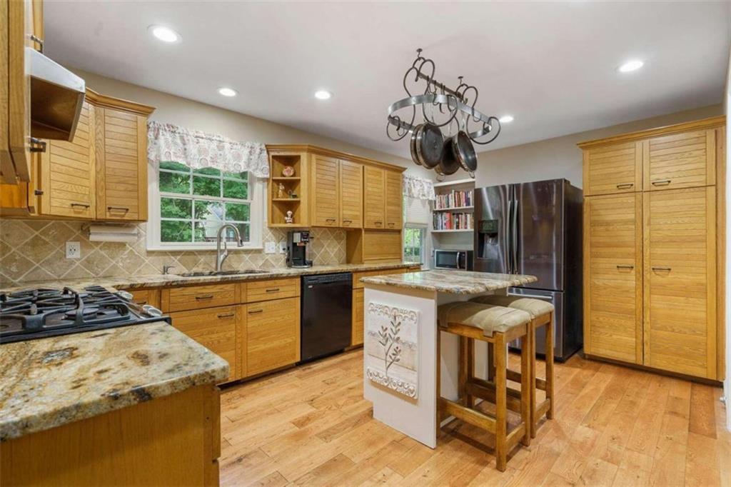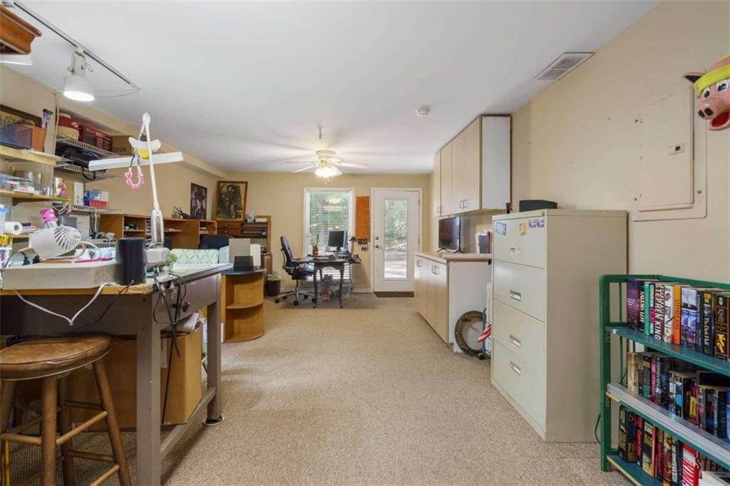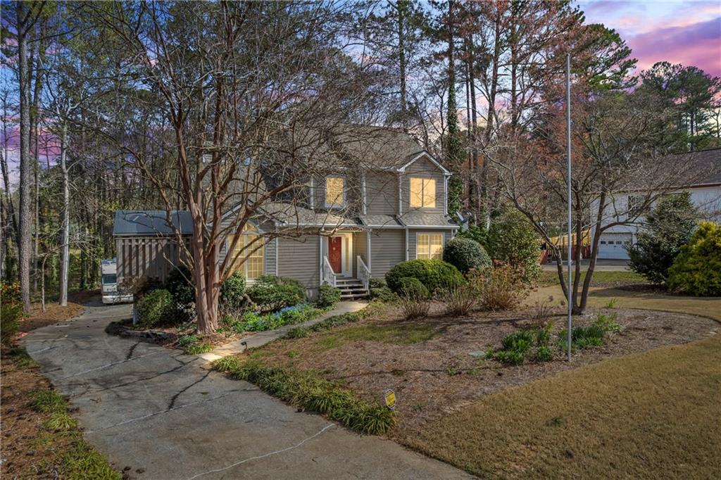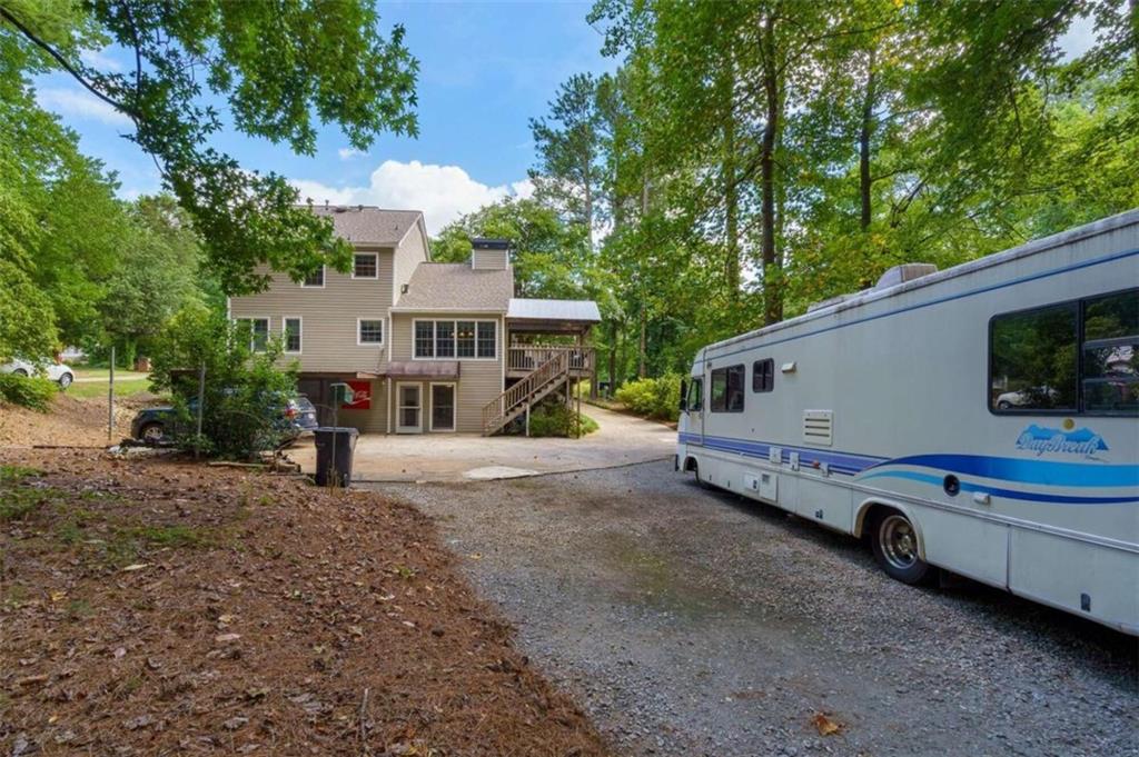 Truly unique, one of a kind home in fabulous Kennesaw location! Minutes to highways, shops, restaurants, excellent schools and more. This home has been professionally reconfigured to include a spacious kitchen with granite countertops, center island, and thoughtfully designed custom cabinetry. You'll find an appliance garage, bread safe, sheet pan cabinets, spice cabinets, lazy susan's, built in cutting boards and so much more! Escape to the covered side porch where you'll find a true private oasis to relax and enjoy the surrounding nature, or a soak in the jacuzzi. Master on main with updated ensuite bath. Two oversized secondary bedrooms share a guest bath upstairs. The basement/garage area of this home has been professionally finished to include an office/gym on one side and a dream workshop on the other. Carport added to exterior of workshop. Special features of this home include a dual fuel range/convection oven/gas cooktop, professionally landscaped front yard with irrigation system, central vacuum, USB ports(every room), hardwired alarm system and custom built in shelving. There is RV parking in the rear of the home, as well as an RV sewage extraction pump.
