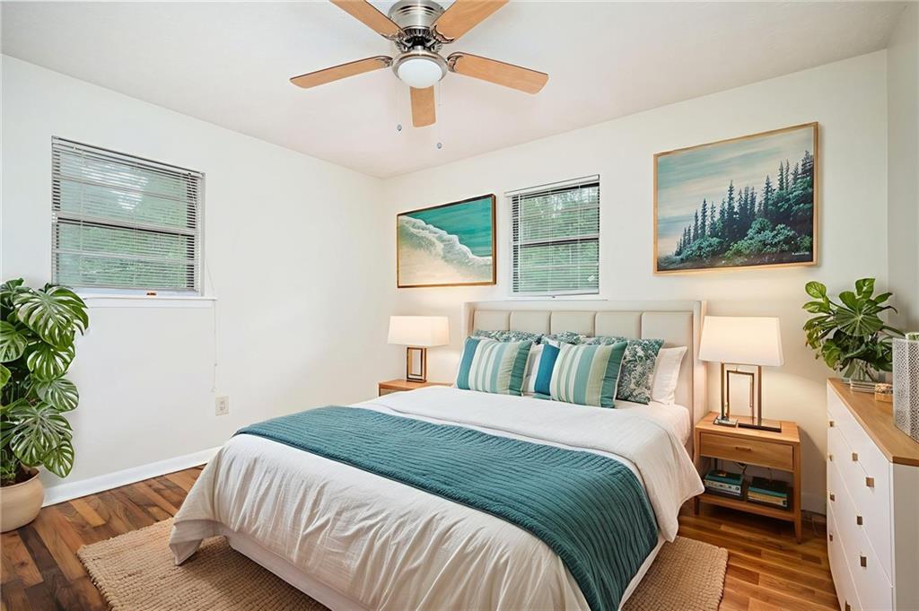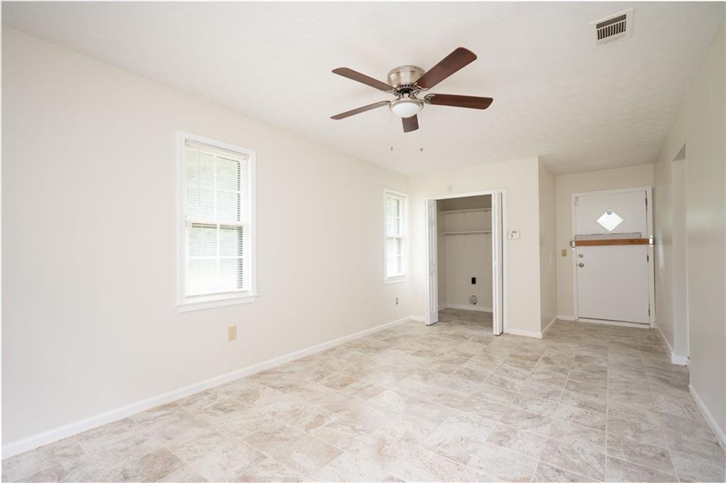 Welcome to the heart of South Fulton! This charming three-bedroom, single-floor residence offers an updated kitchen and bath, complemented by gleaming hardwood floors that flow throughout the home. The converted garage provides a spacious laundry room and versatile bonus space perfect for a home office, play area, or additional living quarters. Relax in the cozy den after a long day, or enjoy the gentle breeze on the inviting deck. With its solid four-sided brick construction and expansive lot of over 3/4 of an acre, this home is a true gem. Ideal for first-time home buyers or families seeking a property with no HOA, and minutes from everything you need. Enjoy the convenience of being close to the airport and bustling Atlanta, with Camp Creek Marketplace just a quick seven-minute drive away. Whether you're starting a new chapter or down sizing, this home offers good bones and endless possibilities on its generous land. This one could even make a great income property such as AirBnB. Don't miss out—make your appointment today and discover why this is the perfect place to call home!