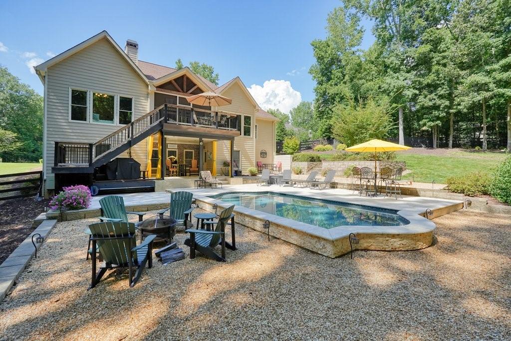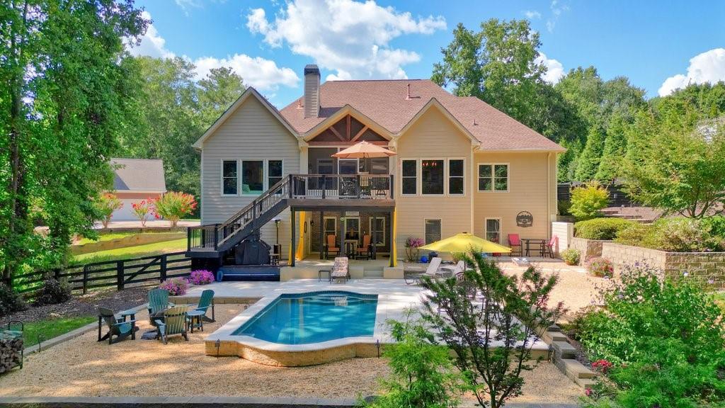 Welcome to this beautifully maintained ranch-style home, ideally situated on a private, quiet, cul-de-sac lot just over an acre in size. Located in the highly sought-after Alpharetta area of Cherokee County, this home offers over 4,000 square feet of thoughtfully designed living space—blending elegance, comfort, and functionality. The main level features a spacious primary suite with a luxurious soaking tub, creating the perfect retreat. The open-concept layout flows seamlessly from the interior living spaces to the backyard, where you’ll discover a professionally landscaped oasis complete with a heated gunite pool—perfect for year-round enjoyment. The fully finished, walk-out terrace level is ideal for entertaining or multi-generational living, offering two additional bedrooms, a full bathroom, a second kitchen, and expansive recreation space. Included with the home are two refrigerators, a washer and dryer, a pool table, a large gun safe, and outdoor furniture—making this move-in ready home an exceptional value. Enjoy the tranquility of suburban living while remaining close to top-rated schools, shopping, dining, and more. Schedule an appointment to see this rare gem!