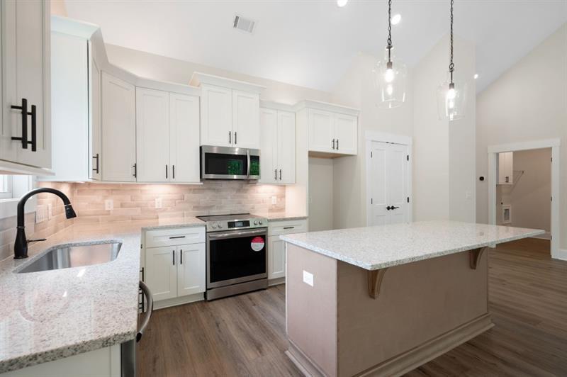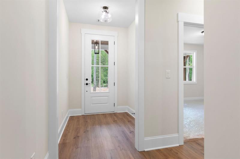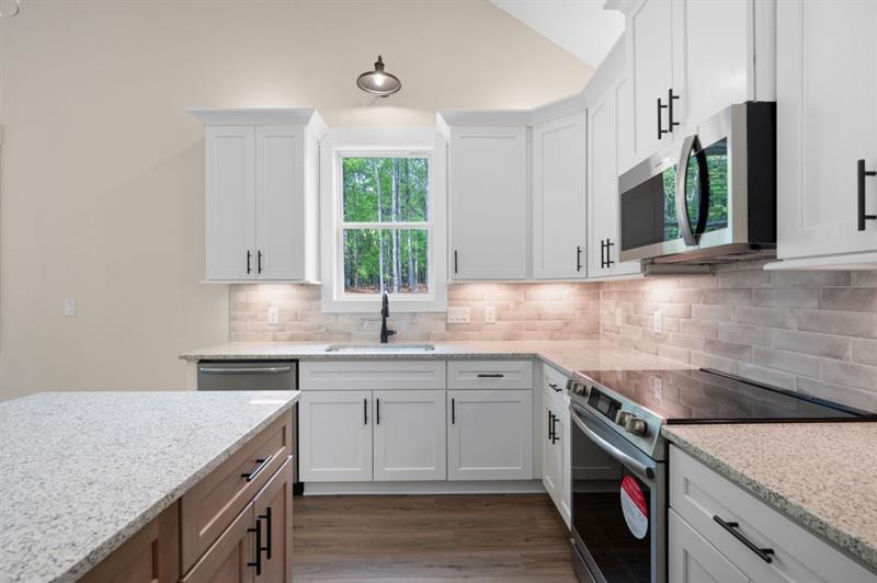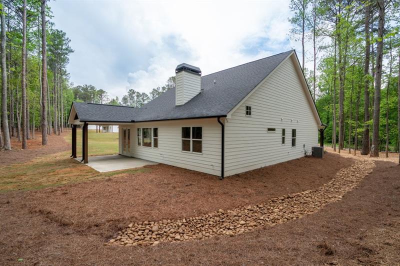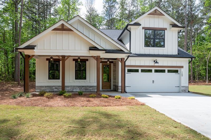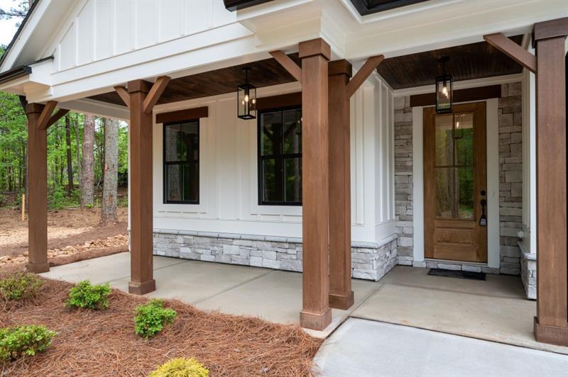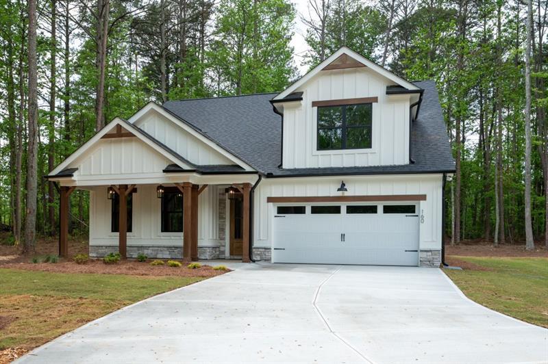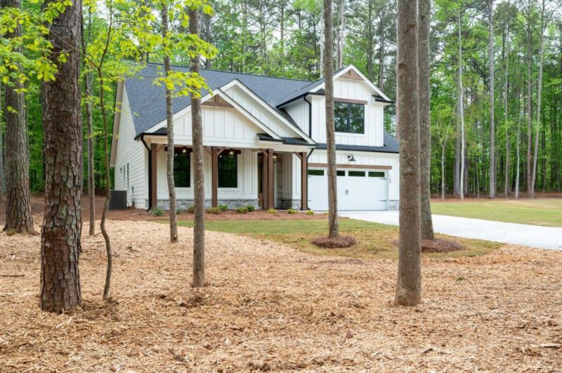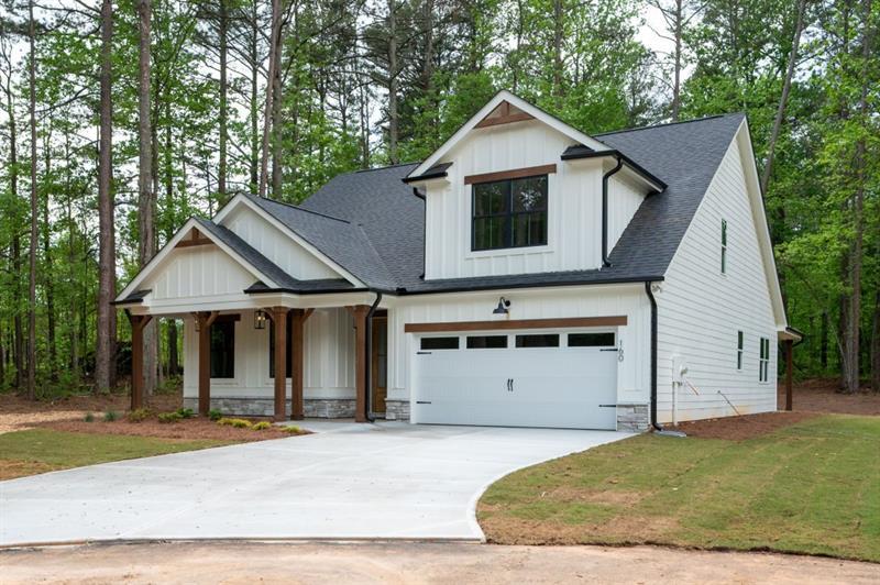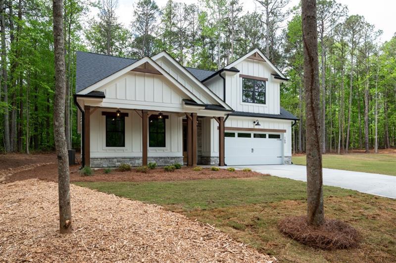 Beautiful new construction nestled on a quiet cul-de-sac lot. An enclave of eight custom homes on 1 acre lots and no HOA. This Open floorplan has 3 bedrooms and 2 bathrooms on main and 1 additional bedroom and bathroom upstairs. Convenient laundry room off master. Master bathroom features a double vanity, large shower with corner bench and niche. The kitchen boasts white cabinets, granite countertops, tile backsplash, kitchen island all open to the family room. You will appreciate the modern lighting and fixtures throughout the home. This home is total electric with gas starter for the fireplace and an option of gas cooking and gas grill connection. Outside you will enjoy relaxing on the covered porch or grilling on the patio. Convenient to the Roses store and Hwy 120 intersection across from Union elementary school. Map location in FMLS is incorrect.