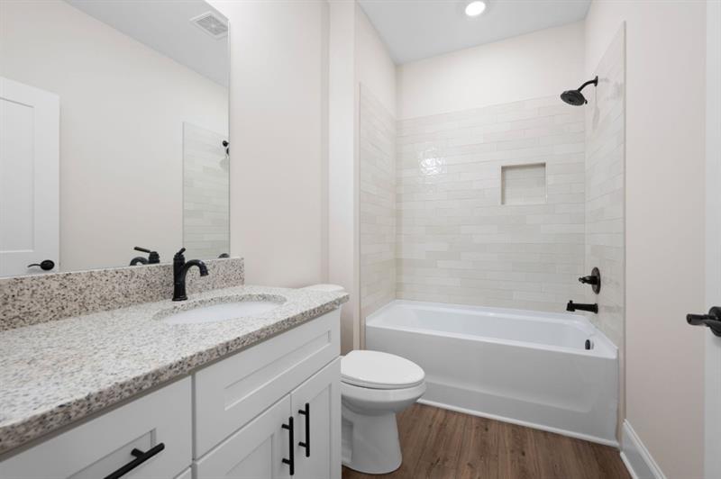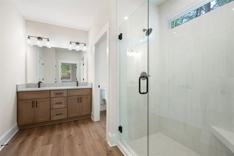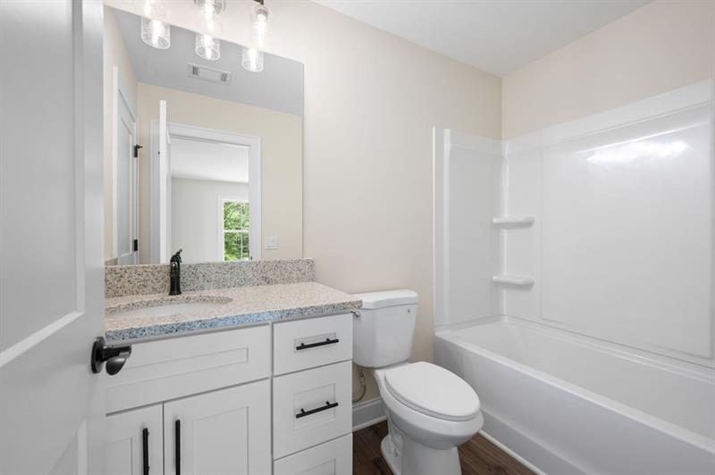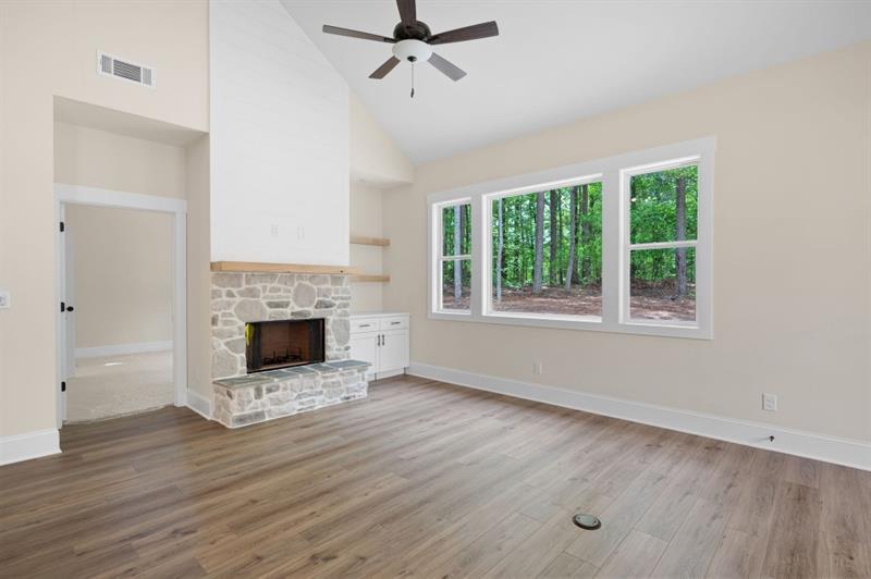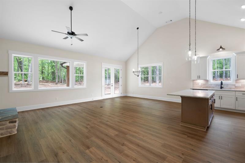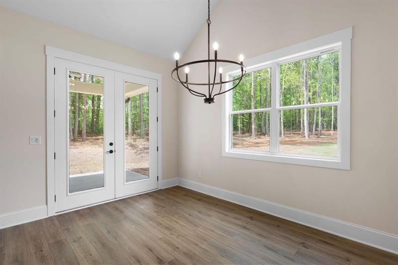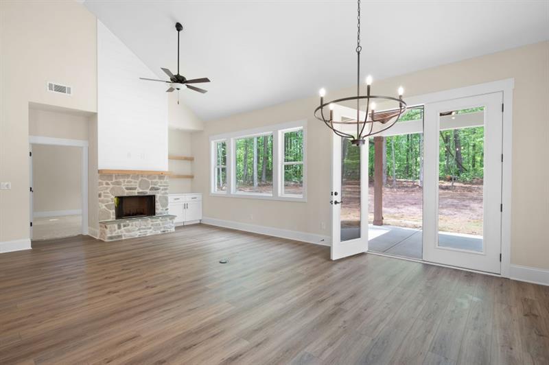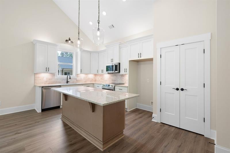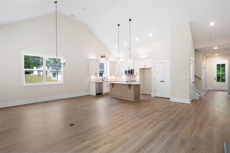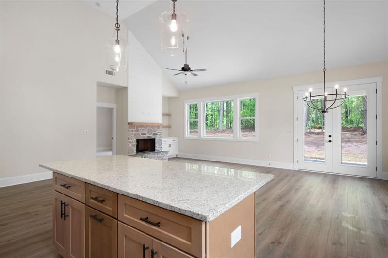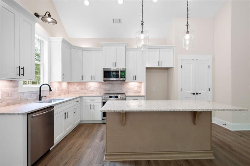 Beautiful new construction nestled on a quiet cul-de-sac lot. An enclave of eight custom homes on 1 acre lots and no HOA. This Open floorplan has 3 bedrooms and 2 bathrooms on main and 1 additional bedroom and bathroom upstairs. Convenient laundry room off master. Master bathroom features a double vanity, large shower with corner bench and niche. The kitchen boasts white cabinets, granite countertops, tile backsplash, kitchen island all open to the family room. You will appreciate the modern lighting and fixtures throughout the home. This home is total electric with gas starter for the fireplace and an option of gas cooking and gas grill connection. Outside you will enjoy relaxing on the covered porch or grilling on the patio. Convenient to the Roses store and Hwy 120 intersection across from Union elementary school. Map location in FMLS is incorrect.