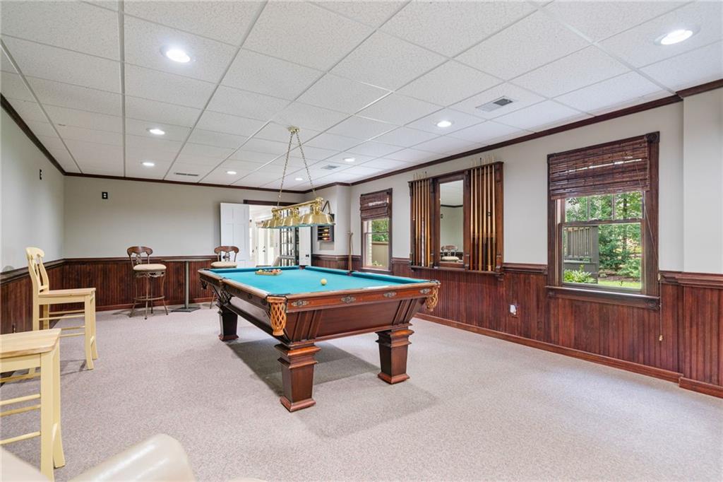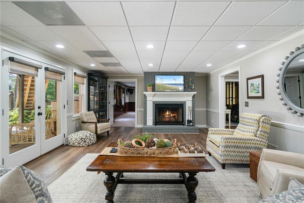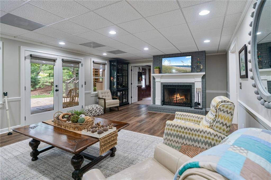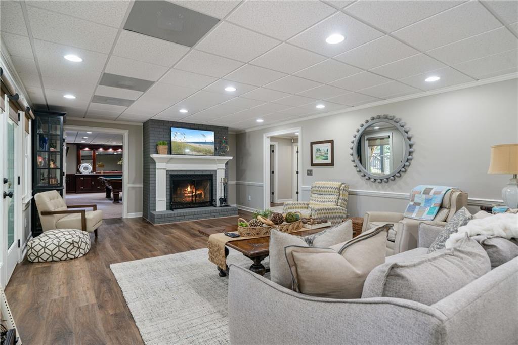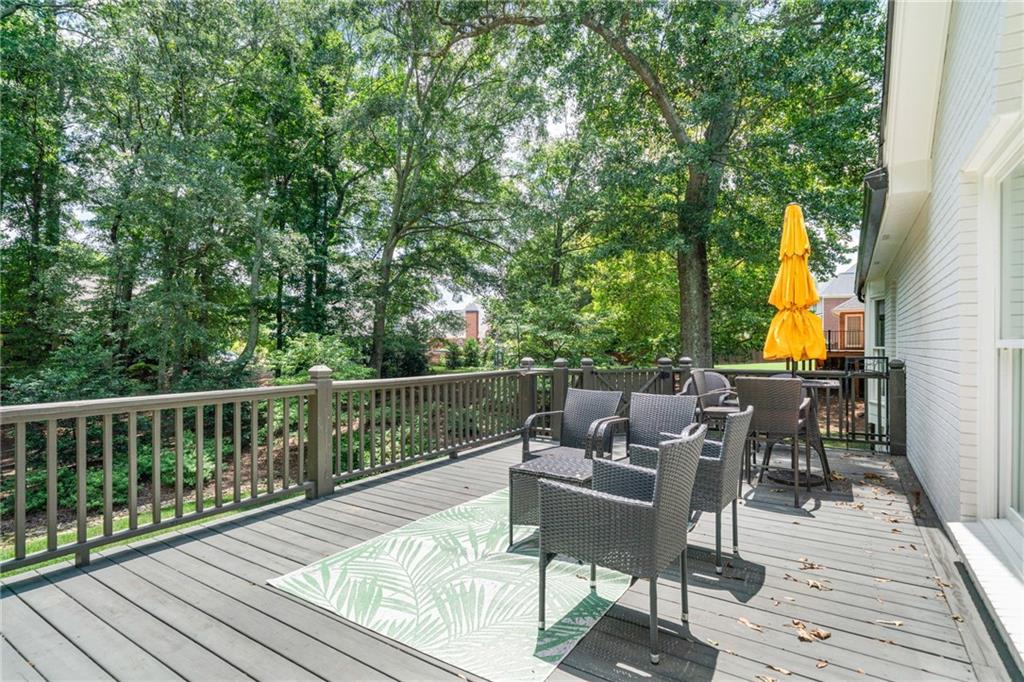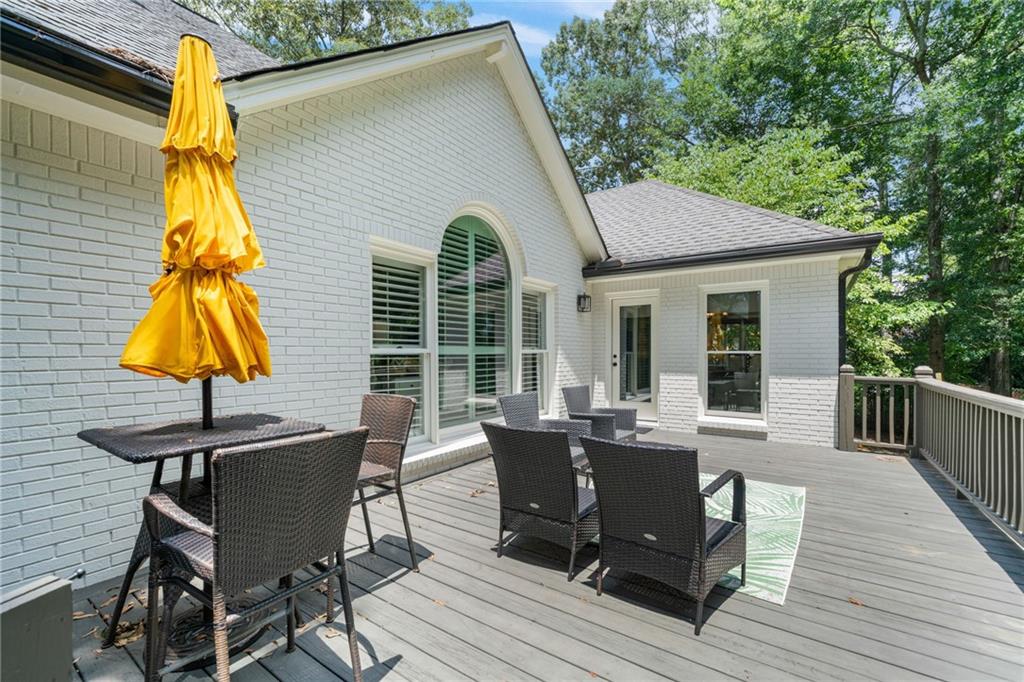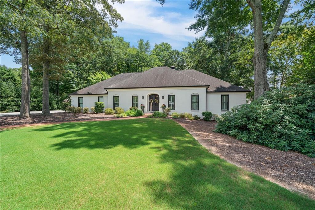 Beautifully renovated 4 sides brick Ranch home with full, finished terrace level and plenty of storage space, located in popular Polo Golf & Country Club! Open concept living area with large picture windows, creating spaciousness and beautiful views of the professional landscaped back yard and oversized deck. Hardwoods throughout the main level, with built-in bookcase and wet bar, over-sized separate formal dining room, crown molding throughout; plantation shutters and wood blinds. Large master suite with dual closets and spa bath, plus two additional spacious bedrooms on the main level, all with custom, functional closets! Terrace level features a family room with fireplace, a bedroom with large walk-in closet, full bath, game room with pool table (that stays), lots of storage space, and opens up to the back yard. Home also features a gorgeous custom front door and entrance foyer, and with a new epoxy finish on the side entry garage floor, plus the level yard features an attractive, spacious driveway. Take your golf cart or walk to the nearby clubhouse amenities (with membership options) that include golf, swimming pool, fitness center, basketball, tennis, pickleball, and a restaurant...or to nearby Vickery Village that includes a selection of restaurants and a YMCA. Highly rated Forsyth County schools, and convenient to Cumming City Center, the Collection, Halcyon, Fowler Park, and with the Big Creek Greenway just outside the neighborhood for walking, running, and biking.
