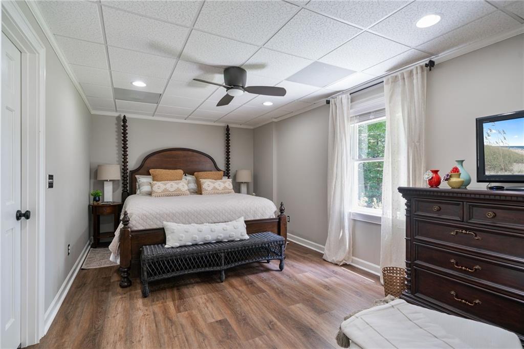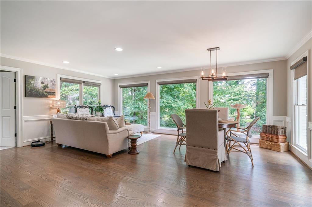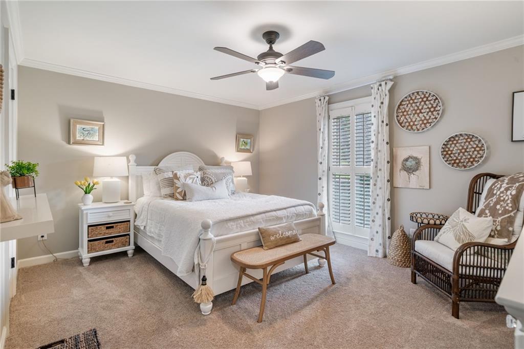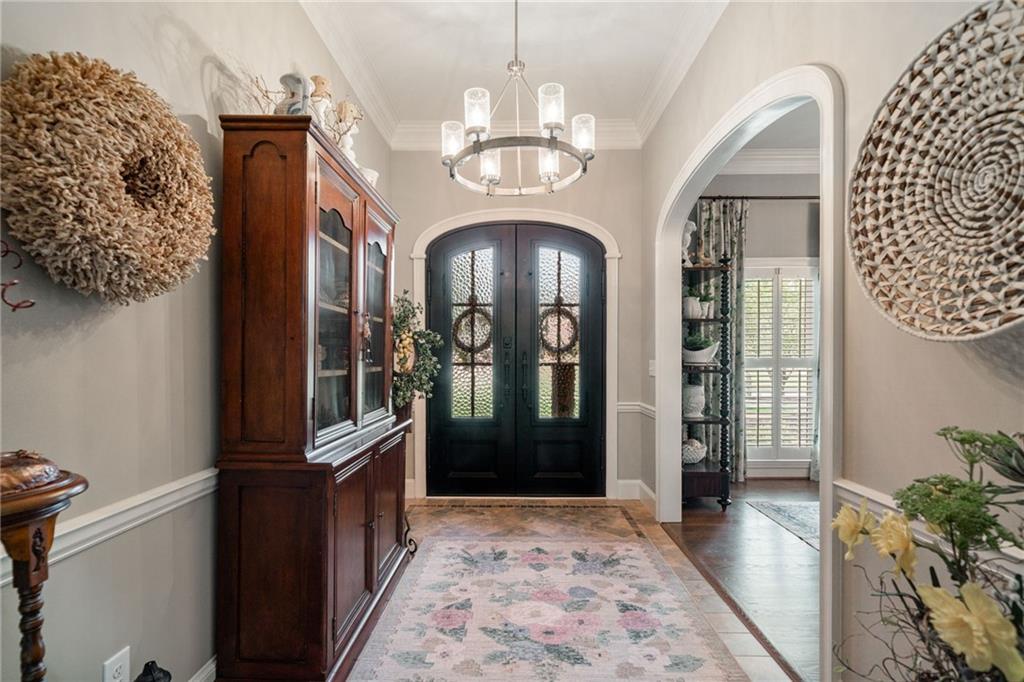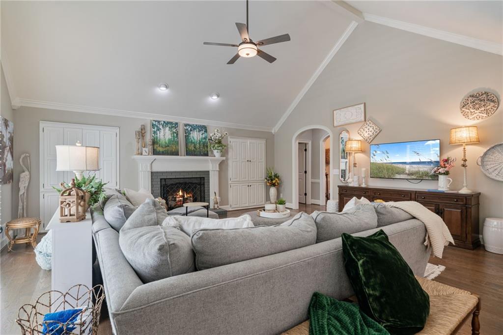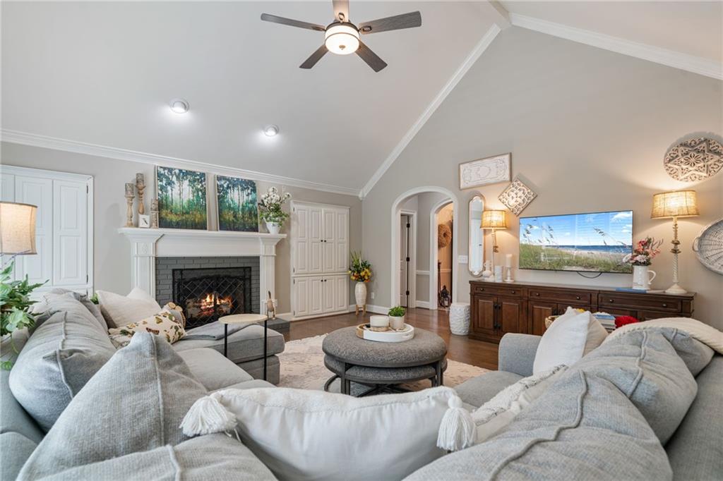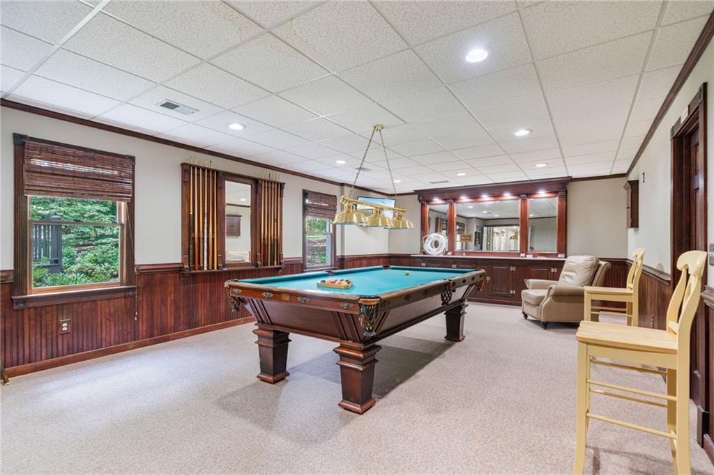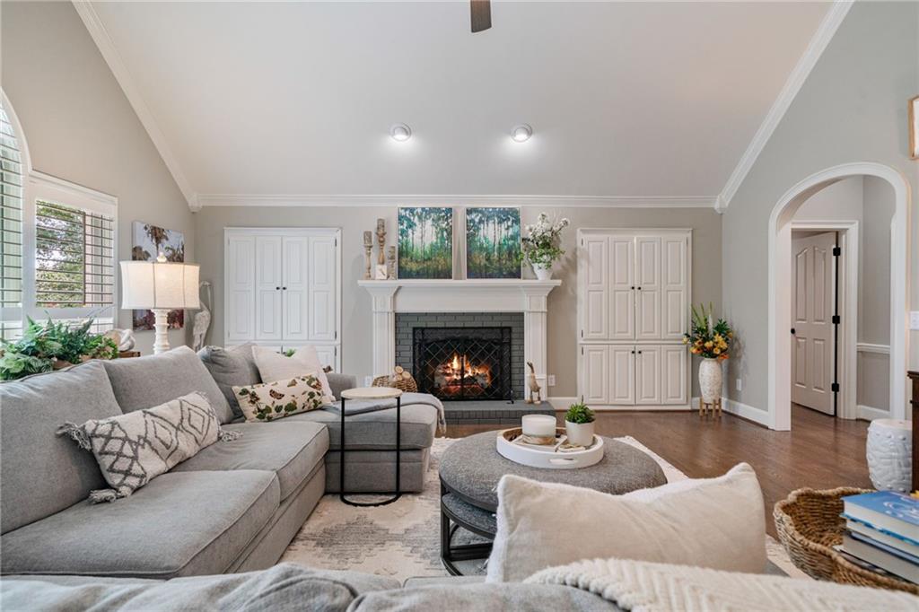 Beautifully renovated 4 sides brick Ranch home with full, finished terrace level and plenty of storage space, located in popular Polo Golf & Country Club! Open concept living area with large picture windows, creating spaciousness and beautiful views of the professional landscaped back yard and oversized deck. Hardwoods throughout the main level, with built-in bookcase and wet bar, over-sized separate formal dining room, crown molding throughout; plantation shutters and wood blinds. Large master suite with dual closets and spa bath, plus two additional spacious bedrooms on the main level, all with custom, functional closets! Terrace level features a family room with fireplace, a bedroom with large walk-in closet, full bath, game room with pool table (that stays), lots of storage space, and opens up to the back yard. Home also features a gorgeous custom front door and entrance foyer, and with a new epoxy finish on the side entry garage floor, plus the level yard features an attractive, spacious driveway. Take your golf cart or walk to the nearby clubhouse amenities (with membership options) that include golf, swimming pool, fitness center, basketball, tennis, pickleball, and a restaurant...or to nearby Vickery Village that includes a selection of restaurants and a YMCA. Highly rated Forsyth County schools, and convenient to Cumming City Center, the Collection, Halcyon, Fowler Park, and with the Big Creek Greenway just outside the neighborhood for walking, running, and biking.