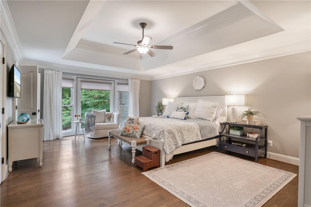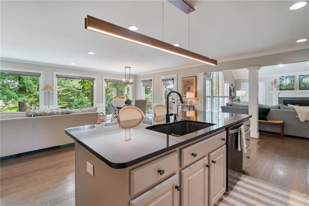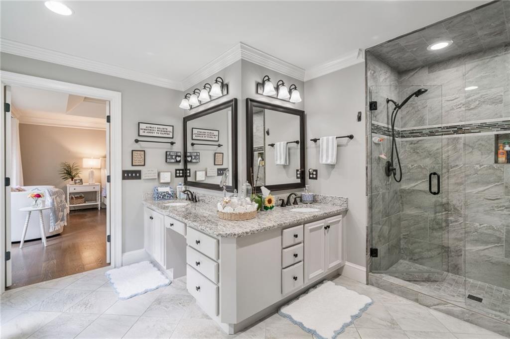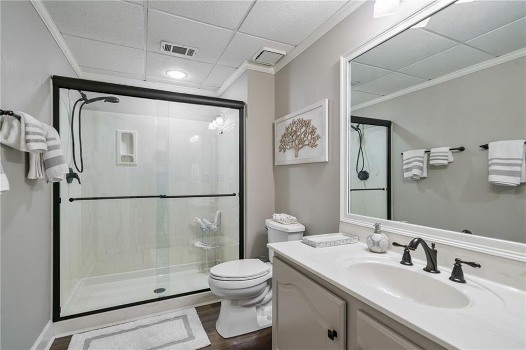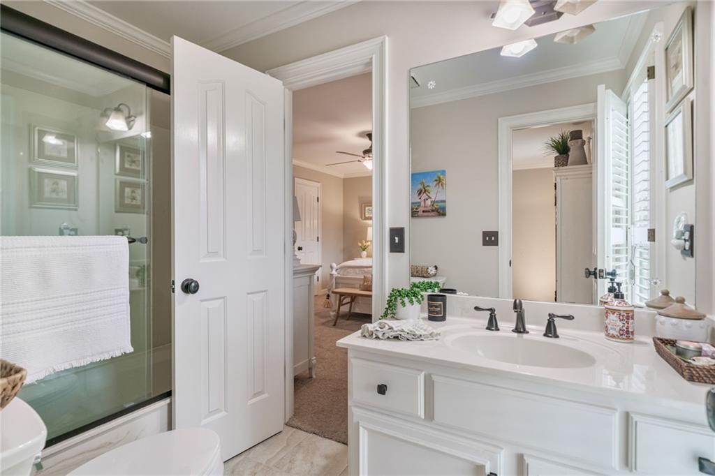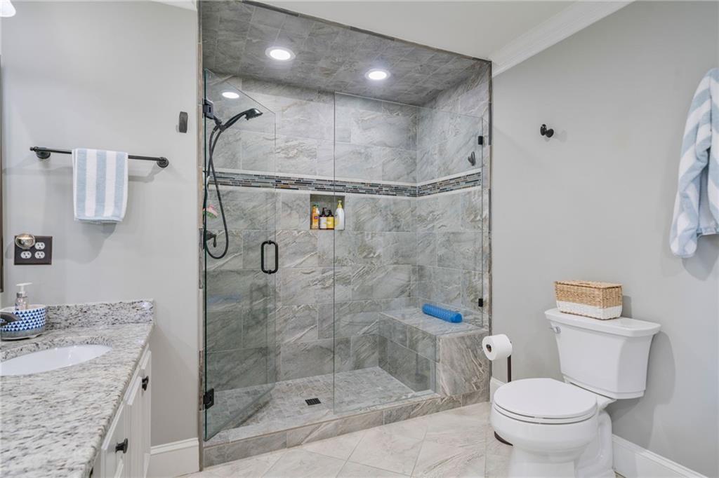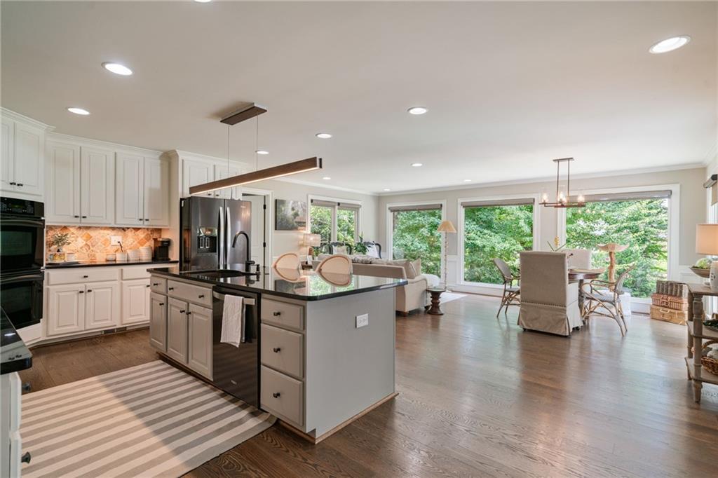 Beautifully renovated 4 sides brick Ranch home with full, finished terrace level and plenty of storage space, located in popular Polo Golf & Country Club! Open concept living area with large picture windows, creating spaciousness and beautiful views of the professional landscaped back yard and oversized deck. Hardwoods throughout the main level, with built-in bookcase and wet bar, over-sized separate formal dining room, crown molding throughout; plantation shutters and wood blinds. Large master suite with dual closets and spa bath, plus two additional spacious bedrooms on the main level, all with custom, functional closets! Terrace level features a family room with fireplace, a bedroom with large walk-in closet, full bath, game room with pool table (that stays), lots of storage space, and opens up to the back yard. Home also features a gorgeous custom front door and entrance foyer, and with a new epoxy finish on the side entry garage floor, plus the level yard features an attractive, spacious driveway. Take your golf cart or walk to the nearby clubhouse amenities (with membership options) that include golf, swimming pool, fitness center, basketball, tennis, pickleball, and a restaurant...or to nearby Vickery Village that includes a selection of restaurants and a YMCA. Highly rated Forsyth County schools, and convenient to Cumming City Center, the Collection, Halcyon, Fowler Park, and with the Big Creek Greenway just outside the neighborhood for walking, running, and biking.