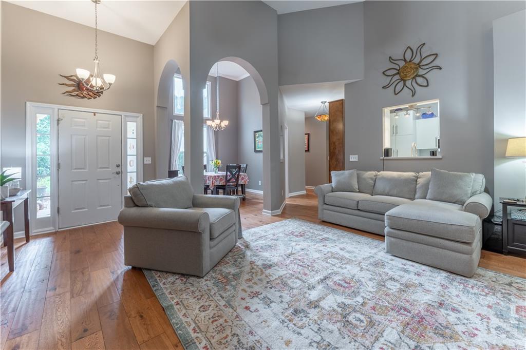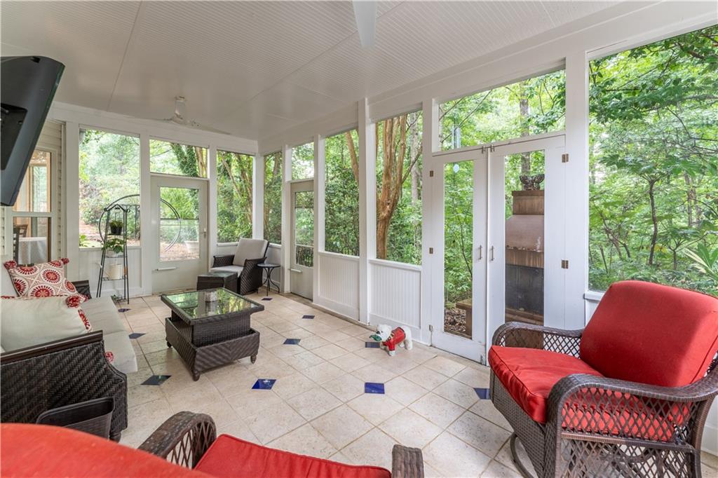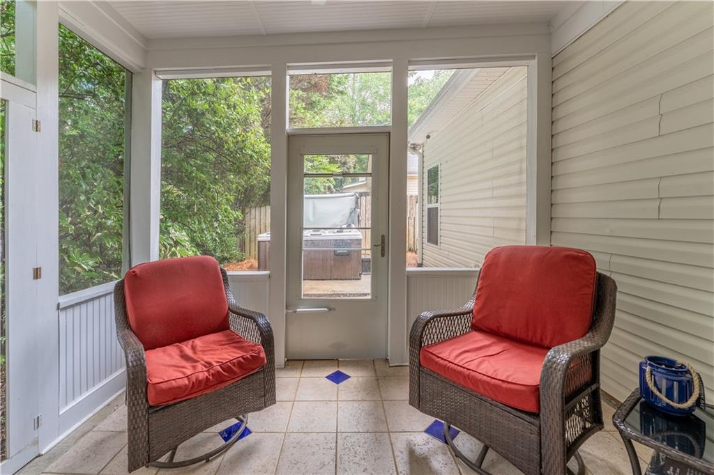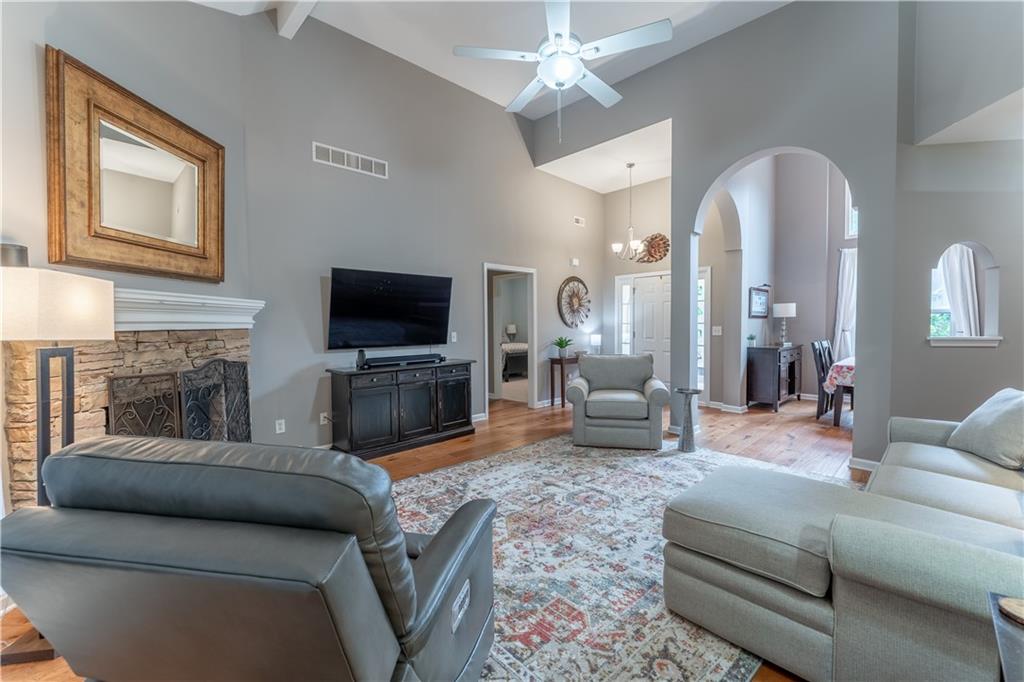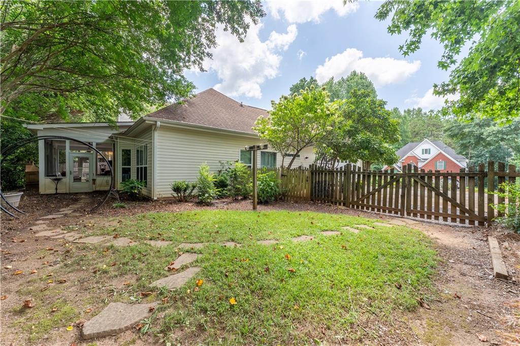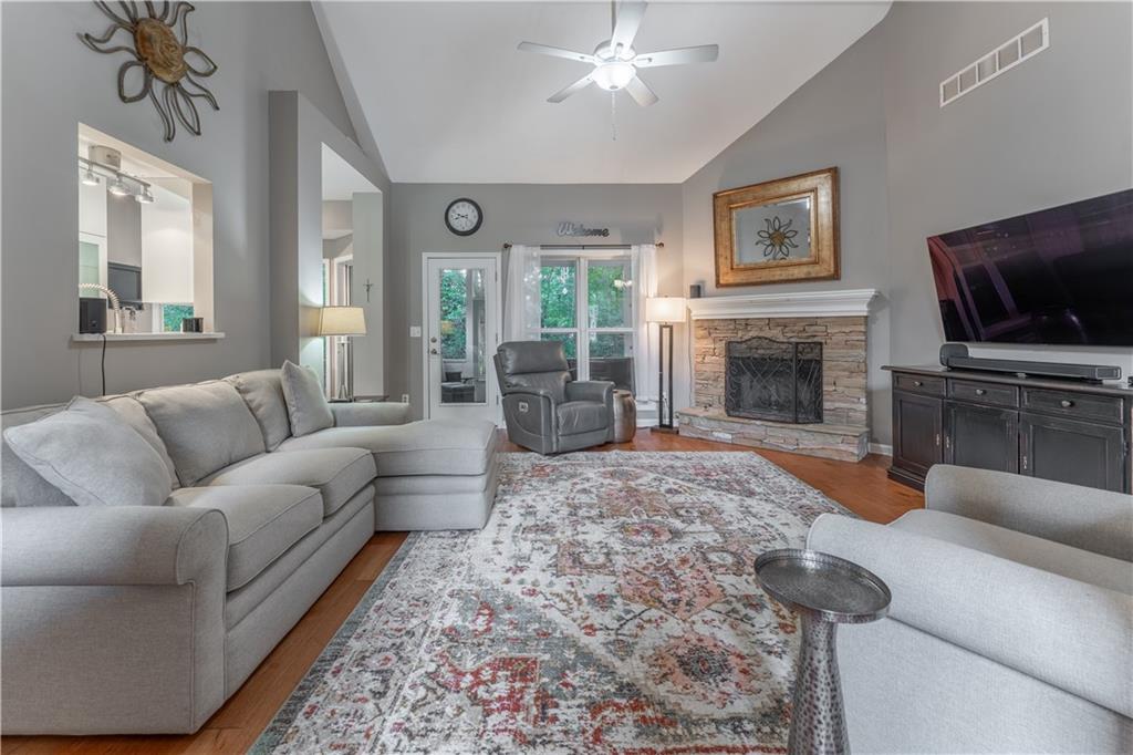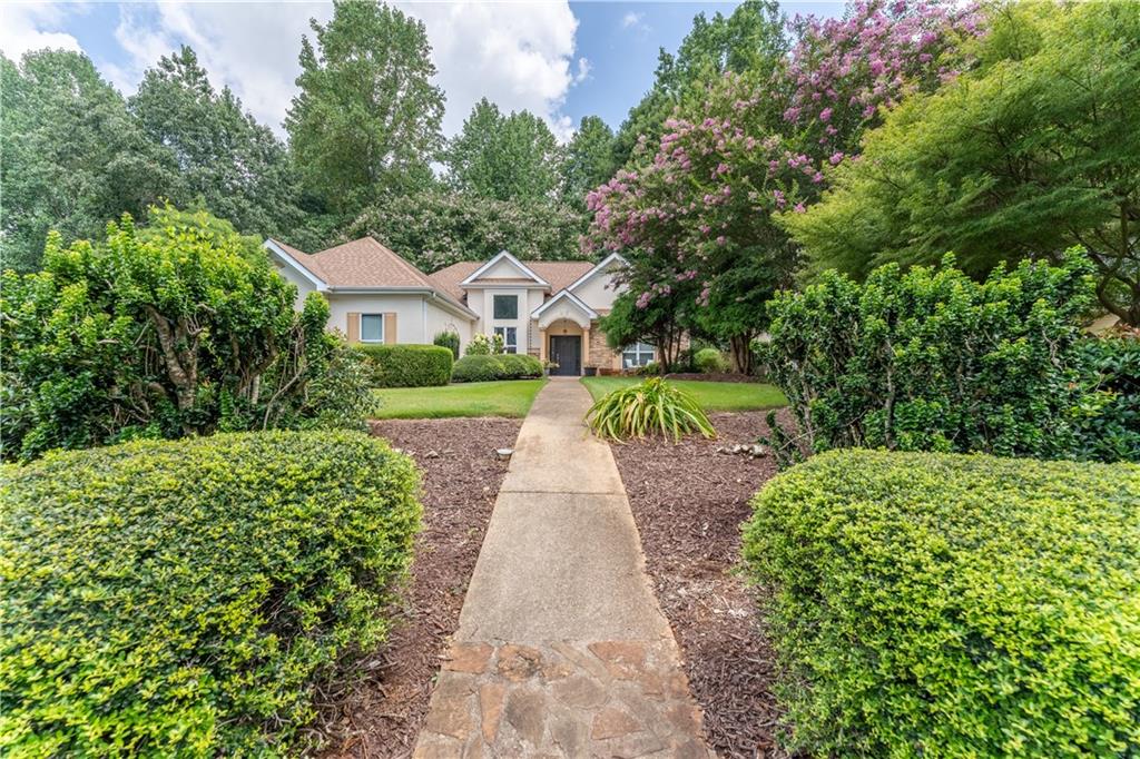 Welcome to this beautiful, stepless Ranch home featuring a split bedroom floor plan and located in one of the best-established neighborhoods Flowery Branch has to offer! Partially open concept, wood burning, stacked stone fireplace with gas starter, separate dining room, large owner's suite with custom closet and a spa-like bathroom that boasts a separate floor to ceiling walk-in, tiled shower and huge soaking tub. In addition, enjoy those cool evenings this fall relaxing in your hot tub, privately located off the screened-in "game day" porch. A gorgeously landscaped yard with lots of privacy in both the front and back create the perfect spot for morning coffee or evening chats with friends and family. Walk the almost three miles of paved walking trails that meander through the woods and alongside the neighborhood's three lakes, tennis/pickleball court, basketball area, playground and swimming pool/club house. Great school district and centrally located to shops, grocery stores, restaurants, library, parks, Lake Lanier (just minutes away) and many different places of worship to choose from. Come take a look for yourself and put your happy house hunting days to an end!