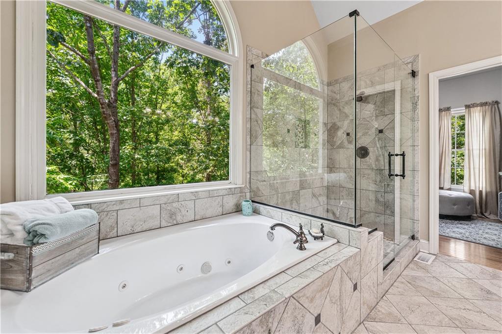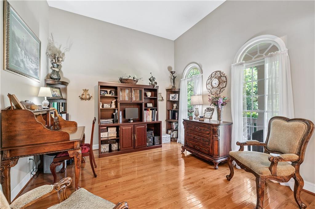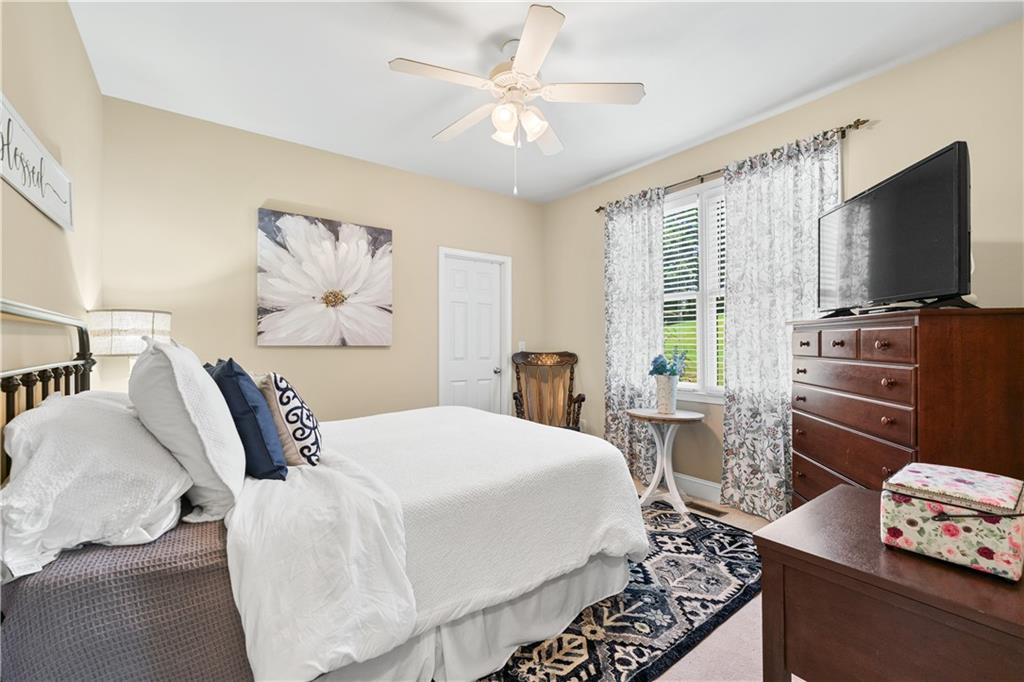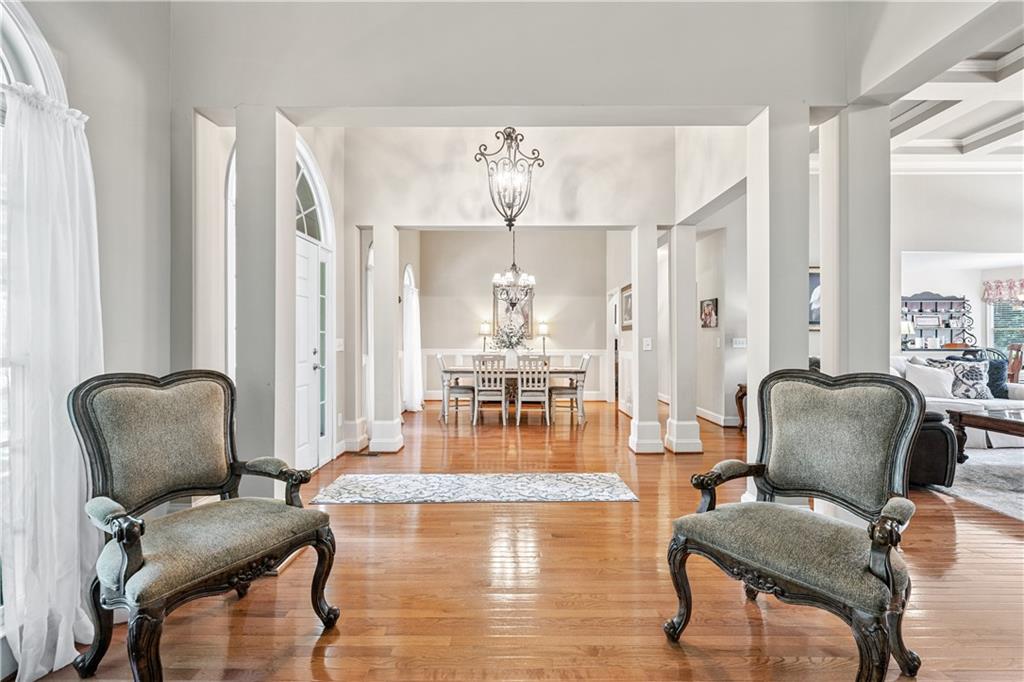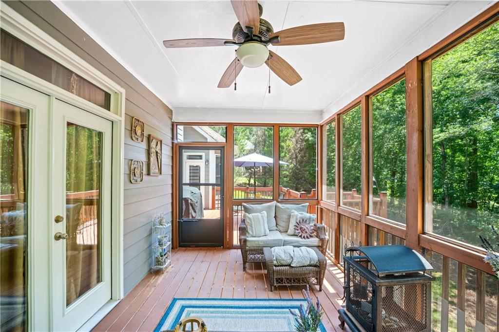 Welcome home to this custom-built 4-bedroom, 3.5-bath, one-owner ranch on a full, unfinished daylight basement situated on a large estate lot backing up to Lake Allatoona. You can walk to the lake and it's only 1 mile to the beach and boat access!! This home features a separate dining room, office/formal living room, and family room with soaring gorgeous coffered ceilings and a stone fireplace, open to a breakfast room and gourmet kitchen with granite countertops, stainless steel appliances, and plenty of storage. The primary suite on the main includes a vaulted tray ceiling and a beautifully updated ensuite bath with double vanity, separate whirlpool tub, glass shower, and a large closet. A sun porch/screened porch and sundeck are just off the master. Two additional bedrooms and a full bath are on the main floor and the fourth bedroom and full bath are upstairs, along with easy attic storage access. Access to the upstairs bedroom is just off the laundry area where a private staircase leads up. The main-level laundry room includes a sink and built-in cabinetry for added convenience. An extra-large two-car garage with side entry door offers easy access, and ample driveway parking offers convenience for family and guests. Additional features include hardwood floors, beautiful crown molding, plus a LARGE unfinished basement stubbed for a bath with a fantastic layout for future finishing. The basement also features two sets of French doors and two breaker boxes. Privately situated on a manicured lot with mature trees and a welcoming rocking chair front porch, this home is just minutes from Lake Allatoona, Sweetwater Creek State Park, and all the amenities Cherokee County has to offer.