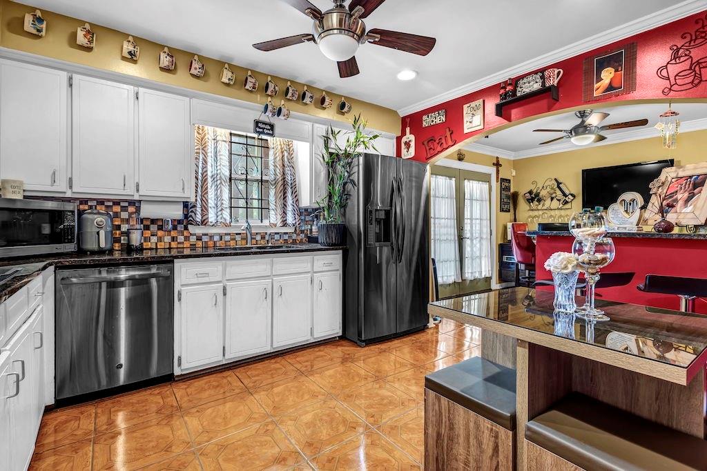 - KitchenBreakfast Bar, Cabinets White, Pantry, View to Family Room