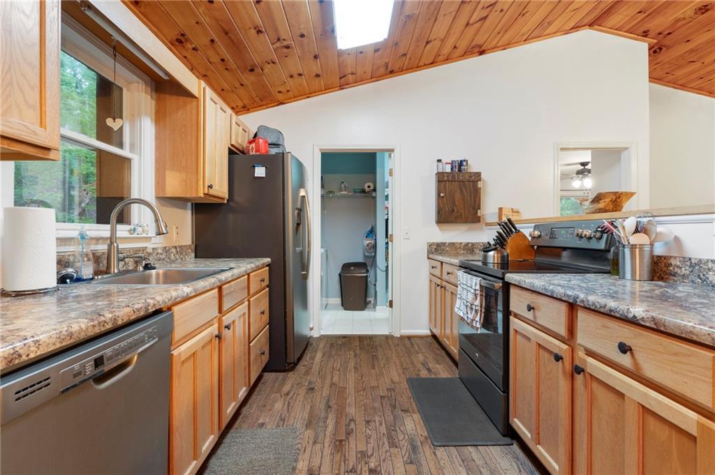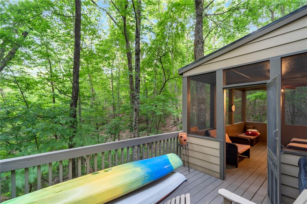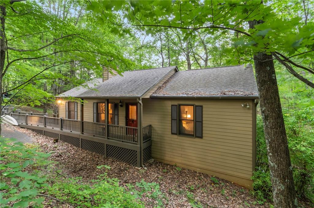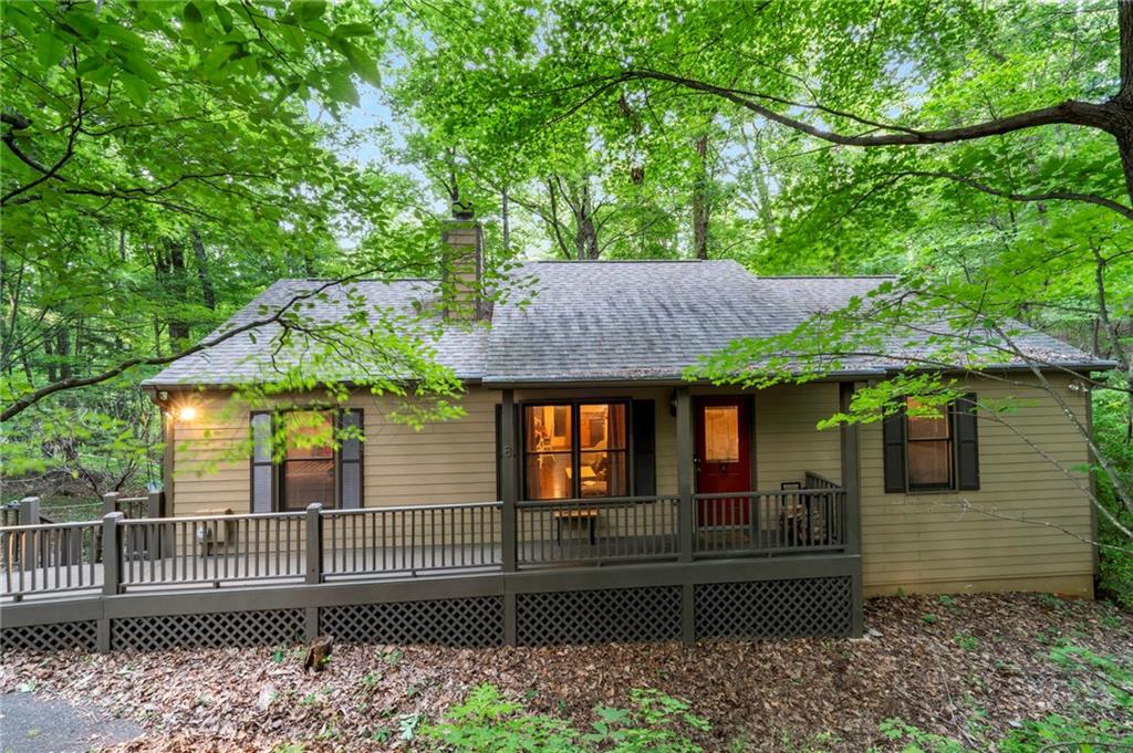 THIS CHARMING COTTAGE HOME OFFERS 5 BR'S AND 3 FULL BATHS, AN OPEN FLOORPLAN WITH HARDWOOD FLOORS AND T&G CATHEDRAL WOOD CEILING IN THE MAIN LIVING AREA. STACKED STONE FIREPLACE, BRAND NEW QUARTZ COUNTERTOPS WITH STANDARD TABLE HEIGHTH PLUS A NEW RANGE WITH WOOD KITCHEN CABINETS, WALKIN PANTRY LOCATED INSIDE THE LAUNDRY ROOM. MASTER B/R SUITE WITH SPLIT PLAN WHICH INCLUDES TWO OTHER BEDROOMS WITH SHARED FULL BATH ACCESS LOCATED, ALL OF WHICH ARE LOCATED ON THE MAIN LEVEL. ON THE TERRACE LEVEL IS AN EXPANSIVE FAMILY ROOM WITH TILE FOORS, 2 ADDITONAL BEDROOMS ALTHOUGH ONE IS CURRENTLY BEING USED AS A MUSIC ROOM/STUDIO, AND BOTH HAVE DIRECT ACCESS ONE LARGE FULL BATH PLUS TWO SEPARATE STORAGE ROOMS. TILE FLOORING DOWNSTAIRS, SCREEN PORCH ADDITION ON THE MAIN LEVEL WAS ADDED IN LAST 4 YEARS, MASTER BATH VANITY AND TILE FLOORING ADDED, THE ROOF AND HVAC SYSTEM WERE REPLACED 5 YEARS AGO IN 2020. HARDI-BOARD EXTERIOR SIDING, ZERO ENTRY (NO STEPS) FRONT PORCH WITH SCREEN PORH PLUS AN OPEN DECK ON THE MAIN LEVEL, AND A LARGE COVERED PORCH ON THE TERRACE LEVEL. THE BACKYARD SETTING IS PRIVATE AND ENJOYS A YEAR RUNNING STREAM PLUS A LEVEL DRIVEWAY THAT CAN EASILY ACCOMMODATE EITHER A CARPORT/2 OR GARAGE/2 IF SO DESIRED. TRULY AN OUTSTANDING VALUE FOR BIG CANOE, AND WELL WORTH CHECKING OUT!