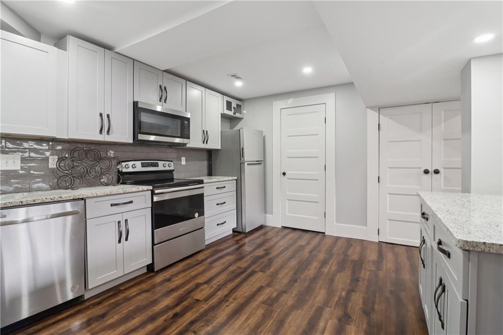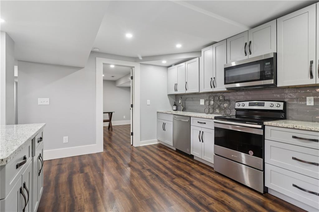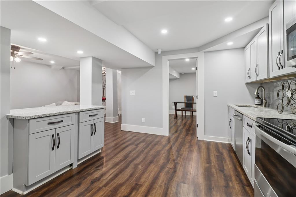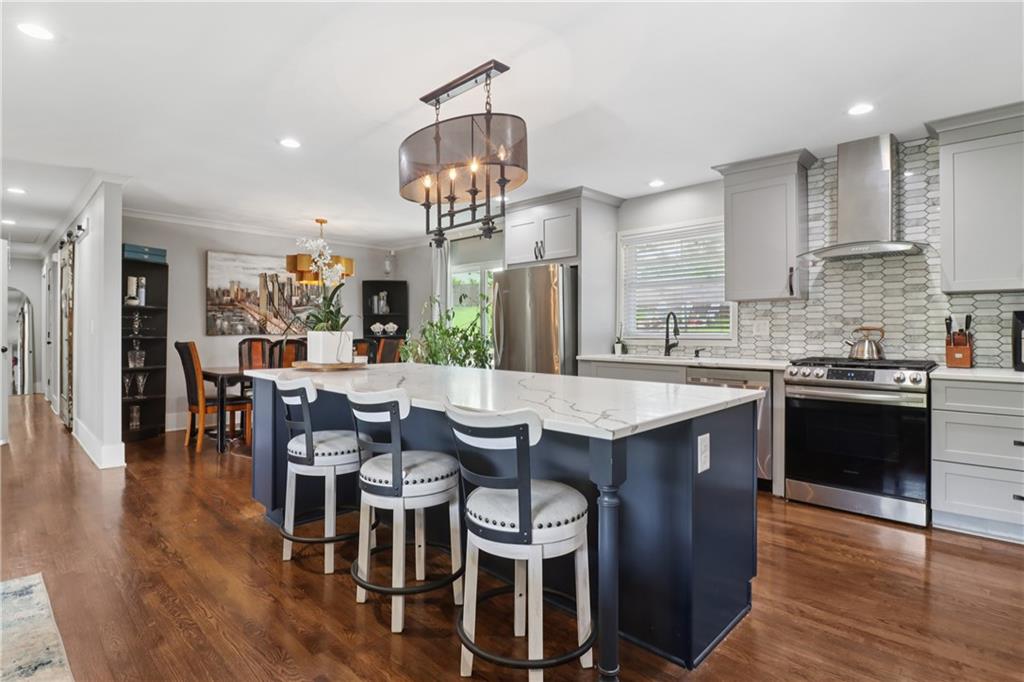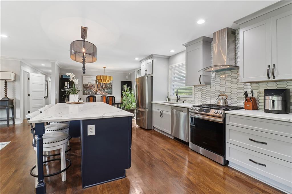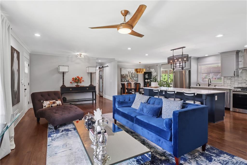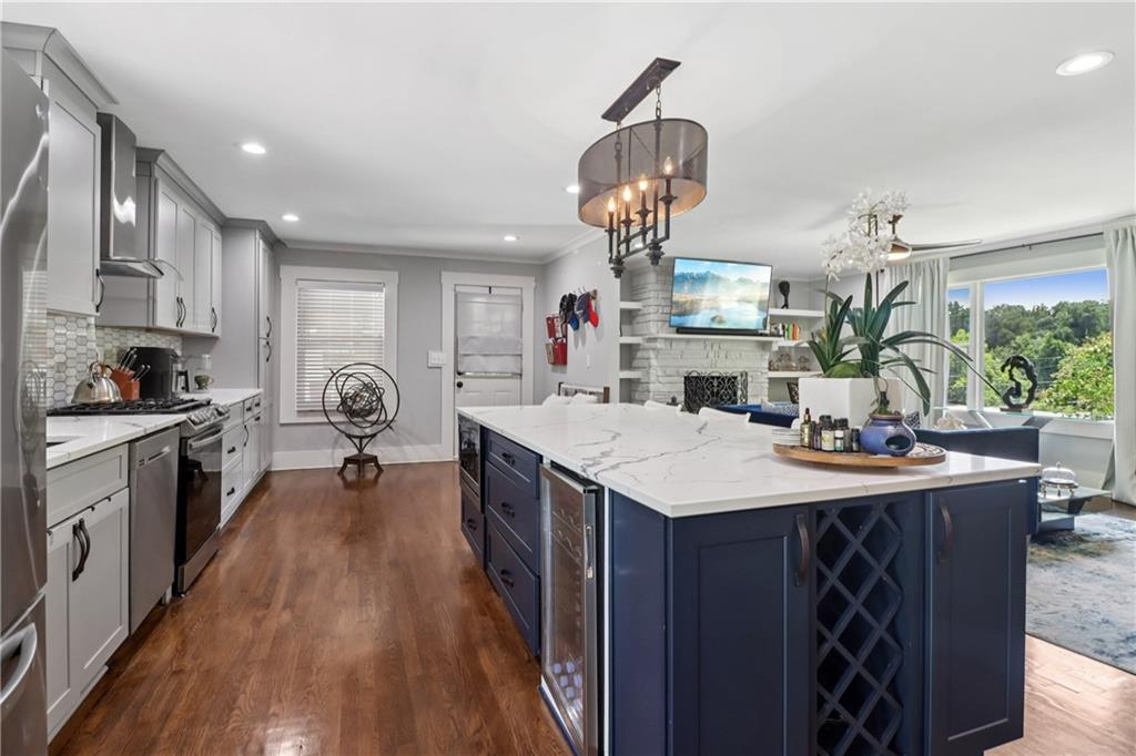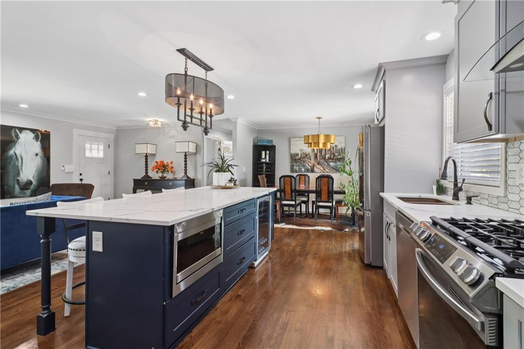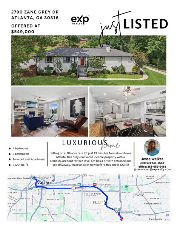 LUXURY, FLEXIBILITY & BELOW-MARKET VALUE Now offered at $539,000, this fully renovated all-brick ranch delivers high-end design, unbeatable flexibility, and serious financial perks — all just 14 minutes from Mercedes-Benz Stadium. Perfect for multigenerational living or generating extra income, this home features a stylish main level and a full private-entry terrace apartment, complete with its own driveway, kitchen, living room, bedroom, bath, laundry, and bonus room. Whether you need space for extended family, an Airbnb, or long-term rental, this home pays you back. The main level is a showstopper: gleaming hardwood floors, designer crown molding, and a chef’s kitchen with a 9-foot quartz island, copper sink, wine fridge, and custom cabinetry. A light-filled living room with a statement fireplace and built-ins creates the perfect entertaining space, while oversized bedrooms and spa-inspired baths add comfort and elegance. Here’s where it gets even better: Priced below Movoto’s estimate of $587,000 — instant built-in equity. Qualifies for the Truist $10,000 grant — no income limits. Only 3% down with NO mortgage insurance — save thousands over the life of your loan. This is more than a home — it’s a lifestyle and an opportunity. Schedule your showing today before it’s gone.