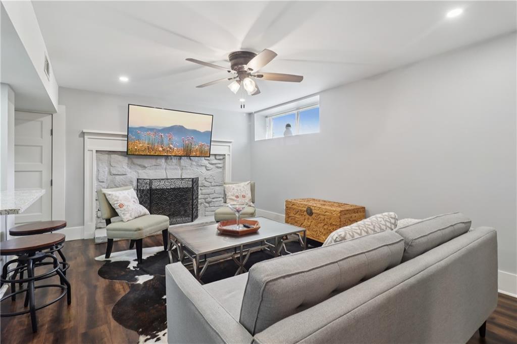 - Fireplace DescriptionBasement, Family Room, Fire Pit, Living Room, Stone