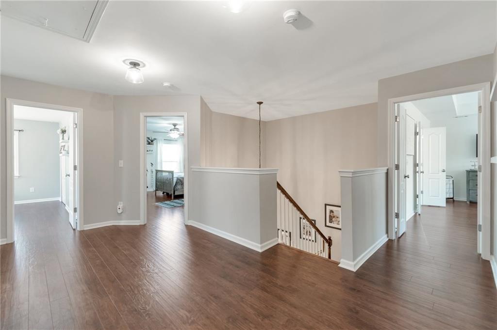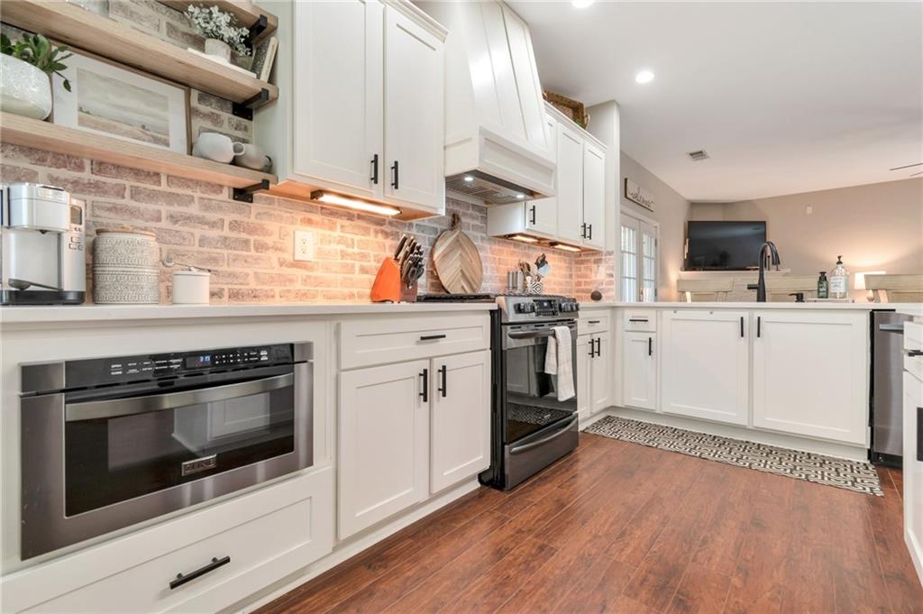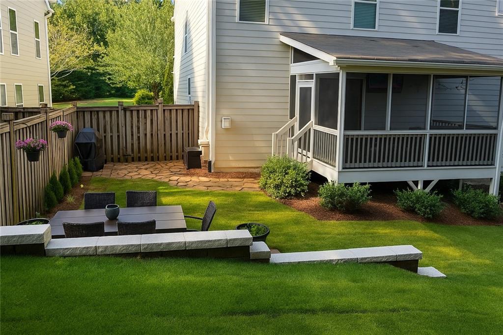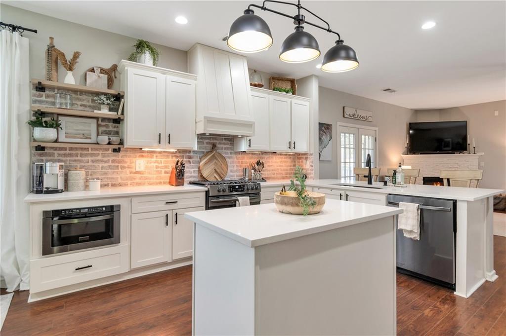 Welcome to your dream home in the sought-after Wild Meadows community! Nearly every inch of this beautiful North-facing property has been thoughtfully updated, offering the perfect blend of modern finishes and functional space. Step into the heart of the home—this fully updated kitchen is a true showstopper. Classic white shaker cabinets with pull-out shelves provide smart, functional storage, while bold black stainless steel appliances—including a sleek microwave drawer—add a striking modern edge. Elegant quartz countertops pair beautifully with a German schmeared brick backsplash and a custom vent hood, adding both character and craftsmanship. Warm floating wood shelves complete the curated design, blending style and function. The open-concept layout features rich wood floors throughout, seamlessly connecting the kitchen to a spacious family room with a stone gas fireplace—perfect for entertaining or relaxing evenings. A versatile front room adds flexibility to the floorplan, ideal for a home office, playroom, or study. Upstairs, you’ll find four generous bedrooms, including an oversized primary suite with a tranquil sitting area. The fully renovated primary bathroom boasts dual vanities with quartz countertops, a large frameless rain shower, large cumstomized closet and thoughtful upgrades throughout. Enjoy the outdoors from your screened-in back porch—perfect for gatherings in the privacy of your fenced backyard. The backyard has been beautifully refreshed with brand-new sod and new landscaping, creating a lush and inviting outdoor space. Updated lighting—inside and out—adds even more charm and curb appeal. Nestled on a private lot with no neighbors to the left or across the street, this home offers a rare blend of seclusion, serenity, and comfort. Need space for hobbies or storage? The full walkout basement offers 1,420 square feet of potential, already stubbed for a bathroom and ready for you to finish to your needs. It includes abundant organized storage and a dedicated woodworking shop with a 220V line, workbench, and pegboard—ideal for handymen, DIYers, or tinkerers. You'll also find a spacious semi-finished room, perfect as a kids' playroom, home gym, or casual hangout space for adults. Located just a short walk to the community pool, tennis courts, playground, and basketball court, this home offers unbeatable lifestyle and convenience. You’re just minutes from GA 400, the North Georgia Premium Outlets, Lake Lanier, top-rated schools, restaurants, beautiful local parks , AND the new Coal Mountain Town Center development! Don’t miss your chance to own this exceptional home!