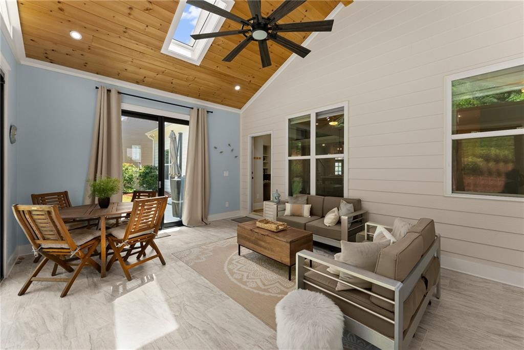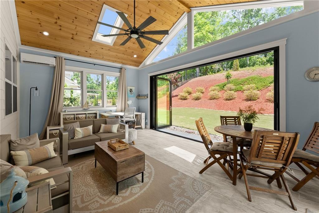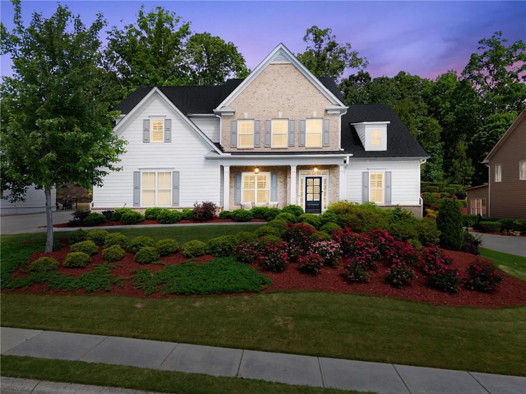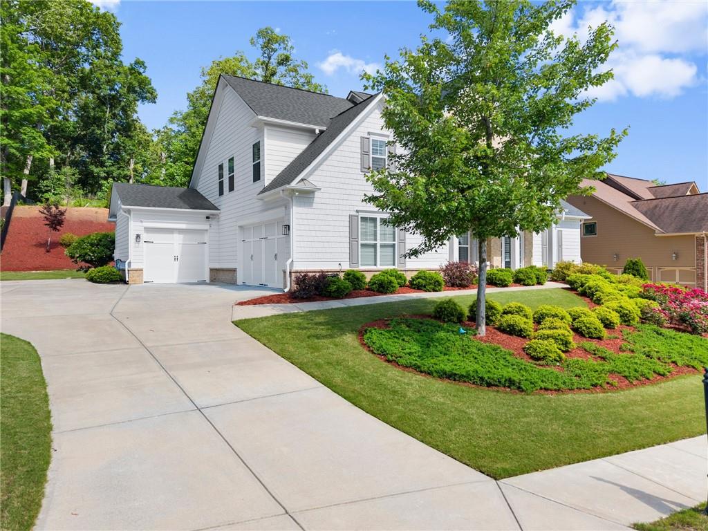 BRING AN OFFER! This home is an elegant 5 bedroom 4.5 bath home tucked within the sought after gated community of St. Michael's Bay on Lake Lanier. Built in 2018, this former model home has all of the upgrades one would want with modern comfort, beautiful landscaping and a 300 square foot addition added on the back of the home to enjoy all 4 seasons with it's own heating/cooling and WINDOWS GALORE with MASSIVE SLIDER DOORS TO BRING THE OUTDOORS INSIDE! The stunning main level is open concept anchored by a two story great room with built in shelving surrounding the cozy fireplace. Chef's kitchen features a massive island with sleek quartz countertops and bright white cabinetry perfect for entertaining or family nights in. Enjoy the convenience of a main level owner's suite with soaring ceilings, spa like bath with double vanities, soaking tub and separate shower. A second ensuite bathroom also is on the main level large enough for a king bed! Laundry with sink and mudroom finish out the main. Upstairs includes 3 more very large bedrooms and 2 bathrooms, one being in between two bedrooms (jack and jill bathroom) and the other one being inside the 3rd bedroom. Lots of attic and closet space for all of your storage needs! Last but not least are the beautiful outdoor areas including a welcoming front porch and again, a FOUR SEASON ROOM with it's own HVAC system, high quality slider glass doors to open up, skylight windows, tongue and groove ceiling that leads to the backyard that is larger than it looks! The lot keeps going further back! It's the PERFECT SPACE to entertain, relax and bring the outdoors INSIDE. St. Michaels Bay amenities are second to none with a resort style pool, pickleball court, tennis court, access to Lake Lanier to fish, swim, or pull your boat up temporarily. This property is the PERFECT BLEND of Lake Life and neighborhood life with a home that has it all!
