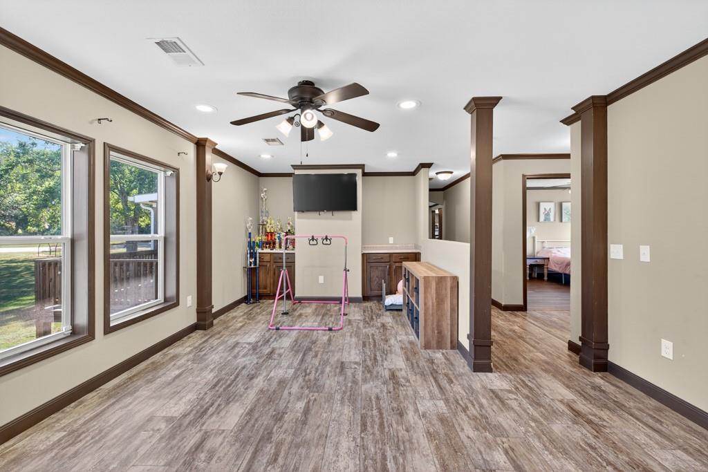 - FeaturesBeamed Ceilings, Bookcases, Crown Molding, Double Vanity, Entrance Foyer, Recessed Lighting, Walk-In Closet(s)