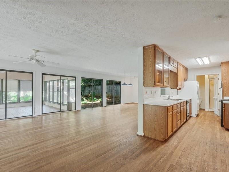 - KitchenCabinets Stain, Eat-in Kitchen, Laminate Counters, View to Family Room