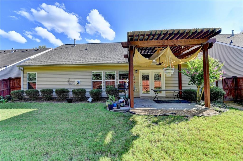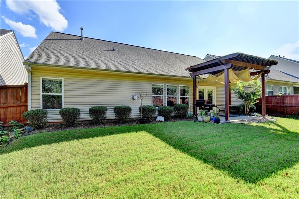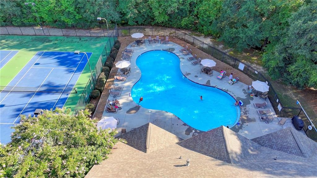 Hard to find Charming Ranch home with perfect lot has been recently updated, Roof 5 yrs, Hot water tank 1 yr, New lightings, New Primary bath shower stall with seating, new Marble counter tops in both bathroom, New high end tile floors fully covered front porch, patio overlooking private level backyard perfect for kids and cookouts, with wonderful neighborhood amenities including pool / tennis court / playground. Open and spacious layout. Minutes to Mall of Georgia & major highway I-85. Top rated Schools. Perfect home! Perfect location.