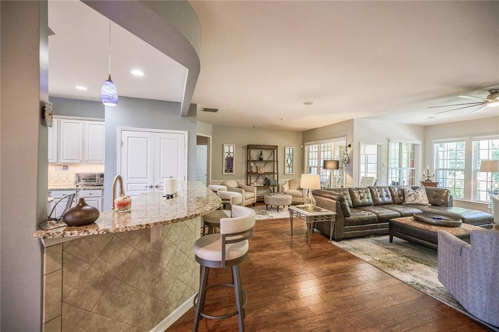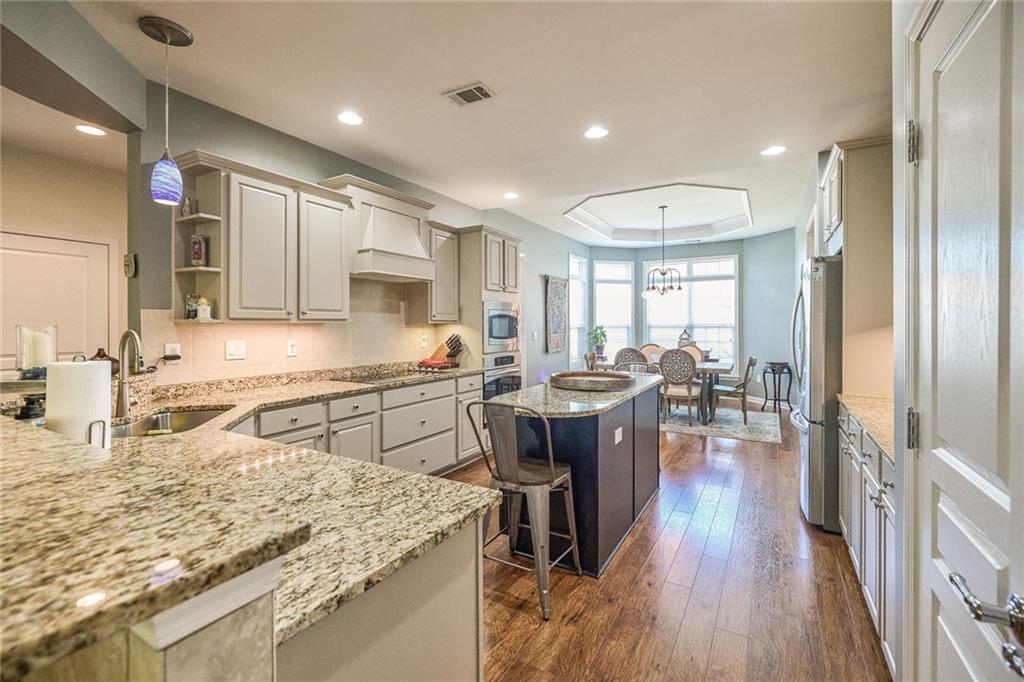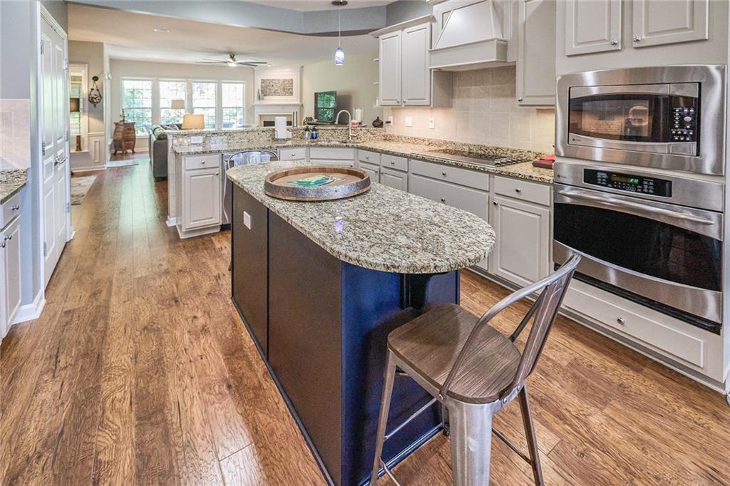 - KitchenBreakfast Bar, Breakfast Room, Eat-in Kitchen, Kitchen Island, Stone Counters, View to Family Room