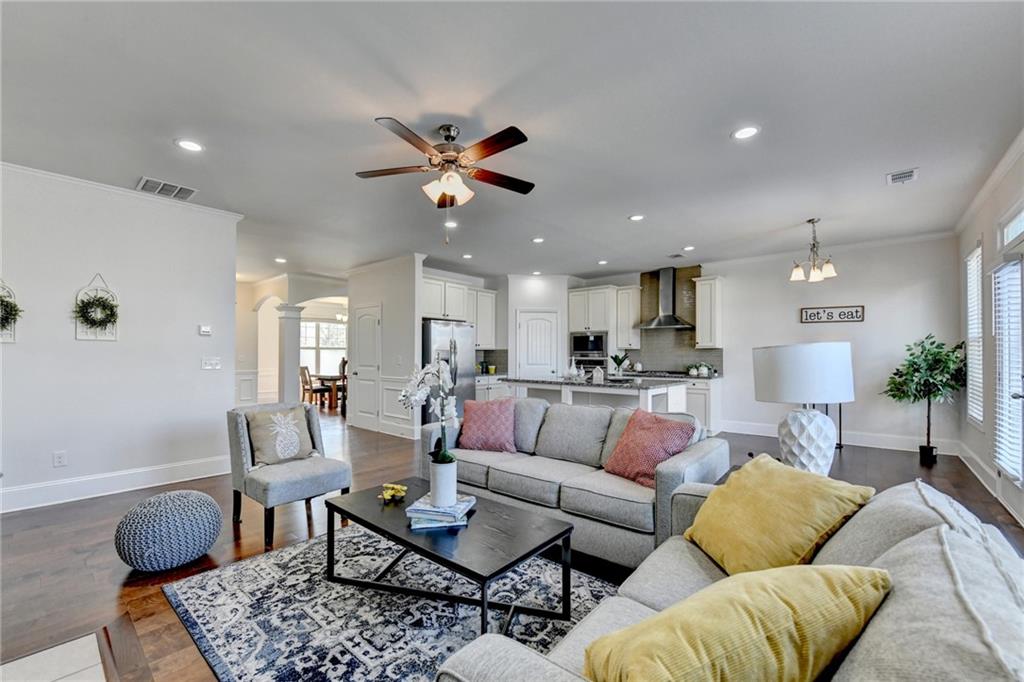 PRICED TO SELL! $38,000 Below Tax Assessment! Don’t miss this exceptional value in the highly sought-after Dave Creek Reserve, where homes rarely come on the market. Welcome to this absolutely stunning three-sided brick home with an unfinished basement, offering the perfect blend of modern elegance and timeless charm. Located in a desirable and family-friendly community, this property boasts curb appeal and interior sophistication. Step through the inviting foyer into a flexible space that can serve as a formal living or dining room—ideal for entertaining. The gourmet kitchen features stained cabinets, granite countertops, tile backsplash, an island, cooktop with vent hood, built-in oven and microwave, and a spacious pantry. The kitchen opens to a bright breakfast area and a large family room filled with natural light from a wall of windows.Enjoy seamless indoor-outdoor living with access to a spacious deck—perfect for evening sunsets and stargazing—overlooking the beautifully landscaped backyard. The main level also offers a guest bedroom and a full bathroom with a tiled standing shower—perfect for visitors or multigenerational living. Upstairs, retreat to the expansive primary suite featuring tray ceilings and a cozy sitting area, perfect for a private lounge or media space. The spa-like en-suite bath includes dual vanities, a garden tub, separate shower, and a large walk-in closet. Three additional generously sized bedrooms, a shared full bath, and a laundry room complete the upper level. Recent upgrades include over $35,000 in luxury vinyl plank (LVP) flooring and fresh interior paint. This home is located in a swim/tennis community with two lighted tennis courts and is zoned for award-winning Forsyth County schools. Conveniently close to The Collection at Forsyth, top-rated restaurants, shopping, Peachtree Parkway, GA-400, and Alpharetta.This is a rare opportunity—schedule your showing today!