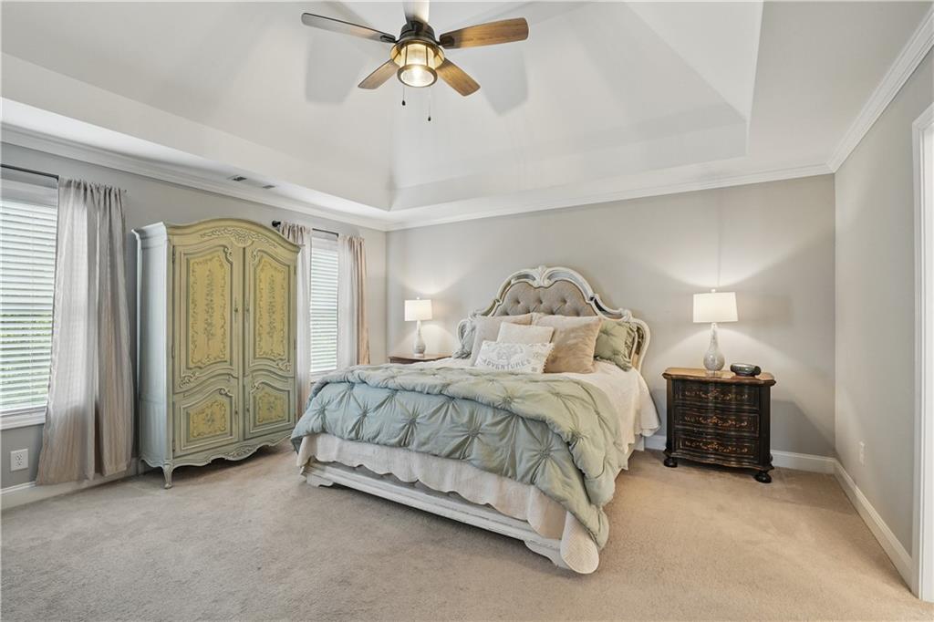 - FeaturesCoffered Ceiling(s), Crown Molding, Entrance Foyer 2 Story, High Ceilings 9 ft Main, Tray Ceiling(s), Walk-In Closet(s)