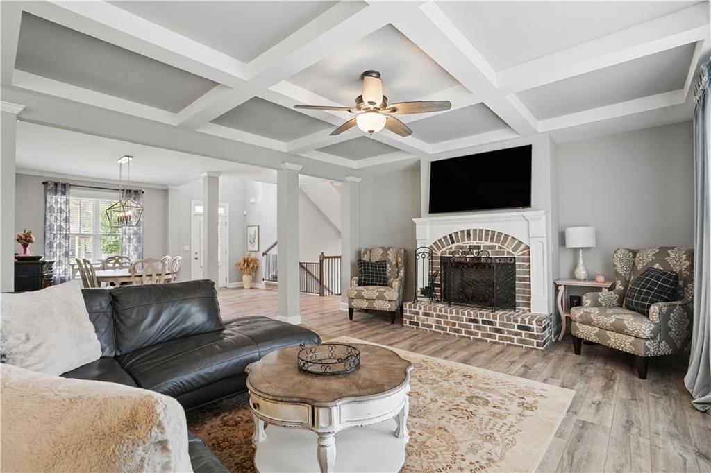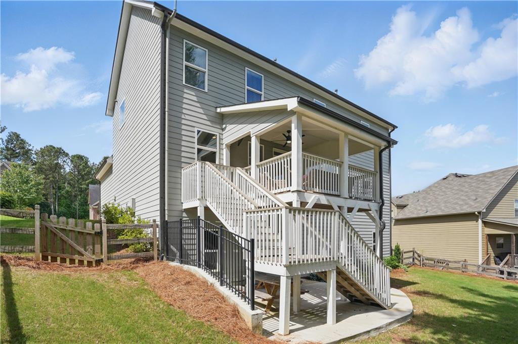 For all intents and purposes, welcome home!! This North Paulding County traditional style home is in search of its next homeowner. Boasting 5 bedrooms, 4 full baths, and sitting on an unfinished, oversized, daylight basement, this home offers room for growth. Enter into the open concept living area overflowing with natural light and neutral tones throughout. Enjoy hosting guests in front of the stone fireplace beneath a coffered ceiling while you prep meals in your kitchen. Have charcuterie trays set up on the oversized island while you chill a bottle of chardonnay in the wine cooler. This kitchen comes complete with a full sized pantry, granite countertops, shaker cabinets, stainless steel appliances, and a separate counter space perfect for a coffee making station or a place to display your favorite bottle of Bourbon. One full bedroom and bathroom are on the main floor, perfect for a home office, playroom, or separate guestroom. Head up the turn style stairs to find a loft space and 4 full bedrooms. A jack and jill bathroom joins 2 of the bedrooms while the final secondary bedroom has its own private bathroom. The primary bedroom offers a tray ceiling, a walk in closet, and an oversized bathroom with dual vanity, a soaking tub, and a standalone shower with dark tiles and a bench. The unfinished basement offers endless possibilities to be finished off or left as-is to build out a home gym, game space, or even just ample storage. Enjoy the sunset on the covered back deck while you enjoy the feel of a cross breeze. Seven Hills subdivision offers resort style amenities like pickleball, tennis, volleyball, and basketball courts, a splash pad, Junior Olympic sized swimming pool, a dog park, clubhouse, playground, a picnic pavilion, and hiking and biking trails throughout the community. Book your tour today!