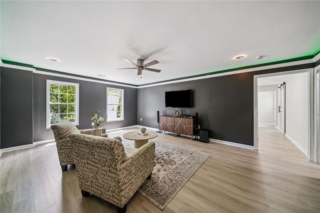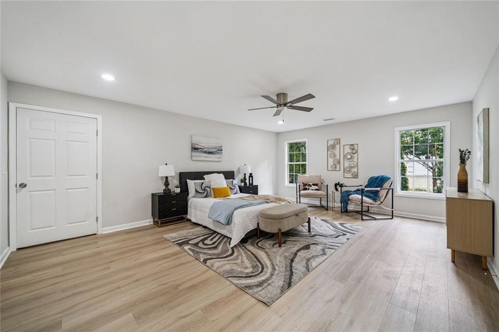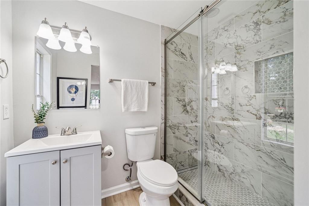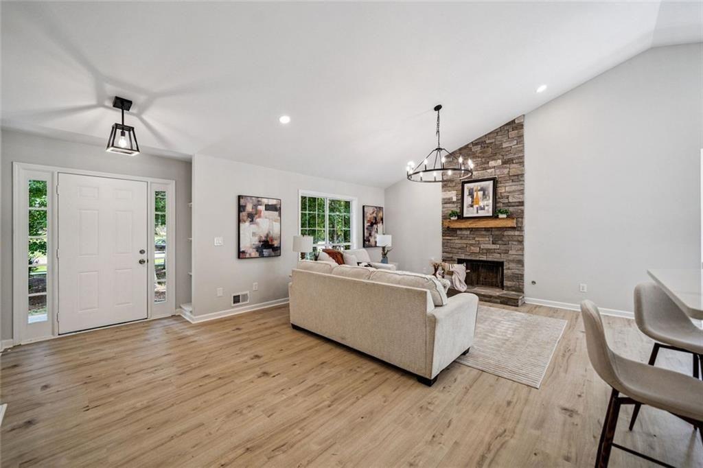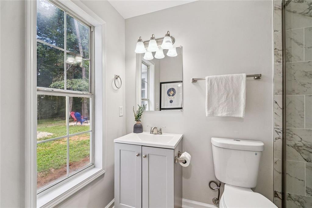 Welcome to 3840 Pilgrim Mill Rd — a completely REMODELED 5-bedroom, 3-bathroom home that’s truly move-in ready. This beautifully updated single-level home features an open-concept kitchen, dining, and family room with recessed lighting and all-new fixtures throughout. Enjoy a brand new ROOF, new flooring, countertops, backsplash, stainless steel appliances, and fresh interior and exterior paint. The spacious primary suite is on the main level, with ensuite bathroom featuring a double vanity, soaking tub and tile shower. Downstairs, a newly finished basement offers a full in-law suite and a custom theater room, perfect for entertaining or multi-generational living. Situated on a large, flat private lot with fresh landscaping, new decking, and a cozy firepit area. Low HOA - Inclusive of Swim and Playground Area. Ideally located just off Exit 16 Pilgrim Mill — minutes from GA-400, Costco, Kroger, Shopping, LAKE LANIER, and lake access/boat ramp at Tidwell Park — this home combines modern updates with unbeatable location and convenience.