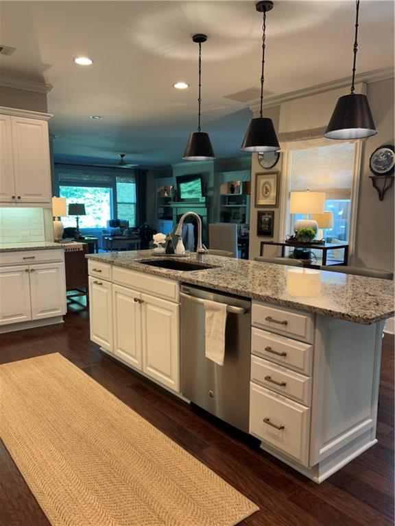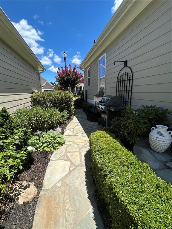 Welcome home, where the community is just beautiful and the living is easy! Tucked away in the most serene setting. Surrounded by established landscapes, this gem is sparkling and ready for a new owner. Built by one of the area's most respected builders, the Carson plan, by Windsong Properties It’s, is the best floor plan for family, guests and even working from home. The facade is deceiving. What appears to be a quaint little cottage truly is such a spacious home. Three bedrooms, each with a full ensuite bath. One is front of the home, one in the upper level and the primary suite has an amazing bathroom and his and her custom closets is nestled in the back. A true retreat away from the rest. The heart of the home is a gorgeous kitchen overlooking the large four-season room and beautifully landscaped custom courtyard, complete with a lovely stone floor, extensive landscaping. Also seen from the kitchen are the open dining and fireside great room with large picture windows on three sides. The owner customized the master bedroom closet in the home, and when you see the PANTRY, you will be done, sold, writing up an offer! Natural light floods this home, and it is surrounded by lush, green plants out every window. In addition to the three bedrooms, an office on the main floor and upstairs you will find a bonus room with full bath. The attic is also upstairs (no ladder involved), and has a full floor, so storage is ample. The garage is oversized with added storage, custom cabinets and a granite floor. The residence features primarily single-level living, offering multiple areas where one can have coffee in the morning or a cocktail in the evening. The four-season garden room is also a great place to relax, or you can go out to the front porch where you can say hello to your many neighbors out walking their pups. The community was designed for fun, with a gorgeous, centralized club house overlooking a beautiful pond with a fountain, surrounded by walking trails. The clubhouse features casual gathering spaces, both inside and out, a fitness room with gym equipment, a catering kitchen and a large dining area, covered deck and patio and a fire pit! Whether you prefer quiet solitary walks or lively meetings for cards, mahjong, book club, poker night, ladies’ lunches, or Friday evening happy hour, you will feel at home right away in this gated community. The location is fabulous, with great Cherokee County taxes, yet very easy access to downtown Woodstock, Roswell, Marietta, I75 or GA400, even Alpharetta! You will fall in love with everything about this home.