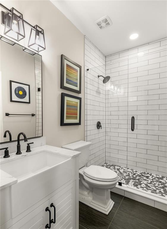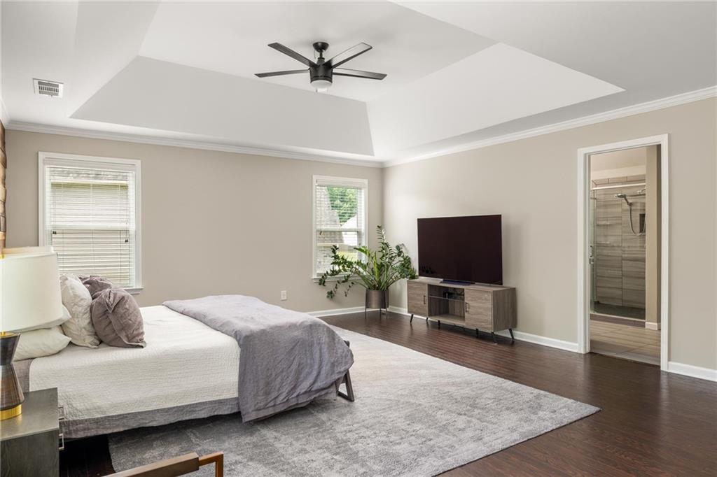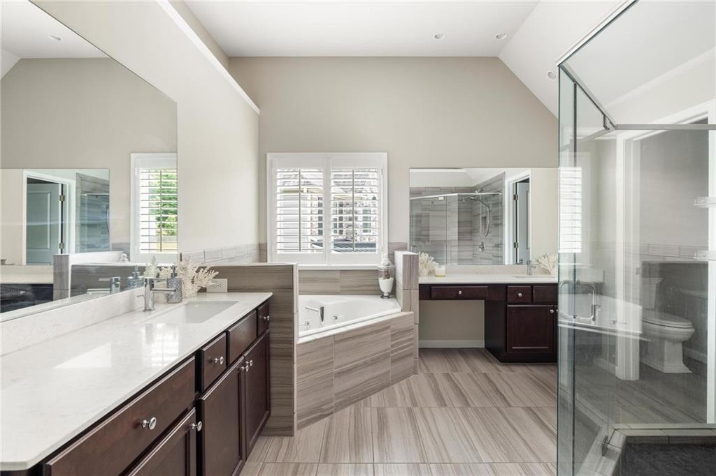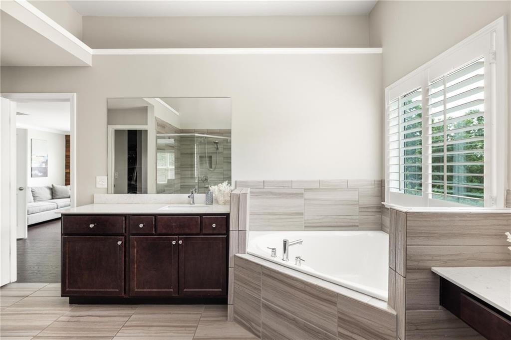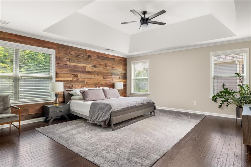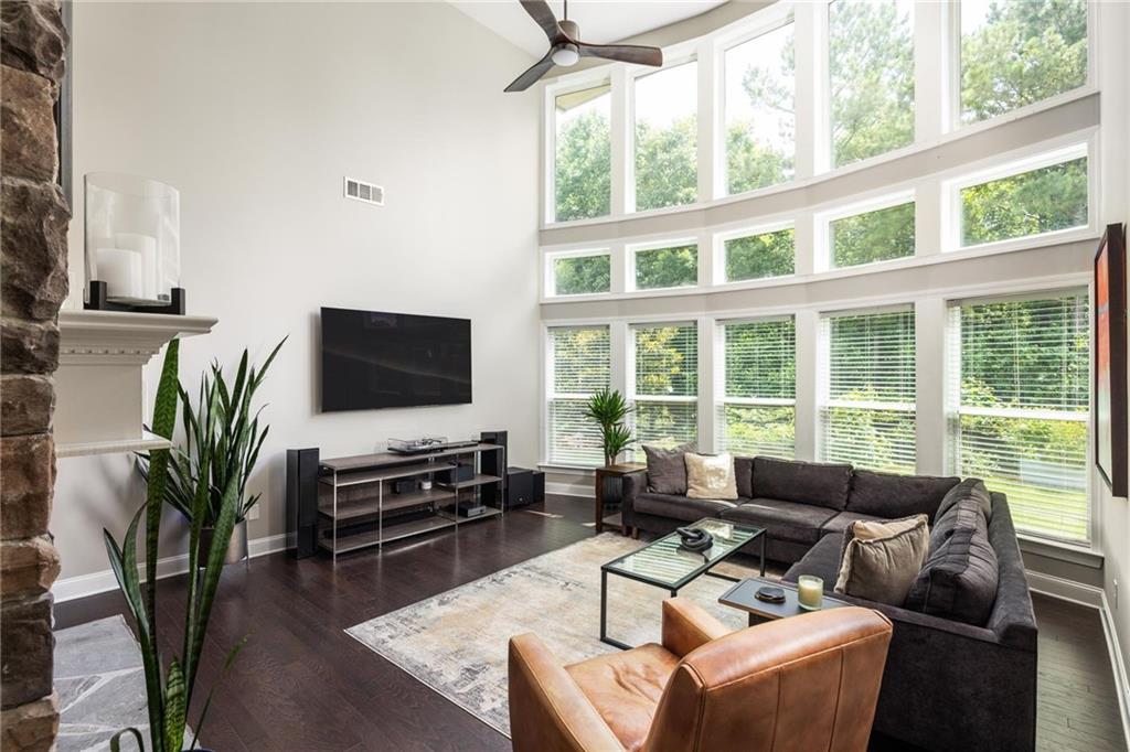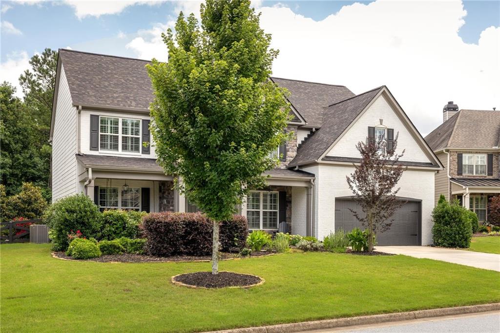 Welcome home to this better-than-new, beautifully maintained brick and stone-front retreat tucked away on a quiet, family-friendly cul-desac. With stunning curb appeal and thoughtful design throughout, this home offers the perfect blend of elegance, comfort, and everyday functionality — ideal for modern family living. Step inside to a light-filled, open-concept layout where a wall of windows brings the outdoors in, creating a bright and welcoming atmosphere. Gleaming hardwood floors run throughout the main level, upper hallway, and the serene owner’s suite, providing durability and timeless charm. A private guest bedroom on the main floor features plush carpeting and a full ensuite bath — perfect for visiting family or multi-generational living. The heart of the home is a chef-inspired kitchen boasting crisp white quartz countertops, abundant cabinetry, and high-end appliances — perfect for weeknight dinners or hosting friends for the big game. The kitchen flows effortlessly into the spacious living and dining areas, creating an ideal space for family connection and entertaining alike. Step outside and imagine the possibilities — the fenced backyard is already a great space for play, pets, or weekend relaxation, but the fence line doesn’t yet take full advantage of the generous lot size. There’s ample room to expand, creating your dream outdoor living space, garden, or play area. Location is everything, and this one has it all: just 15 minutes to Avalon in Alpharetta for upscale shopping and dining, and 10 minutes to charming downtown Woodstock — offering the perfect mix of convenience and lifestyle. This move-in-ready gem combines modern finishes, flexible spaces, and a warm, family-focused layout in a truly unbeatable location. Come see why this home checks every box — and make it yours before it’s gone!