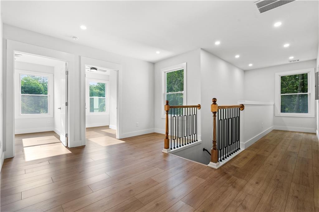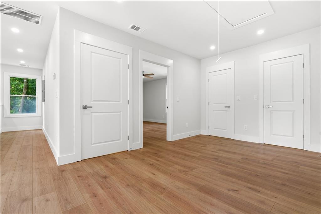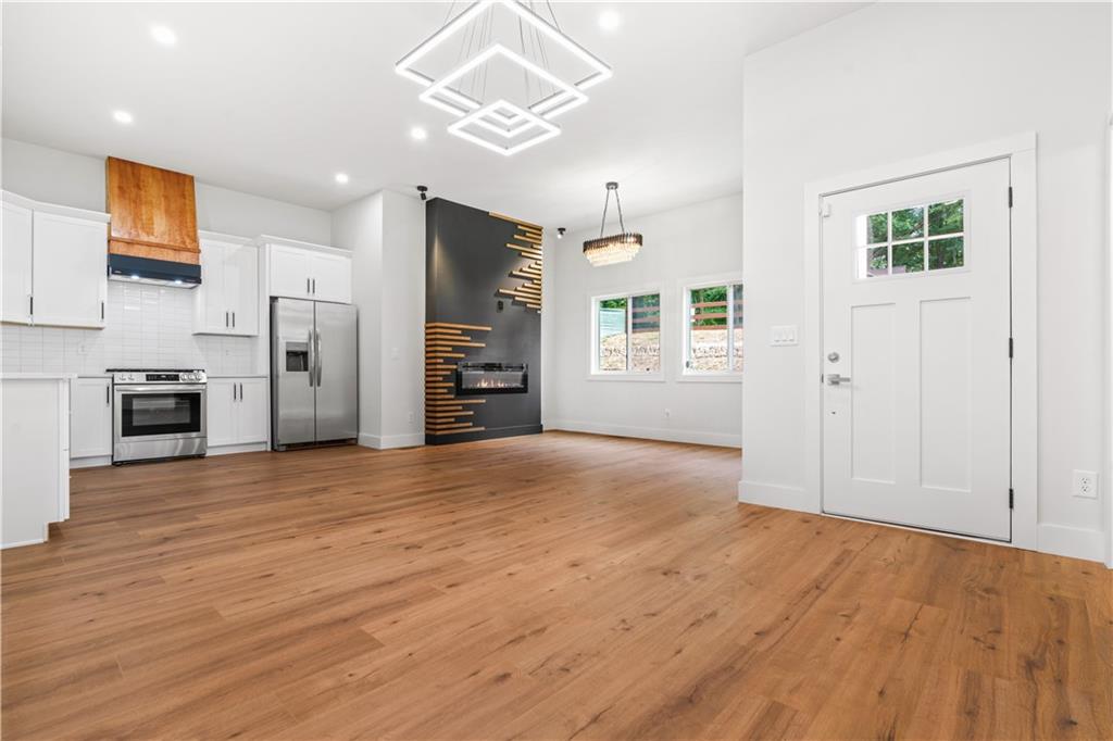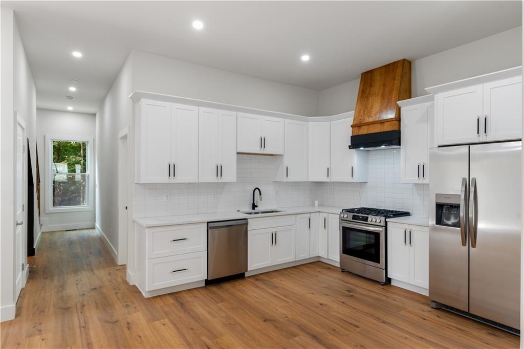 Stunning New Construction by SR Developers – Completed in 2025! Modern 6 Bed / 3 Bath home offering 2,700+ sq ft of luxury on a 0.34-acre lot. Sought-after primary suite on main with walk-in closet, barn door, and spa-like bath featuring marble tile, glass shower, and European vanity. Bright open floor plan with tall windows, custom trim, and electric fireplace. Designer kitchen includes quartz countertops, 42" custom cabinets, handcrafted hood, gas range, and walk-in pantry. Features luxury waterproof flooring, handmade stair railings, and modern lighting throughout. Exterior highlights: Hardie siding with board & batten design, new concrete driveway, front and rear porches, and back patio. ADT security system prepaid for 4 years + 1-year builder warranty. Incredible location: minutes to Downtown Atlanta, Beltline, major highways, shopping, and dining. No detail overlooked, style, quality, and location all in one!