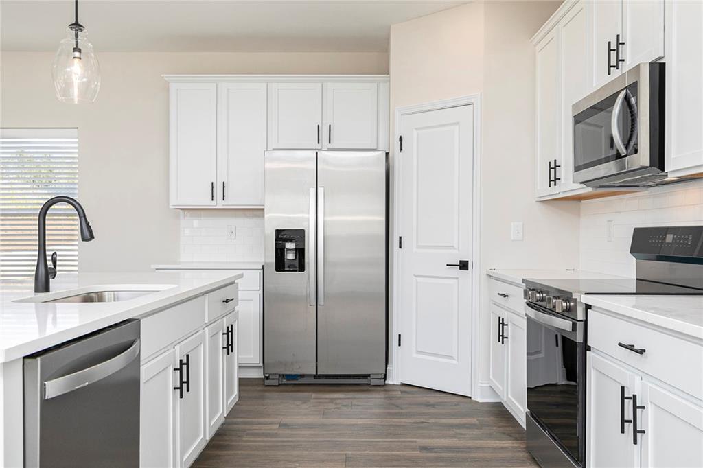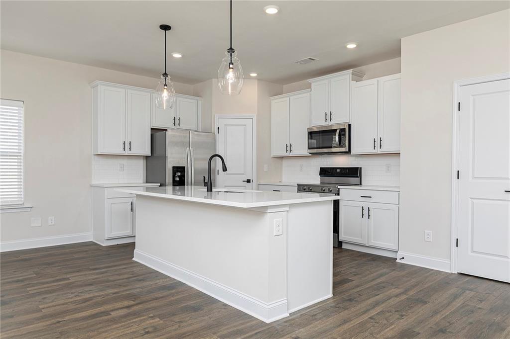 Welcome to 383 Cantrell Dr - Step into comfort and style with the thoughtfully designed Juliette plan, where everyday living meets effortless entertaining. The spacious family room flows seamlessly into a charming dining area, creating an inviting space for gathering with loved ones. At the heart of the home, the modern kitchen shines with sleek quartz countertops, a full suite of Whirlpool appliances, and plenty of room to create and connect over meals. The luxurious primary suite offers a peaceful escape, featuring a large walk-in closet, a glass-enclosed shower, and an elegant dual-sink vanity. With three additional bedrooms, a full bathroom, and a convenient upstairs laundry room, this home provides the space and functionality your lifestyle demands - all wrapped in timeless design. Outside, you'll enjoy a sodded yard and a wooded backyard that offers privacy and a serene natural backdrop. Located on one of the higher elevations in the community, this home also provides an added sense of openness and scenic views. Color schemes vary by floorplan and elevation.