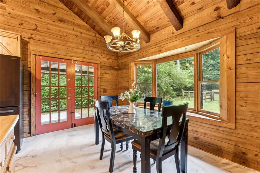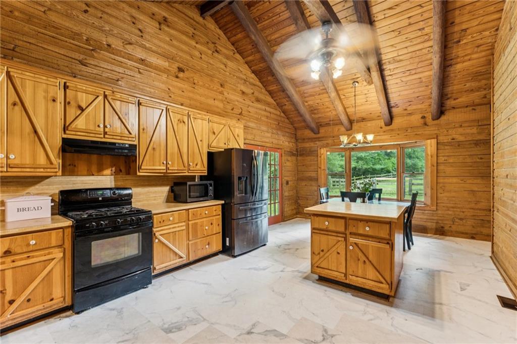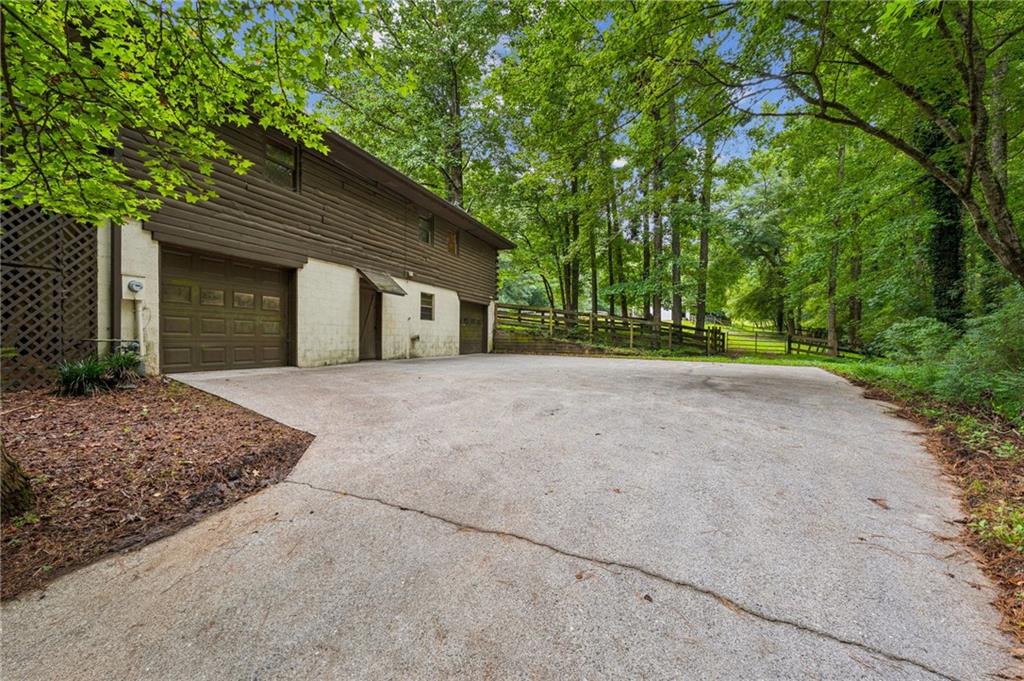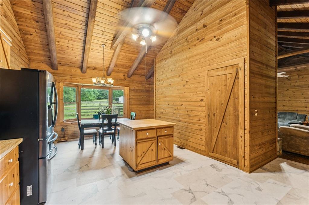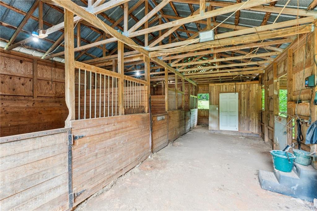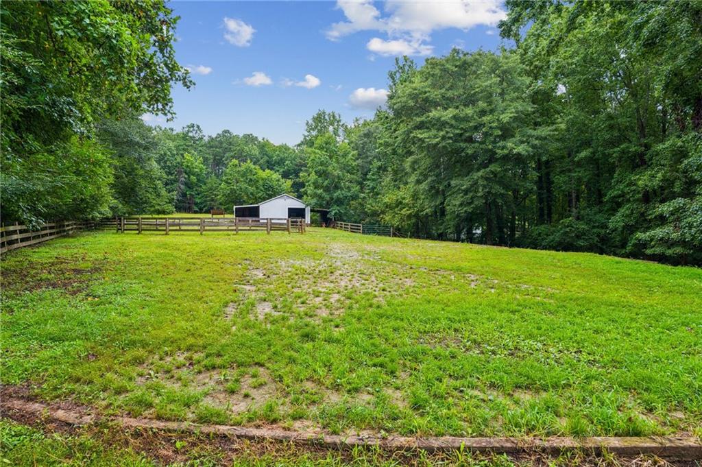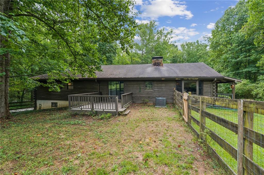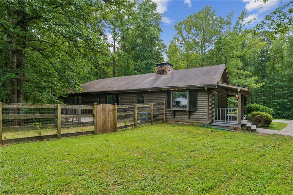 Located in the Macedonia area of Cherokee County, between GA 20 and East Cherokee Drive, 769 Cotton Road is the small horse farm of your dreams! Situated on an elevated 3-acre lot, the 2,230 sq. ft. traditional ranch-style log cabin has three bedrooms and two full bathrooms, one with an 1912 claw-foot tub. The kitchen is spacious with custom-built cabinetry, a kitchen island and room for a dining table, and the generous, cosy lounge area with stone fireplace has a view to the pastures. A partial wrap-around porch adds to the rustic charm of the cabin. The entire roof replaced in 2013 and a new HVAC installed in 2018. The 2-car garage under the house has ample storage space, with a full unfinished basement offering great potential for expanding the living space, creating a workshop or customizing to suit your specific needs. The fenced, pet-friendly garden area with deck overlooking the pastures, lies behind the house with access from the lounge. The horseshoe-style driveway ensures efficient traffic flow, increased convenience and safety for cars and trailers, additional parking space and easy access to the pastures. Large flowering bushes enhance the front of the property. The barn (2,300 sq.ft) is nestled in secluded, private pastures behind the cabin, with central aisle, three 12’ x 11’ stables and a tack/feed room, and equipped with electricity and water. On one side of the barn is a run-in shelter from the back pasture and an additional covered area, and on the other side is covered storage for farm equipment with access to the pastures. There is also a single round-bale cover. The 3 acres include sub-divided pastures for other animals, a fenced round/lunging pen and a sand riding arena. Fencing is a mix of three-board and block fencing. Within the pastures that run from creek to creek on either side, are a variety of hardwood and pine trees with trail paths cut through the wooded areas. Dawn to dusk lighting is installed at the barn as well as at the front of the log cabin. Just imagine, no more paying for horse boarding when you can bring your horses home to live with you. Or create your own boutique boarding/training facility. The barn could be used as a hobby farm or be refurbished as a party barn. A great variety of shops and restaurants are nearby in Canton and the Hickory Flat area. GA-20 gives easy access to Cumming and Canton and I-575 to Atlanta and the North Georgia mountains. There are riding trails at Birmingham Park, Garland Mountain, and Dawson Forest, with plentiful resources nearby for all your equestrian needs. Don’t miss this rare opportunity to buy in this location and in this price bracket! This classic log cabin property is your chance to purchase a slice of heaven with extraordinary potential to make your dream home for you and your animals. Round up the kids and their ponies or bring your trail horses or warmbloods to this cosy, private setting.