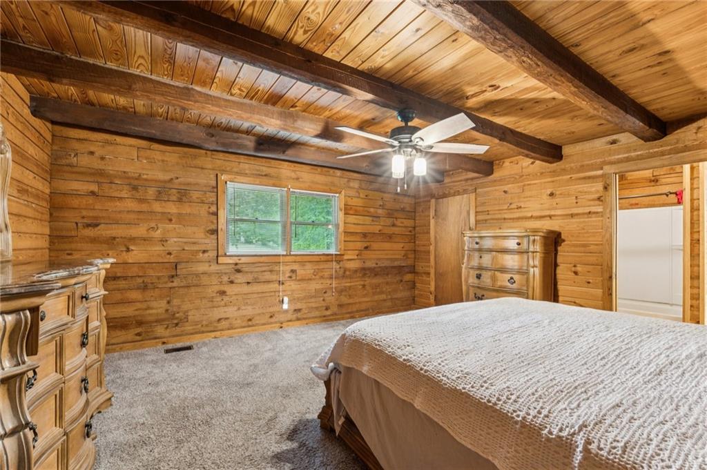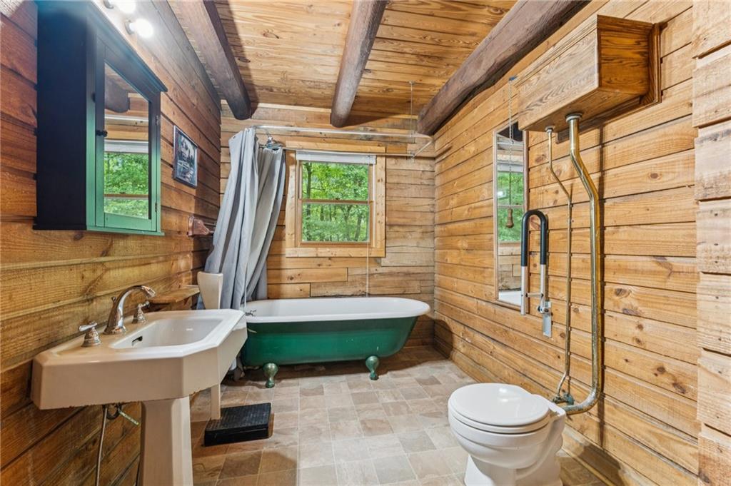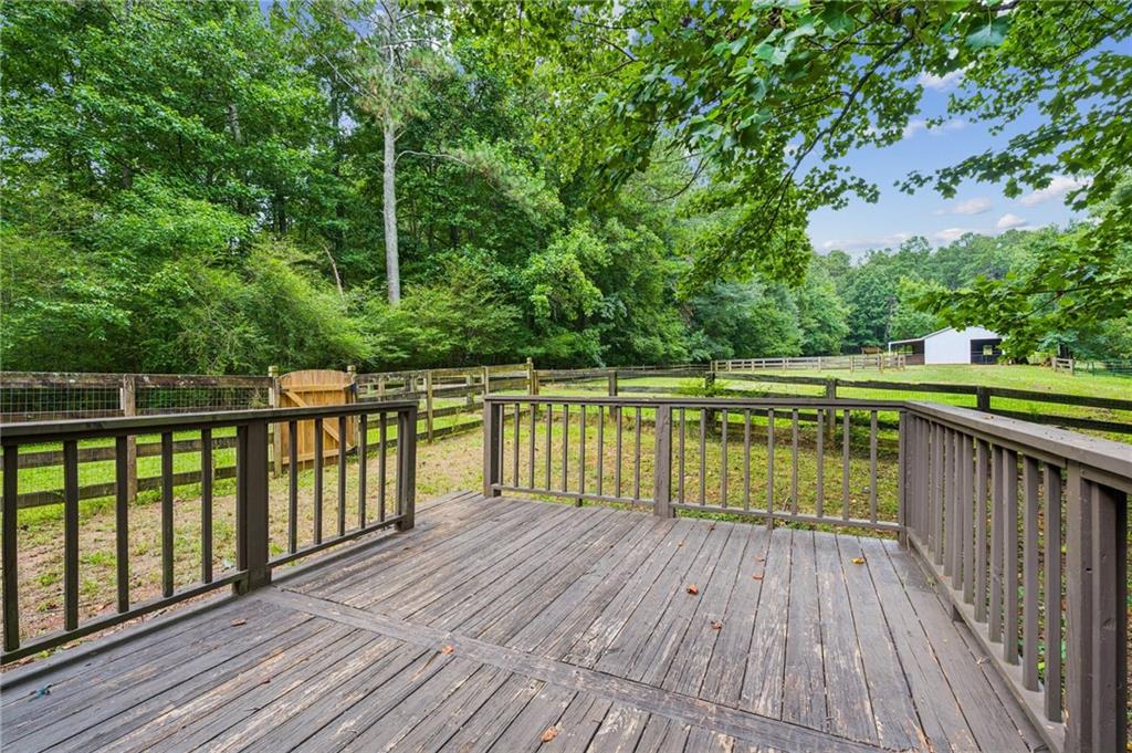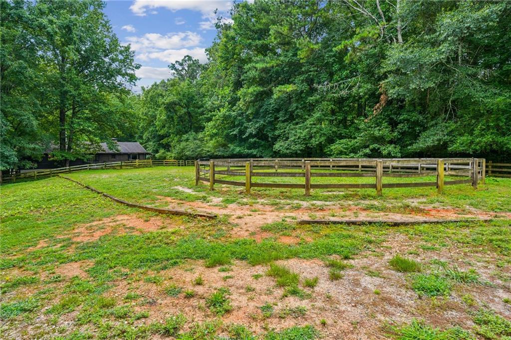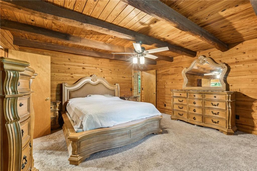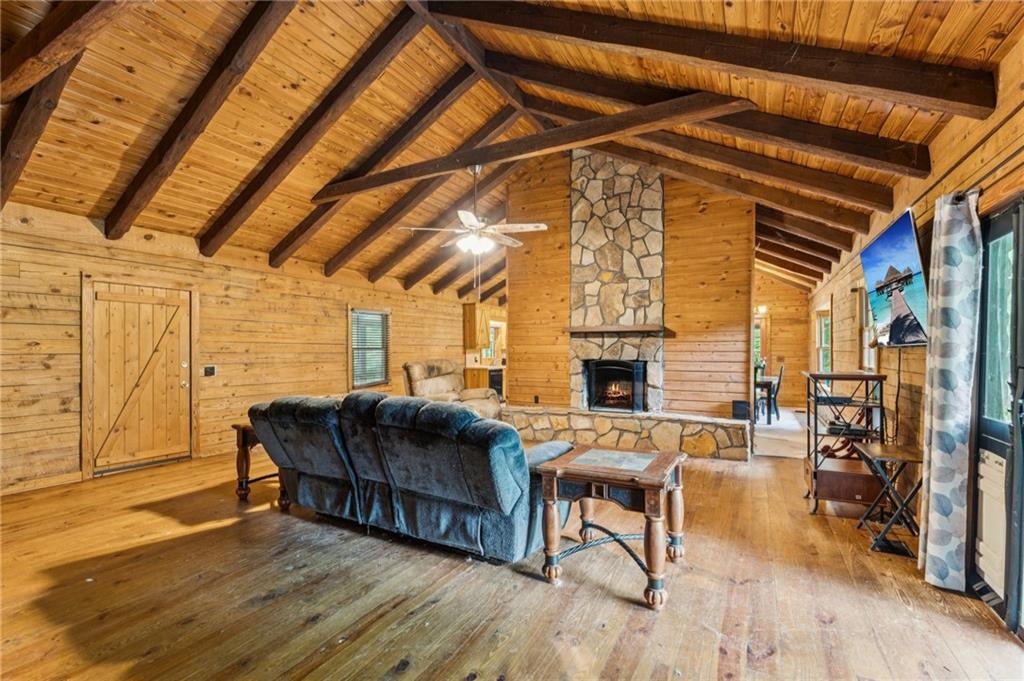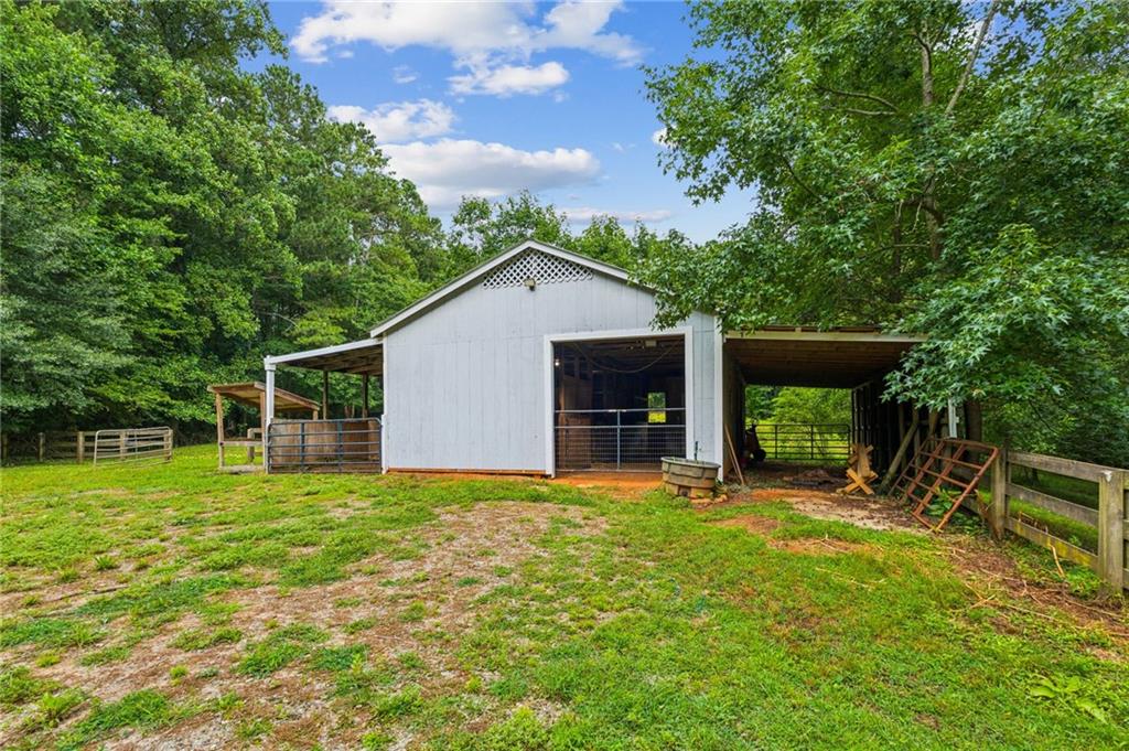 Located in the Macedonia area of Cherokee County, between GA 20 and East Cherokee Drive, 769 Cotton Road is the small horse farm of your dreams! Situated on an elevated 3-acre lot, the 2,230 sq. ft. traditional ranch-style log cabin has three bedrooms and two full bathrooms, one with an 1912 claw-foot tub. The kitchen is spacious with custom-built cabinetry, a kitchen island and room for a dining table, and the generous, cosy lounge area with stone fireplace has a view to the pastures. A partial wrap-around porch adds to the rustic charm of the cabin. The entire roof replaced in 2013 and a new HVAC installed in 2018. The 2-car garage under the house has ample storage space, with a full unfinished basement offering great potential for expanding the living space, creating a workshop or customizing to suit your specific needs. The fenced, pet-friendly garden area with deck overlooking the pastures, lies behind the house with access from the lounge. The horseshoe-style driveway ensures efficient traffic flow, increased convenience and safety for cars and trailers, additional parking space and easy access to the pastures. Large flowering bushes enhance the front of the property. The barn (2,300 sq.ft) is nestled in secluded, private pastures behind the cabin, with central aisle, three 12’ x 11’ stables and a tack/feed room, and equipped with electricity and water. On one side of the barn is a run-in shelter from the back pasture and an additional covered area, and on the other side is covered storage for farm equipment with access to the pastures. There is also a single round-bale cover. The 3 acres include sub-divided pastures for other animals, a fenced round/lunging pen and a sand riding arena. Fencing is a mix of three-board and block fencing. Within the pastures that run from creek to creek on either side, are a variety of hardwood and pine trees with trail paths cut through the wooded areas. Dawn to dusk lighting is installed at the barn as well as at the front of the log cabin. Just imagine, no more paying for horse boarding when you can bring your horses home to live with you. Or create your own boutique boarding/training facility. The barn could be used as a hobby farm or be refurbished as a party barn. A great variety of shops and restaurants are nearby in Canton and the Hickory Flat area. GA-20 gives easy access to Cumming and Canton and I-575 to Atlanta and the North Georgia mountains. There are riding trails at Birmingham Park, Garland Mountain, and Dawson Forest, with plentiful resources nearby for all your equestrian needs. Don’t miss this rare opportunity to buy in this location and in this price bracket! This classic log cabin property is your chance to purchase a slice of heaven with extraordinary potential to make your dream home for you and your animals. Round up the kids and their ponies or bring your trail horses or warmbloods to this cosy, private setting.