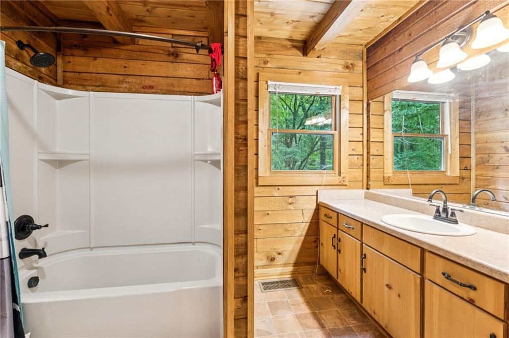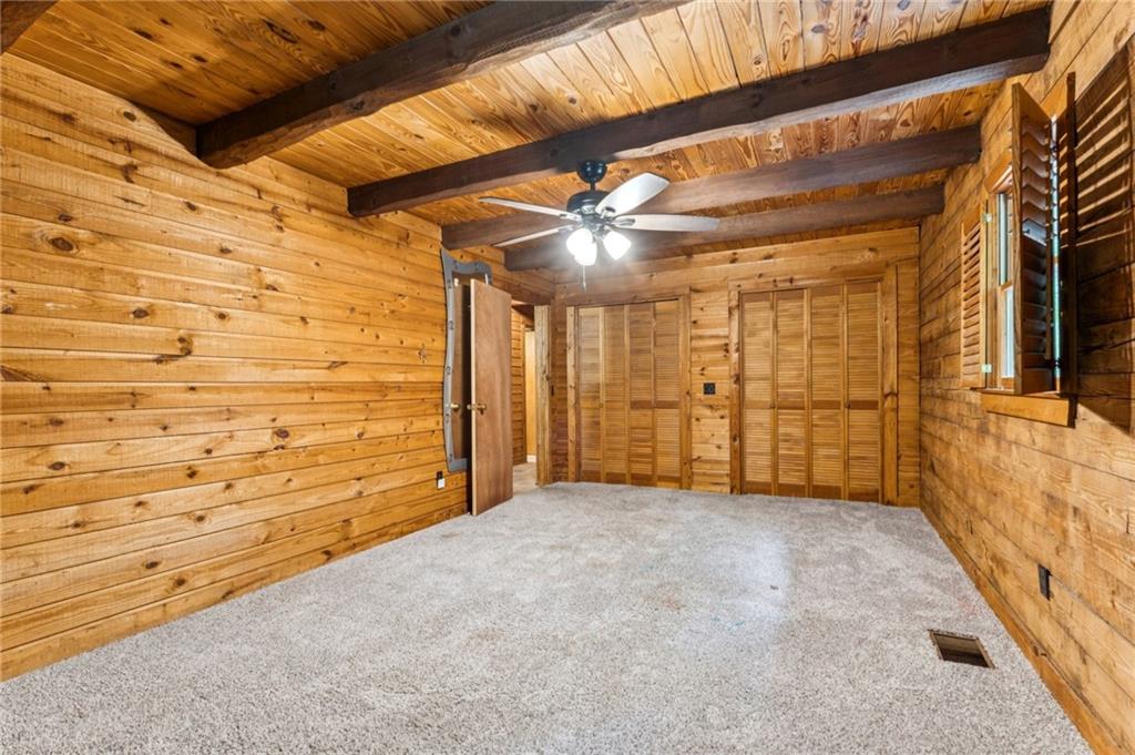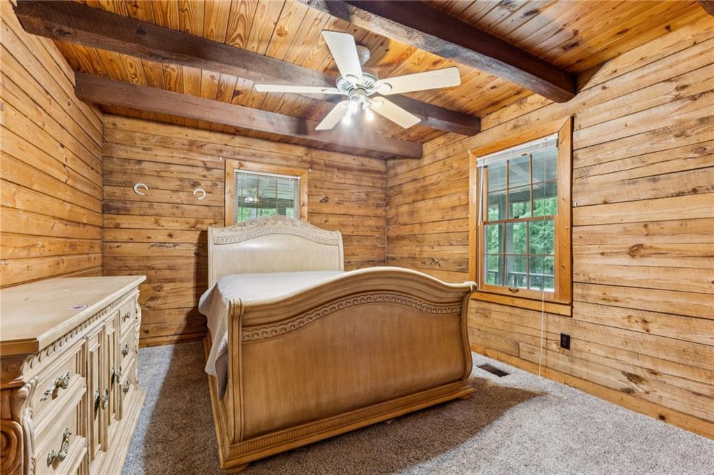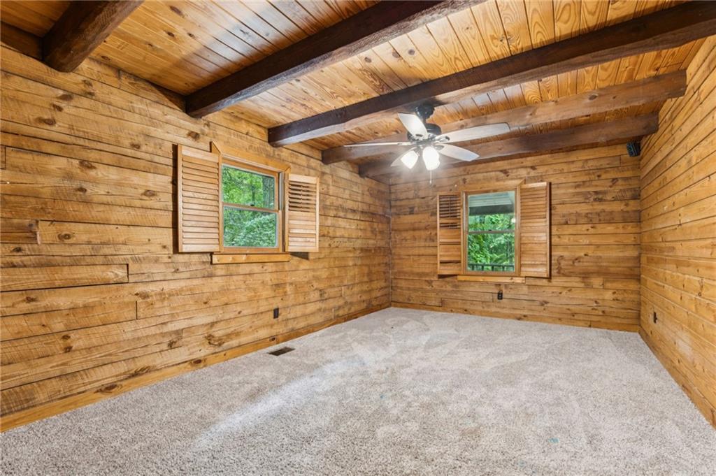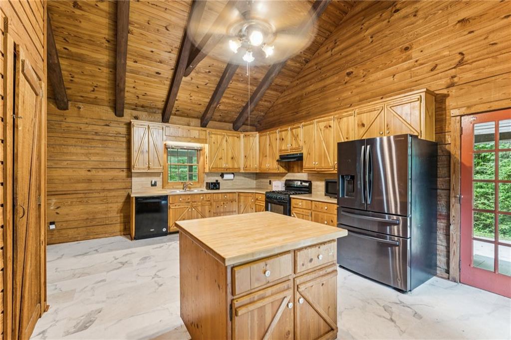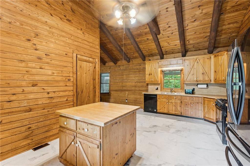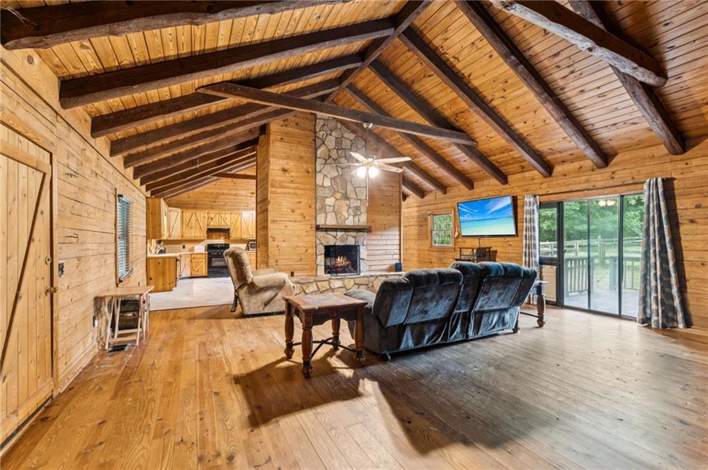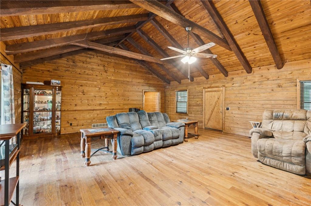 Located in the Macedonia area of Cherokee County, between GA 20 and East Cherokee Drive, 769 Cotton Road is the small horse farm of your dreams! Situated on an elevated 3-acre lot, the 2,230 sq. ft. traditional ranch-style log cabin has three bedrooms and two full bathrooms, one with an 1912 claw-foot tub. The kitchen is spacious with custom-built cabinetry, a kitchen island and room for a dining table, and the generous, cosy lounge area with stone fireplace has a view to the pastures. A partial wrap-around porch adds to the rustic charm of the cabin. The entire roof replaced in 2013 and a new HVAC installed in 2018. The 2-car garage under the house has ample storage space, with a full unfinished basement offering great potential for expanding the living space, creating a workshop or customizing to suit your specific needs. The fenced, pet-friendly garden area with deck overlooking the pastures, lies behind the house with access from the lounge. The horseshoe-style driveway ensures efficient traffic flow, increased convenience and safety for cars and trailers, additional parking space and easy access to the pastures. Large flowering bushes enhance the front of the property. The barn (2,300 sq.ft) is nestled in secluded, private pastures behind the cabin, with central aisle, three 12’ x 11’ stables and a tack/feed room, and equipped with electricity and water. On one side of the barn is a run-in shelter from the back pasture and an additional covered area, and on the other side is covered storage for farm equipment with access to the pastures. There is also a single round-bale cover. The 3 acres include sub-divided pastures for other animals, a fenced round/lunging pen and a sand riding arena. Fencing is a mix of three-board and block fencing. Within the pastures that run from creek to creek on either side, are a variety of hardwood and pine trees with trail paths cut through the wooded areas. Dawn to dusk lighting is installed at the barn as well as at the front of the log cabin. Just imagine, no more paying for horse boarding when you can bring your horses home to live with you. Or create your own boutique boarding/training facility. The barn could be used as a hobby farm or be refurbished as a party barn. A great variety of shops and restaurants are nearby in Canton and the Hickory Flat area. GA-20 gives easy access to Cumming and Canton and I-575 to Atlanta and the North Georgia mountains. There are riding trails at Birmingham Park, Garland Mountain, and Dawson Forest, with plentiful resources nearby for all your equestrian needs. Don’t miss this rare opportunity to buy in this location and in this price bracket! This classic log cabin property is your chance to purchase a slice of heaven with extraordinary potential to make your dream home for you and your animals. Round up the kids and their ponies or bring your trail horses or warmbloods to this cosy, private setting.