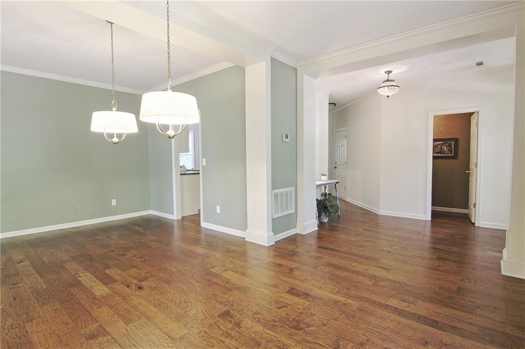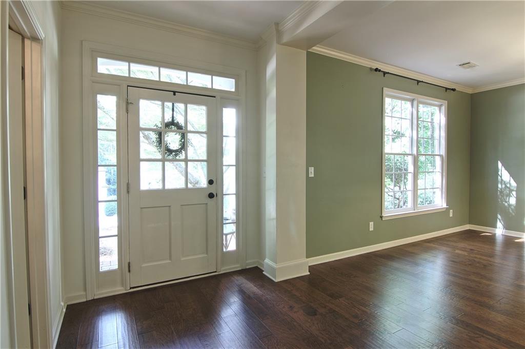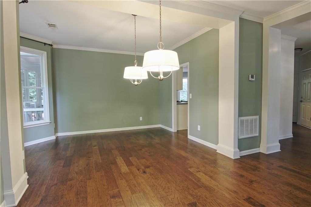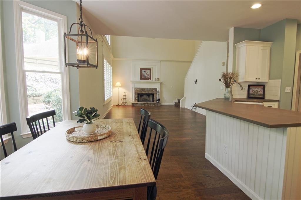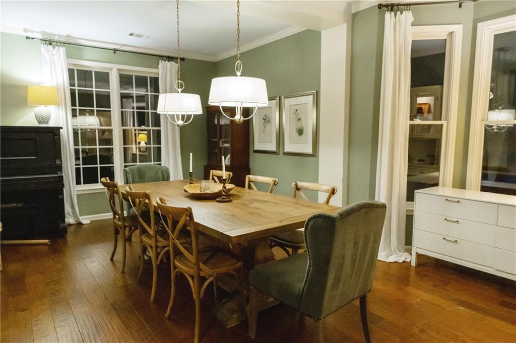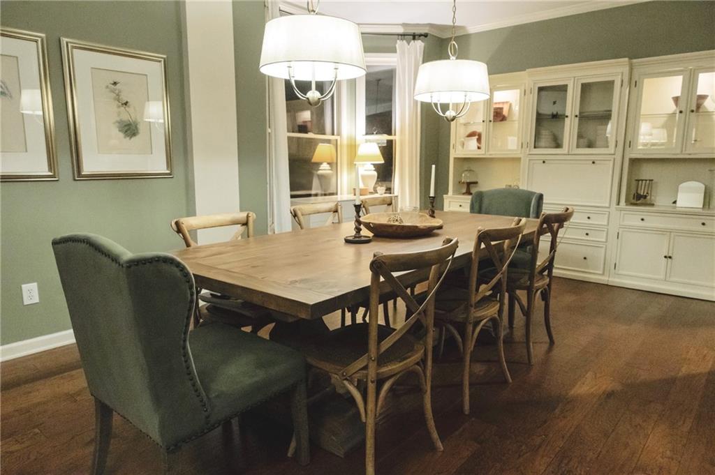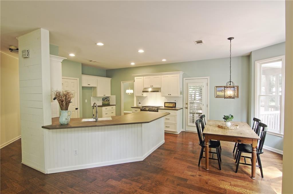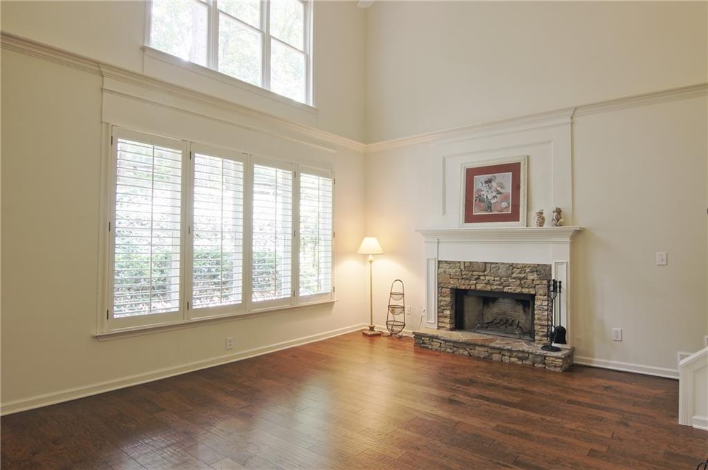 Updated & Move-In Ready Craftsman Style Home in the highly sought after Fox Creek Subdivision. Highly rated Forsyth County Schools Midway Elementary, Vickery Creek Middle School, and West Forsyth High School! Charming 4 Bedroom / 2.5 Bath Home. Welcoming entry with lots of natural light. The formal living room and dining room (these areas were used together to create a larger formal dining area). The kitchen has white cabinets, high-end stainless-steel gas range, vent hood, extended counter level counter tops, and a breakfast area with bay window. The kitchen is open to the 2-story family room with a wall of windows, plantation shutters, and a stacked stone wood burning fireplace with a gas starter. This home features beautiful hardwood floors throughout the entire main, upstairs hall, and large bonus/bedroom. The oversized owner’s suite has built-in bookshelves, trey ceiling, large soaking tub, separate shower, double vanity, and a walk-in closet. There are 3 additional roomy bedrooms and a full bathroom recently remodeled. All carpet is new in bedroom areas. Enjoy the outdoors in the screened in back porch and brick patio area with built-in fire pit. Large wooded and fenced area in the back provides extra privacy and a great play area. The home has a 2 car side entry garage with door openers and built-in cabinetry. Fox creek has some great amenities. A large pool, tennis courts, basketball court, and a kids playground. Just minutes away from shopping, county parks, Vickery Shopping Village, Halcyon, Restaurants, YMCA, & More.