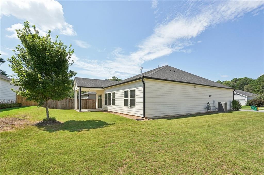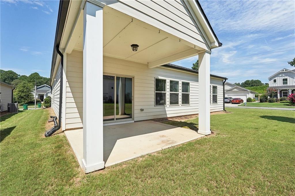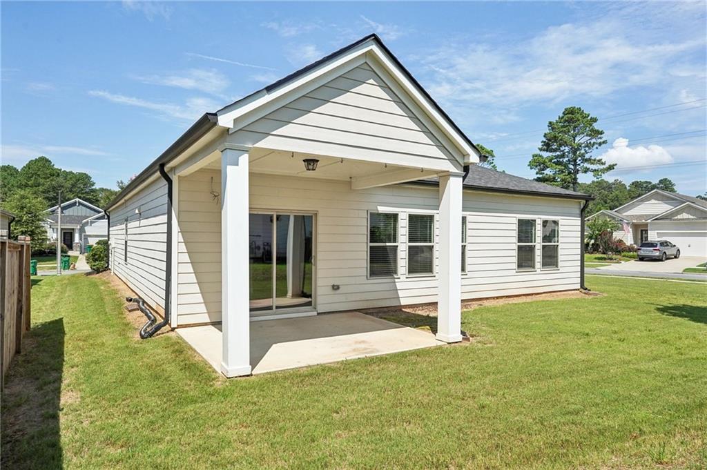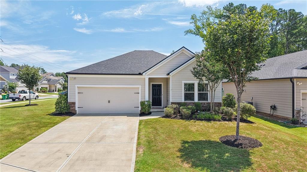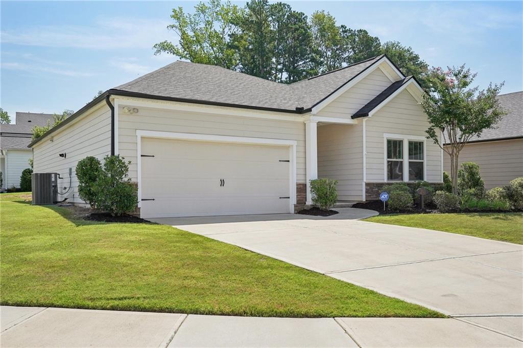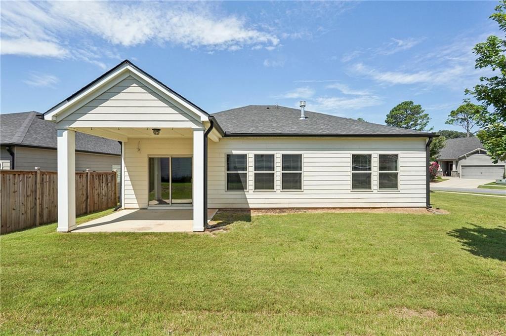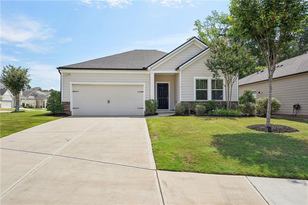 Picture perfect ranch home in the heart of Woodstock featuring 3 bedrooms and 2.5 baths. Like new, open-concept, and split-bedroom floor plan. The kitchen features beautiful black granite, luxury vinyl floors, large pantry, kitchen island with view to the main living area, and stainless steel appliances. Enjoy natural light throughout, a spacious master suite with double vanity, walk-in closet, and a covered back patio perfect for relaxing. Located on a desirable corner lot. Minutes from downtown Woodstock and easy access to main highways.