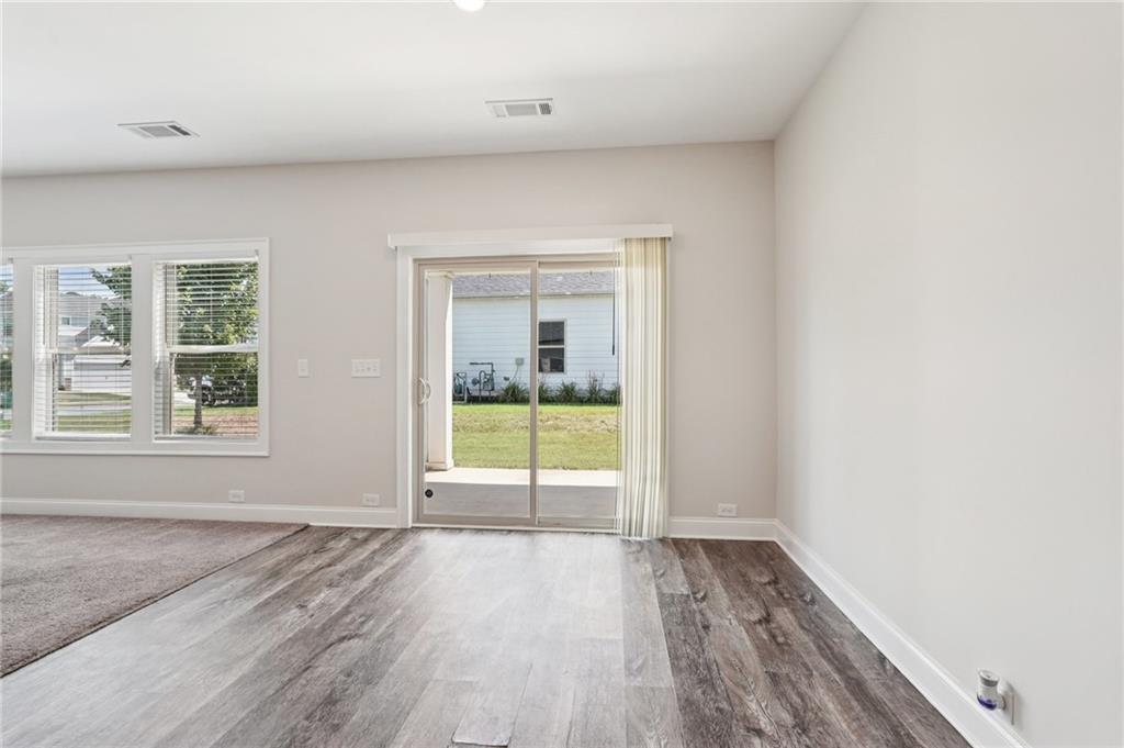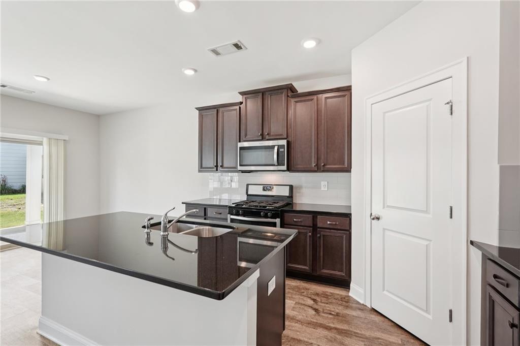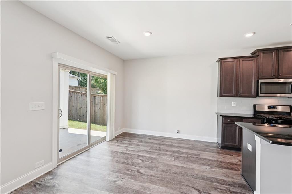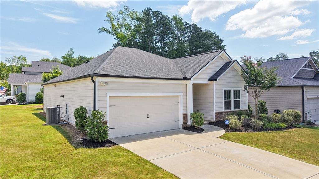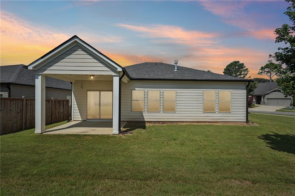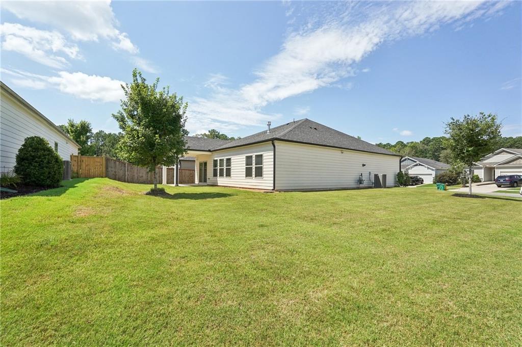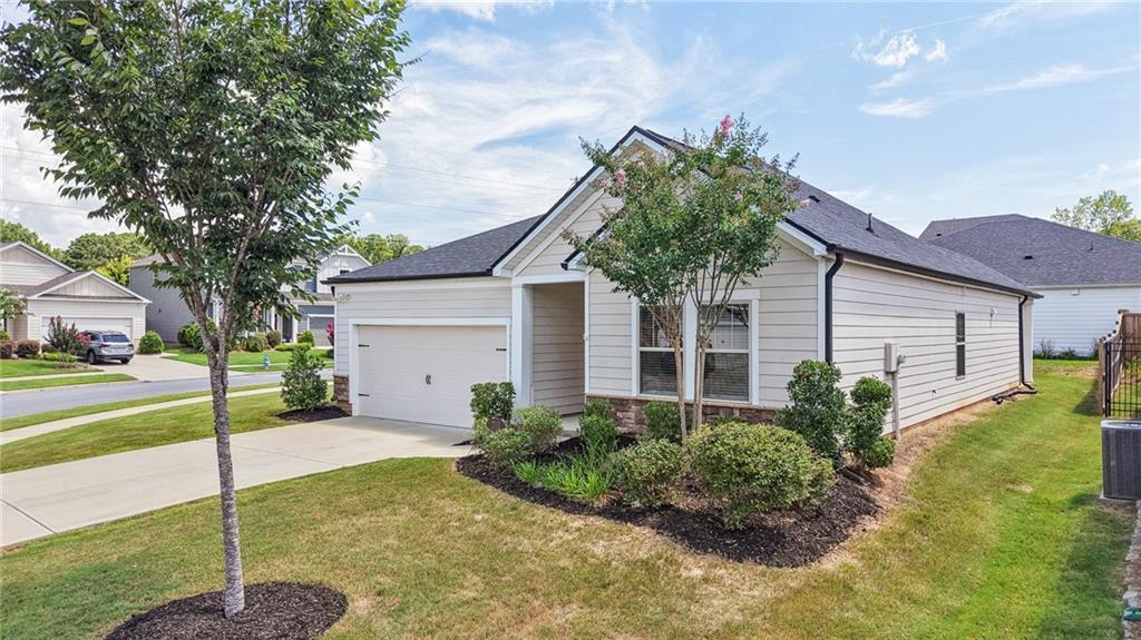Picture perfect ranch home in the heart of Woodstock featuring 3 bedrooms and 2.5 baths. Like new, open-concept, and split-bedroom floor plan. The kitchen features beautiful black granite, luxury vinyl floors, large pantry, kitchen island with view to the main living area, and stainless steel appliances. Enjoy natural light throughout, a spacious master suite with double vanity, walk-in closet, and a covered back patio perfect for relaxing. Located on a desirable corner lot. Minutes from downtown Woodstock and easy access to main highways.