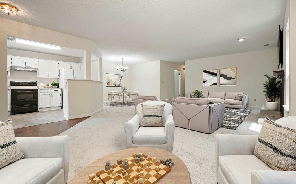 Welcome to a home in a remarkable location! Walking distance to restaurants, grocery and retail! Hidden Lake is a private condo community with swim, trails and a lake to enjoy! This ground level condo features 2 large bedrooms and 2 full bathrooms. An open concept plan for easy entertaining. Fresh paint and carpet, allows you to move right in! To get a property in this part of Roswell for under $300k is unheard of! Come see this home today!