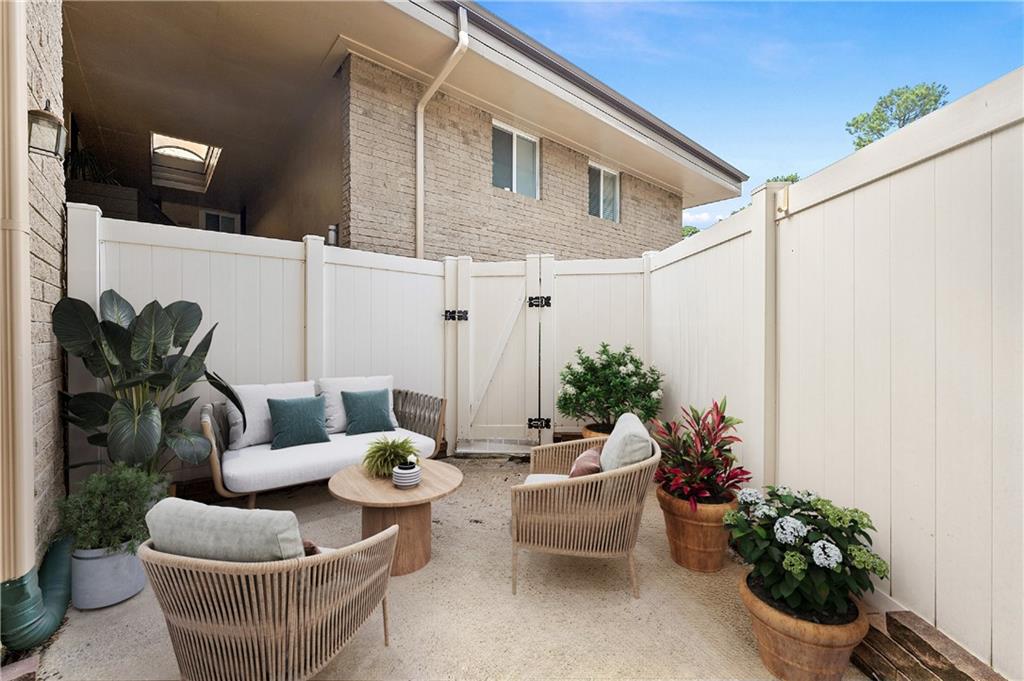 Architecturally significant and full of character, this rare Laurel Grove condo was designed by renowned architect Robert M. Green—one of Frank Lloyd Wright’s final apprentices. Nestled in the heart of Sandy Springs and just one mile from the Sandy Springs Performing Arts Center, this boutique community offers quick access to I-285, top-tier restaurants, shopping, and more. This two-story home features a spacious main level ideal for relaxing or entertaining, while the upper level offers two comfortable bedrooms and a full bath. Carpet was replaced within the past two years, and walls were painted in the past year. Abundant natural light floods the home through large skylights, creating a warm and inviting atmosphere. The main skylight was replaced in March, 2025. Step outside to your private patio—a perfect spot for morning coffee, evening wind-downs, or container gardening. One of only 16 units that includes a covered parking space, you’ll also enjoy the convenience of direct access from your car to your front door. Tucked away in a quiet and intimate community, Laurel Grove is the perfect retreat from the hustle of Atlanta life. Don’t miss the serene community pool—your go-to place to cool off during the summer heat. This two-story garden home is ready to welcome its next owner—someone who will love it just as much as the last.